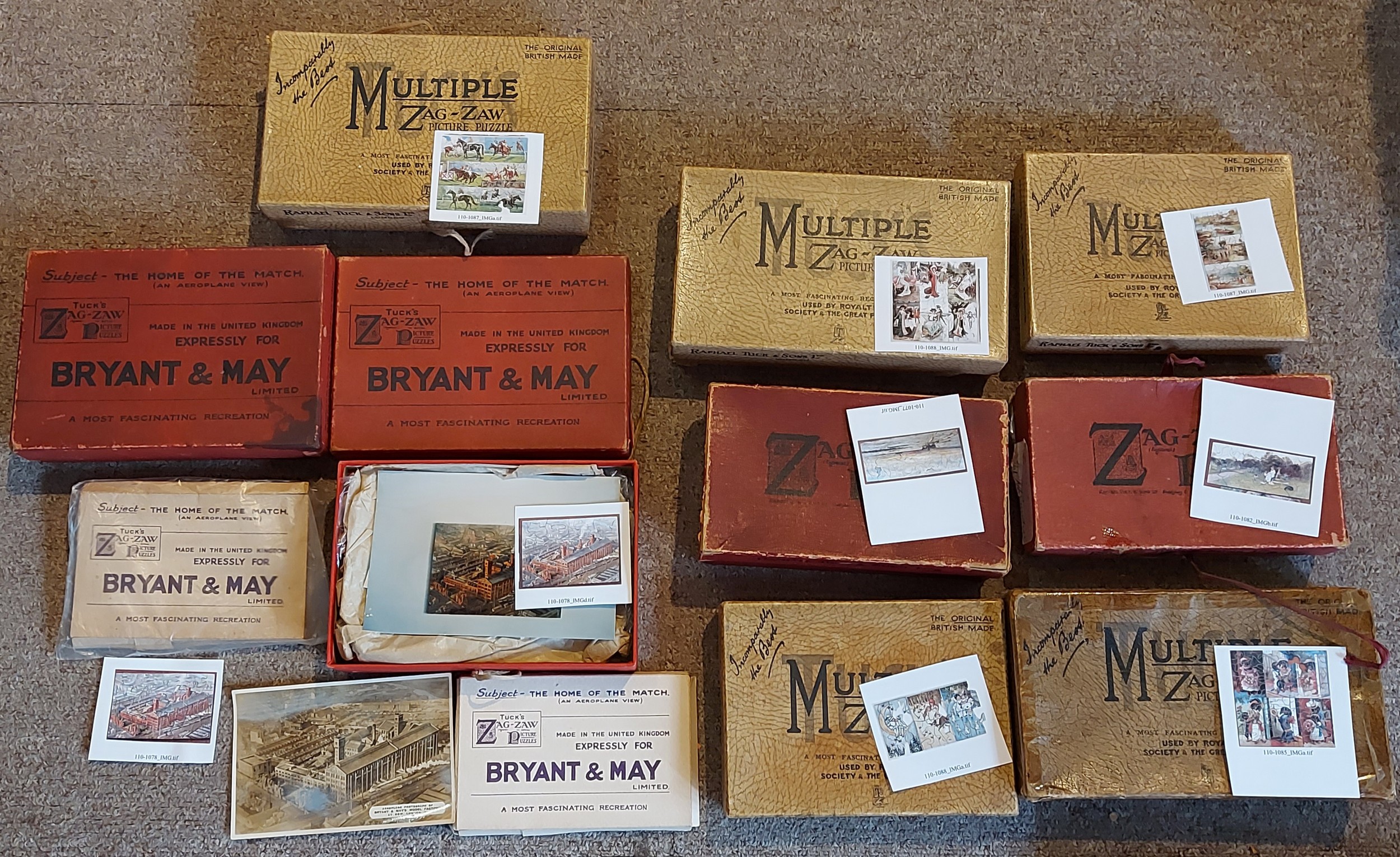 A Raphael Tuck and Sons Zag-Zaw Jigsaw puzzle For Bryant & May together with another and seven other Zag-Zaw puzzles