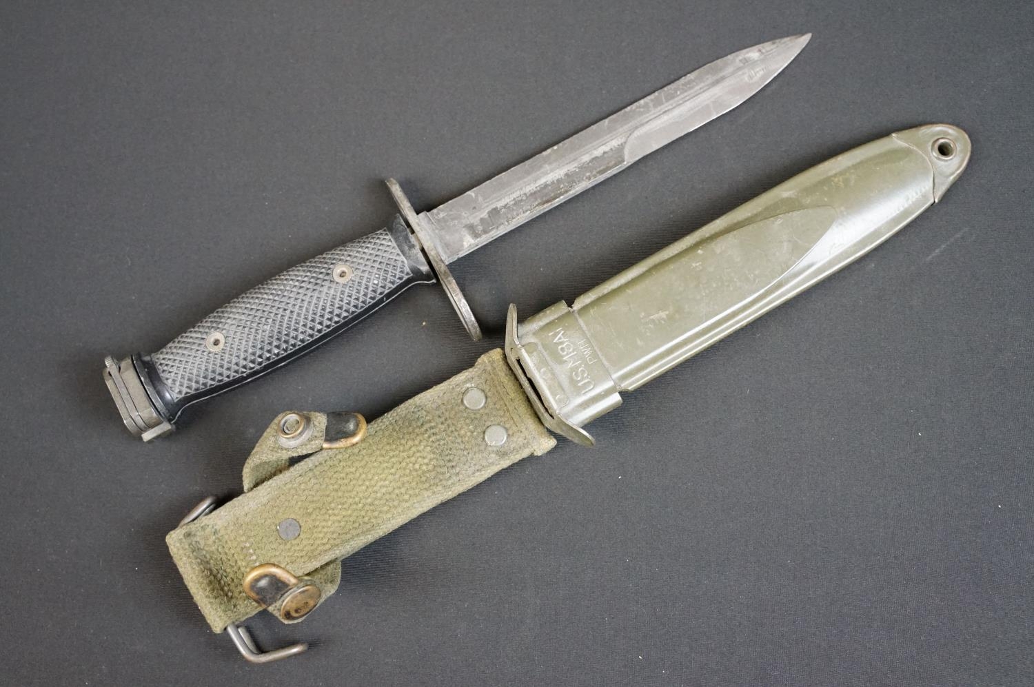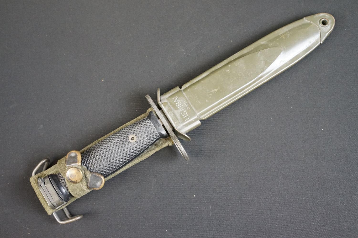 A United States M7 bayonet together with M8A1 scabbard.