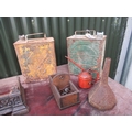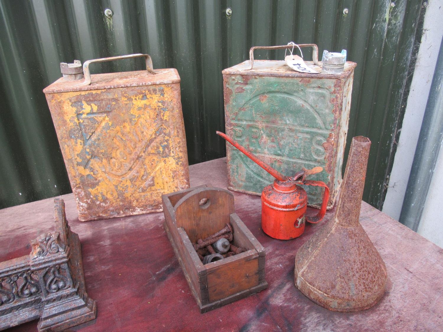 Vintage Pratts Petrol can H:32cm, and vintage Redline petrol can, H:32cm, plus oil can, funnel etc.