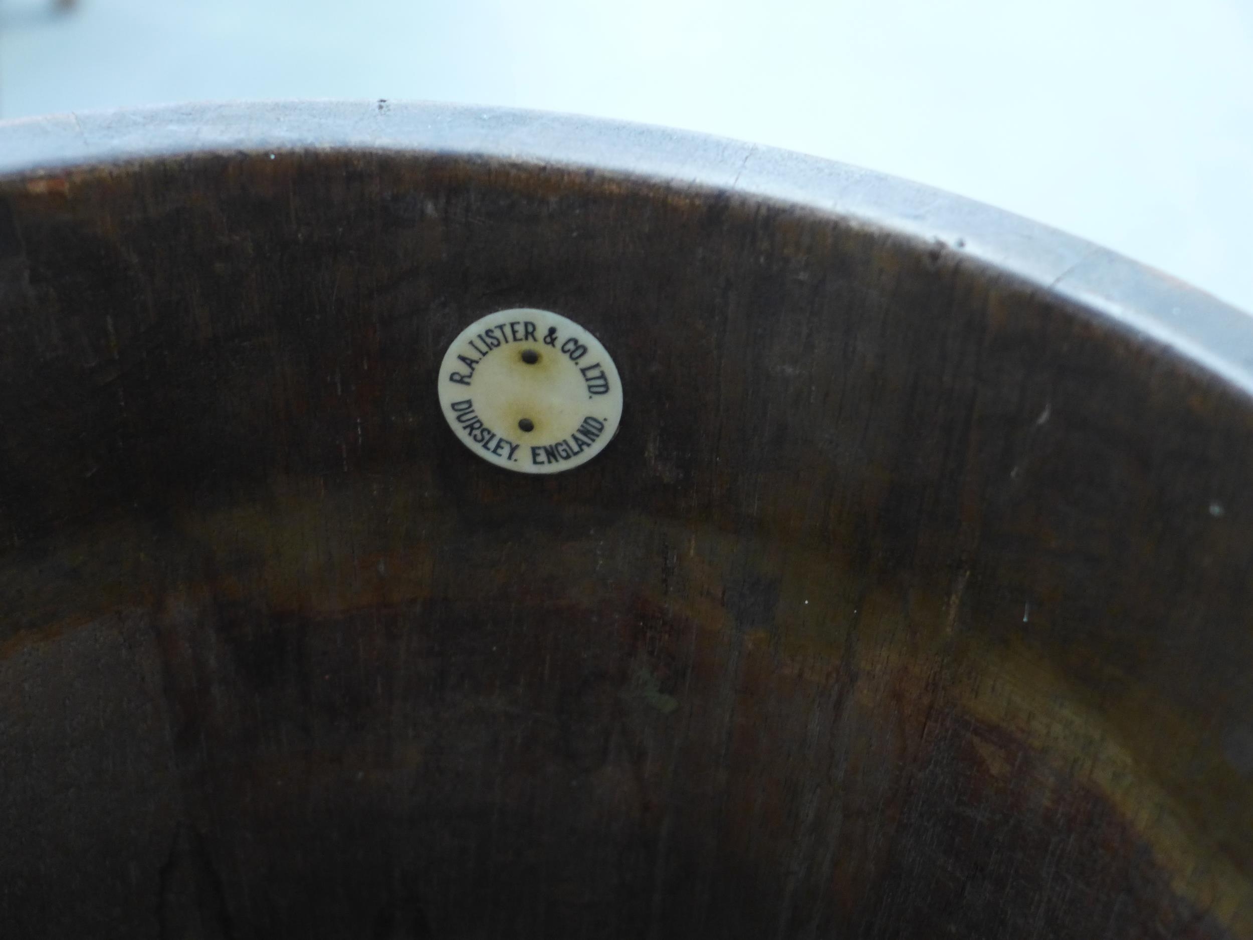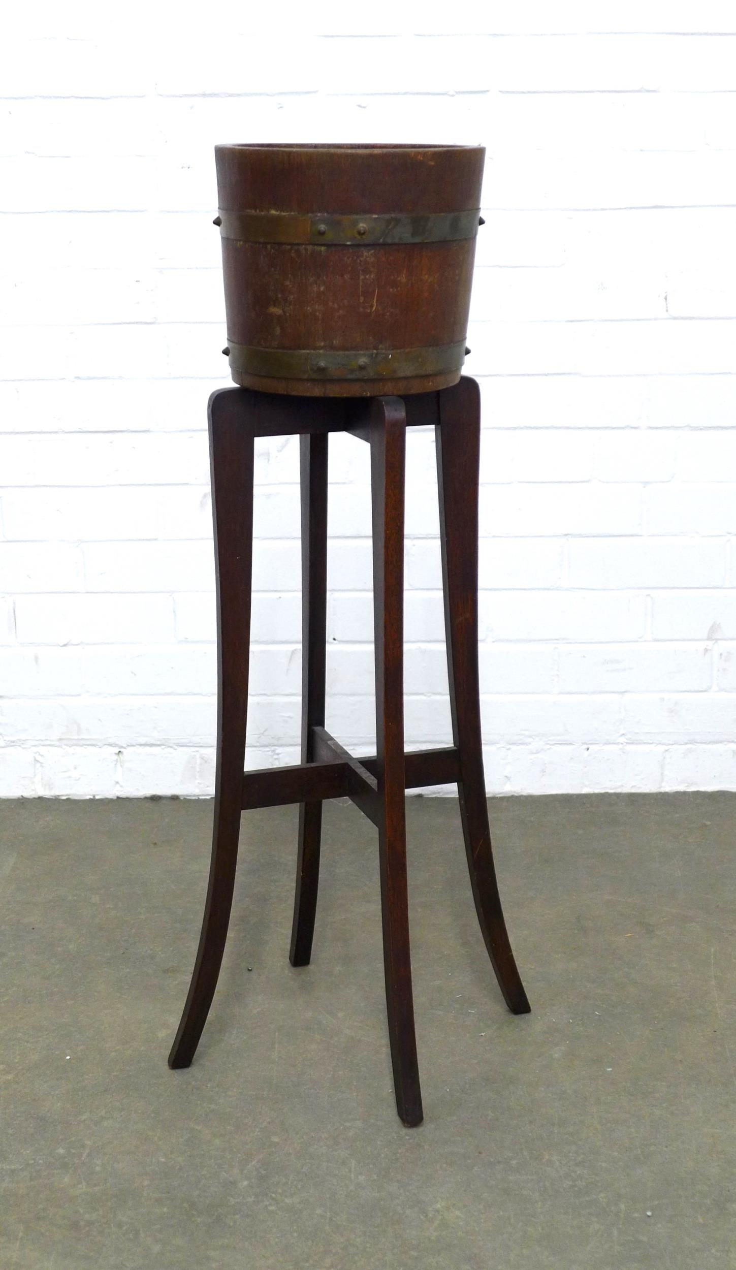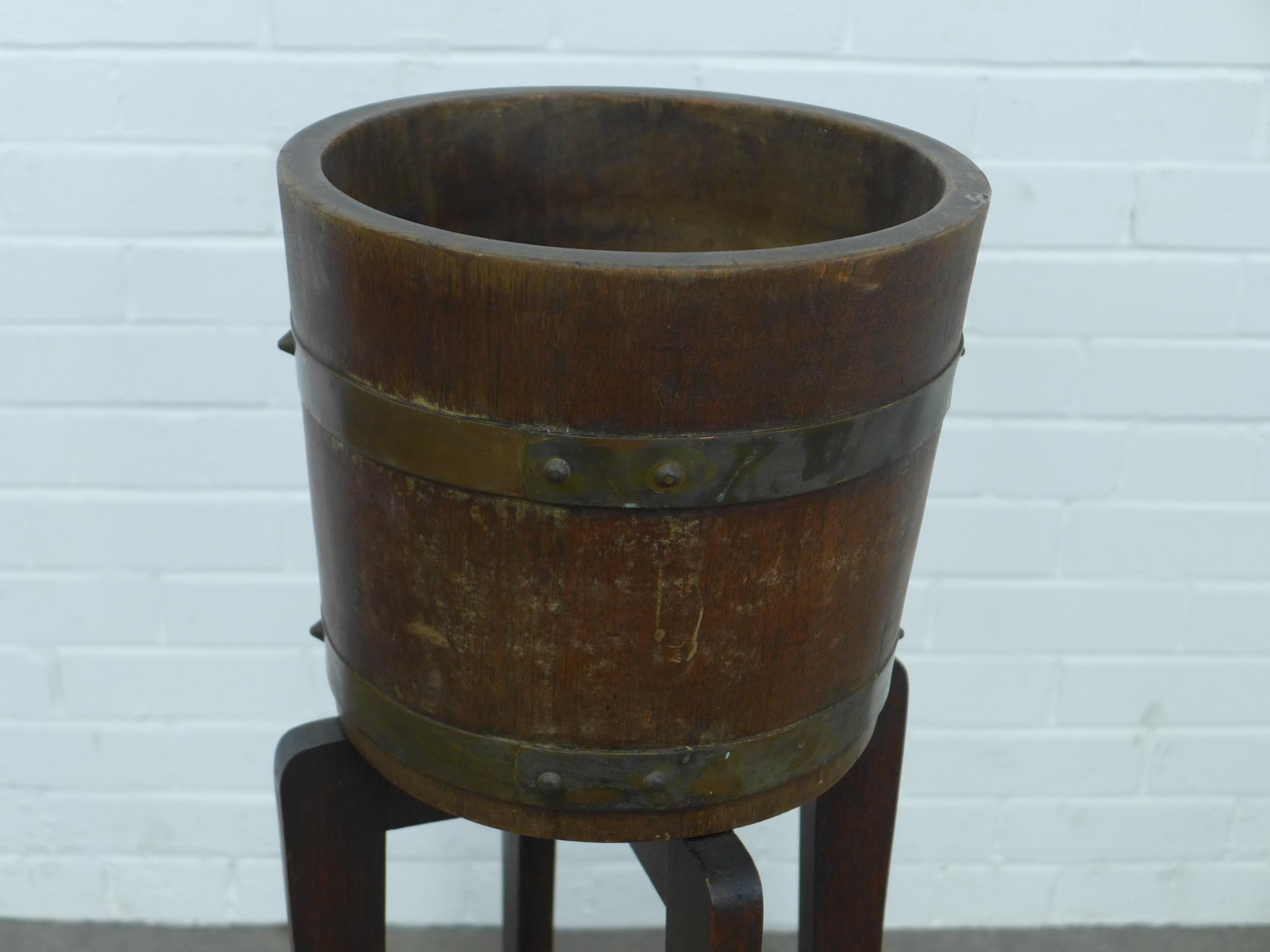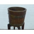 Oak barrel on stand, labelled Lister, 26 x 44cm.