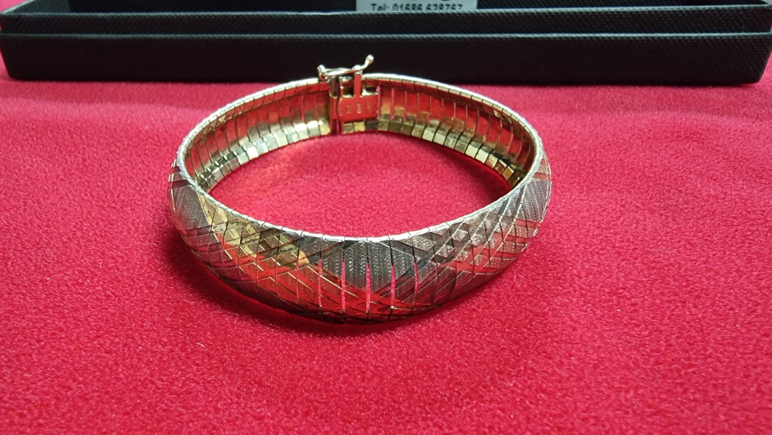 925 silver Tricolour bracelet with yellow and Rose gold plating in excellent clean condition marked 925 Milor, Italy. Total length of 8 inches x width 1.5cm with a weight of 24.6 grams