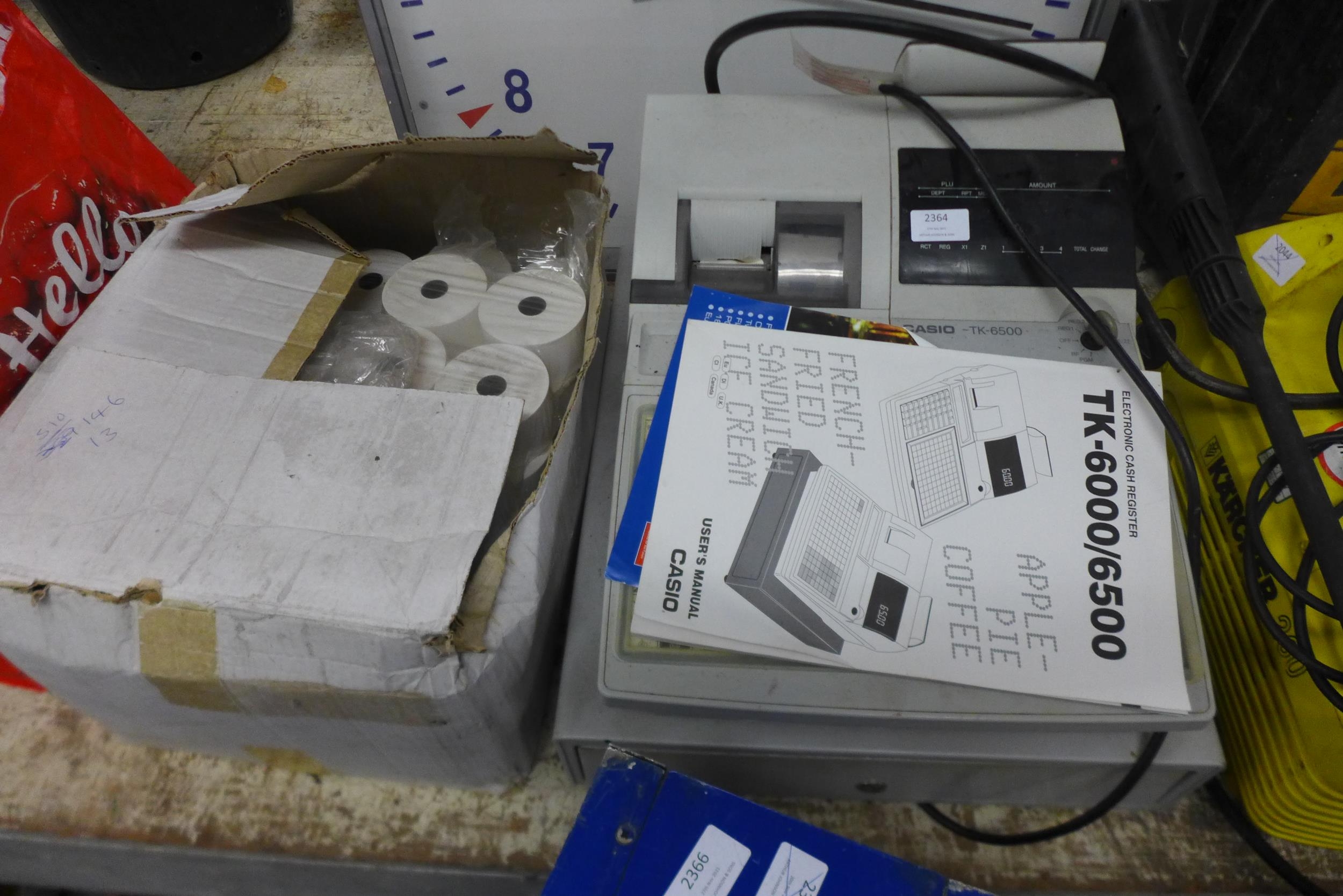 Commercial Casio TK6500 till & large qty. of till rolls - with key - W