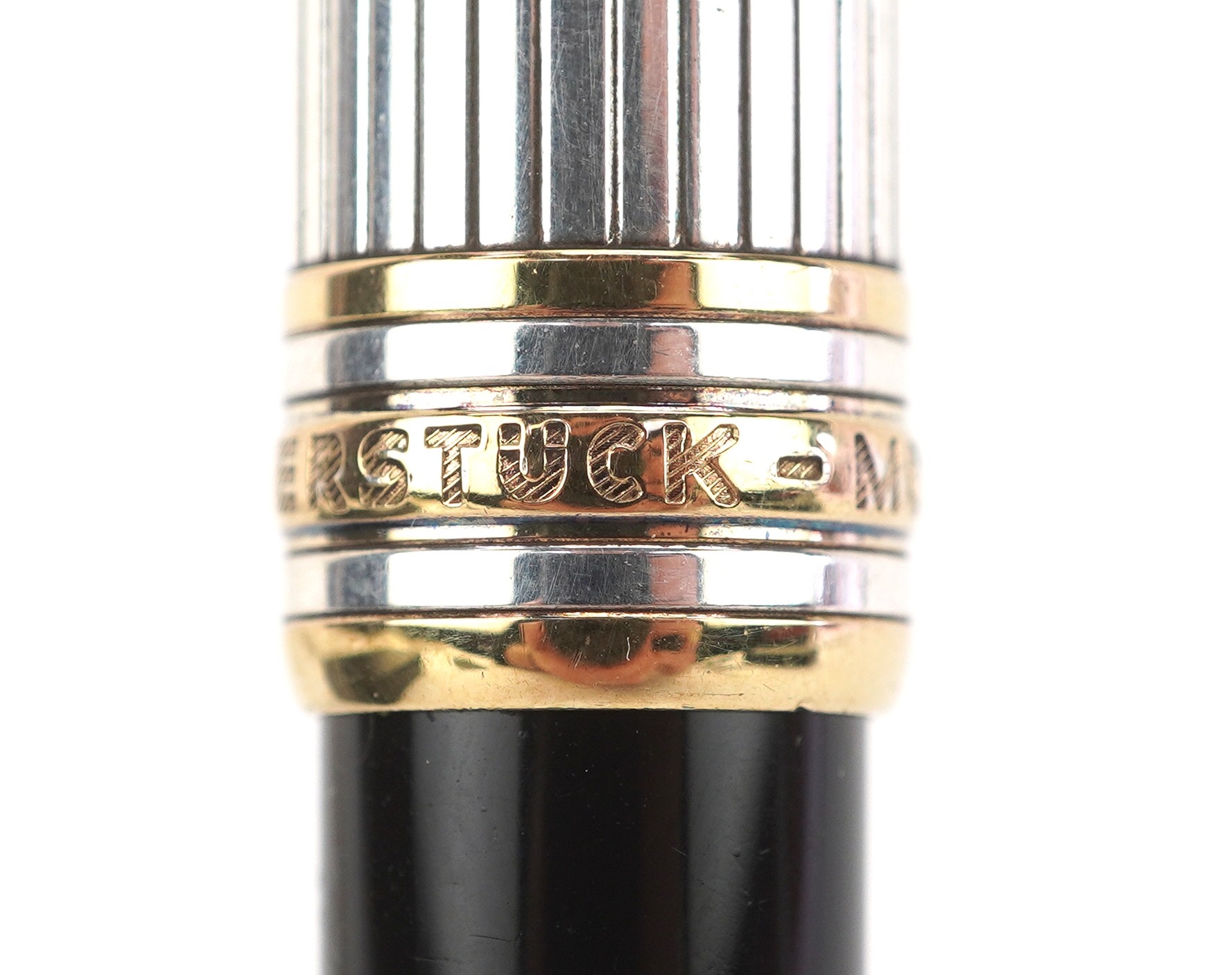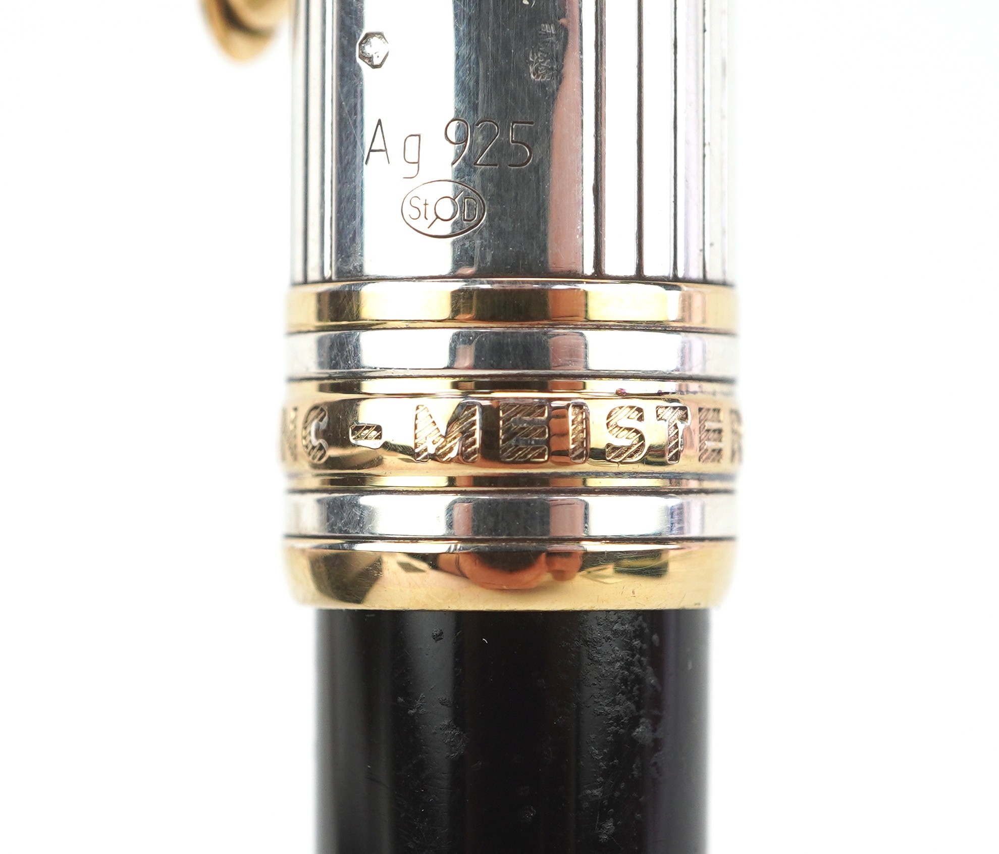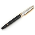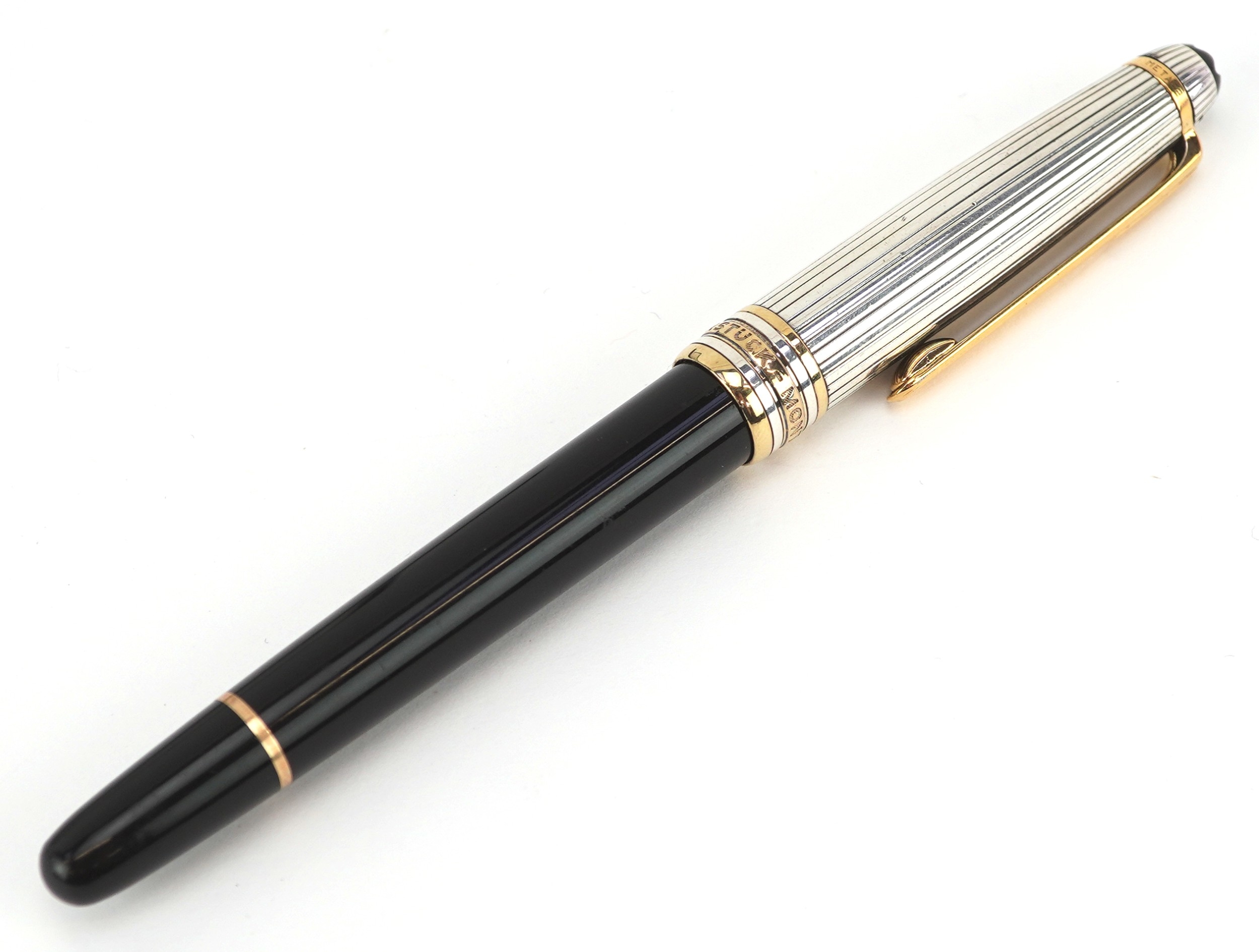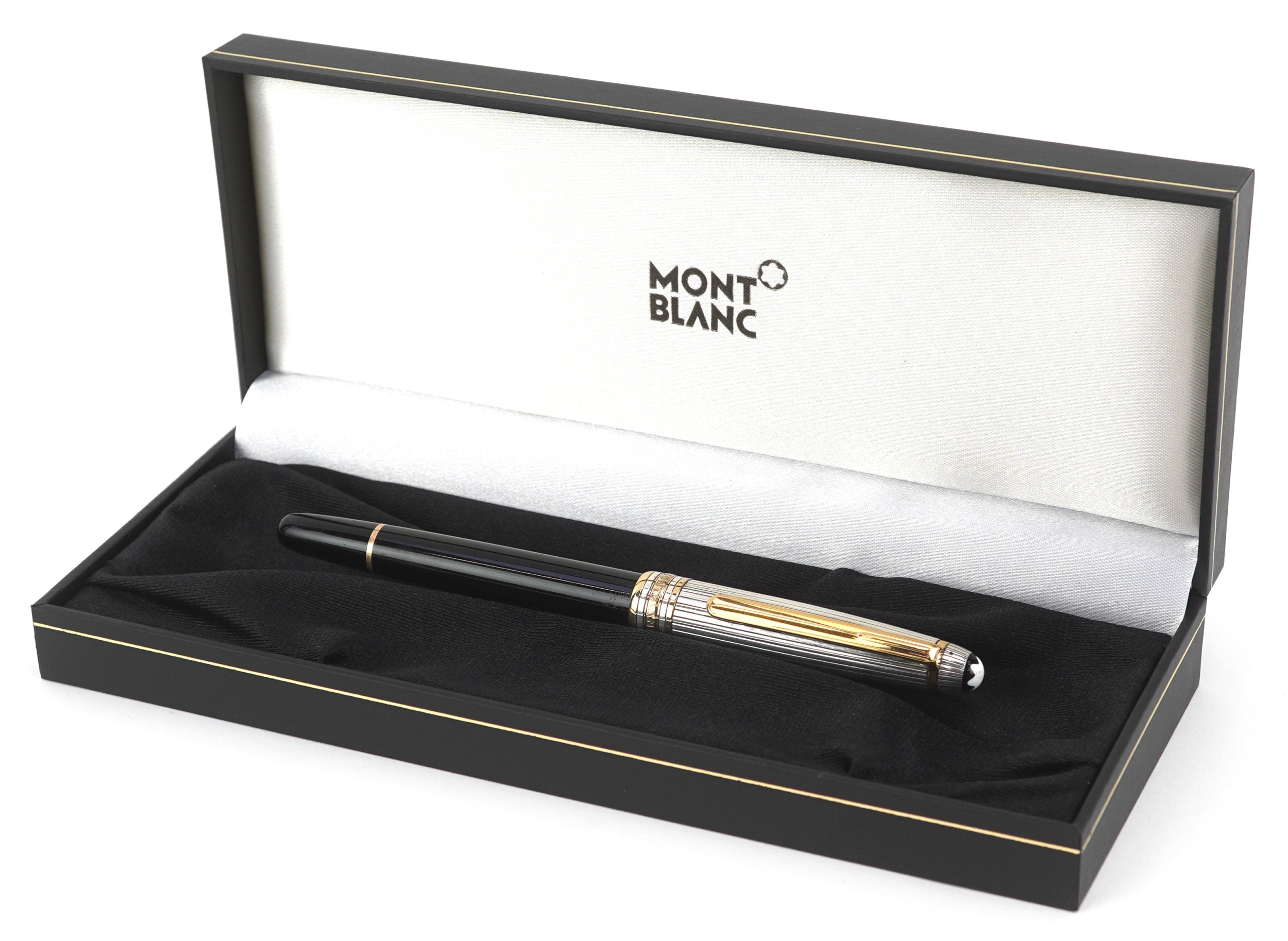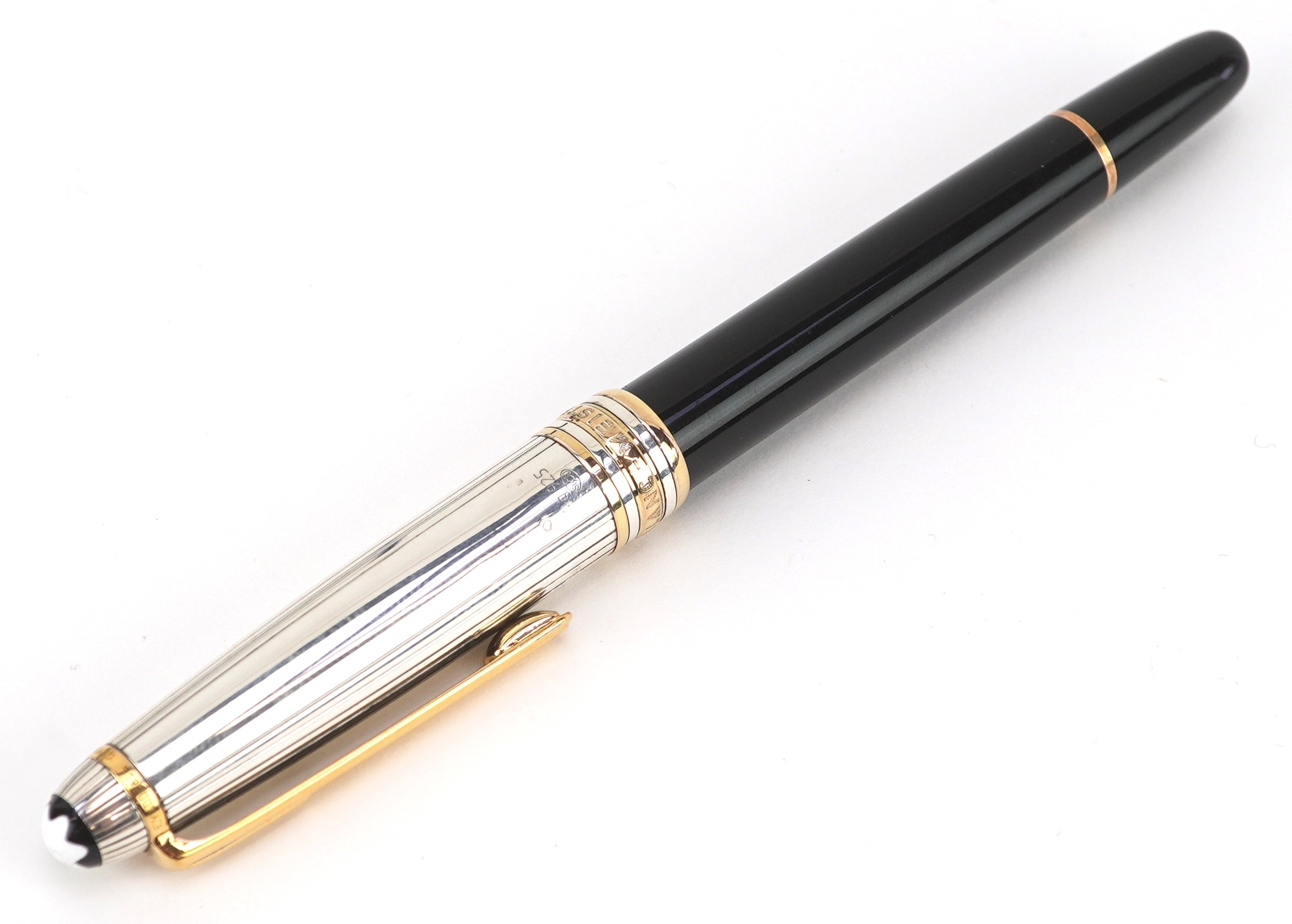 Montblanc, a Montblanc Meisterstuck ballpoint pen with 925 silver and gold cap, with box and paperwork, numbered EY1002816, 13.5cm in length.