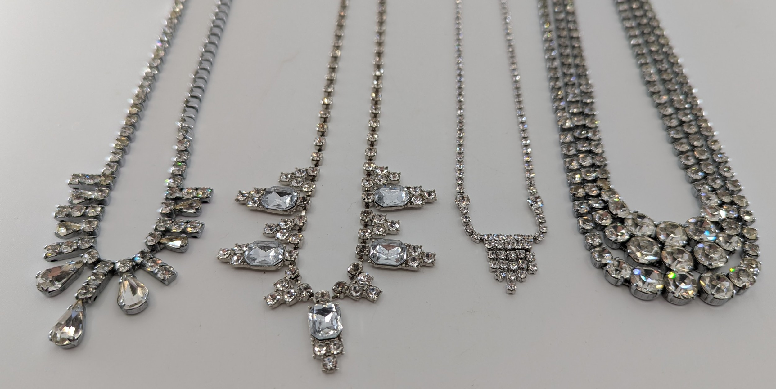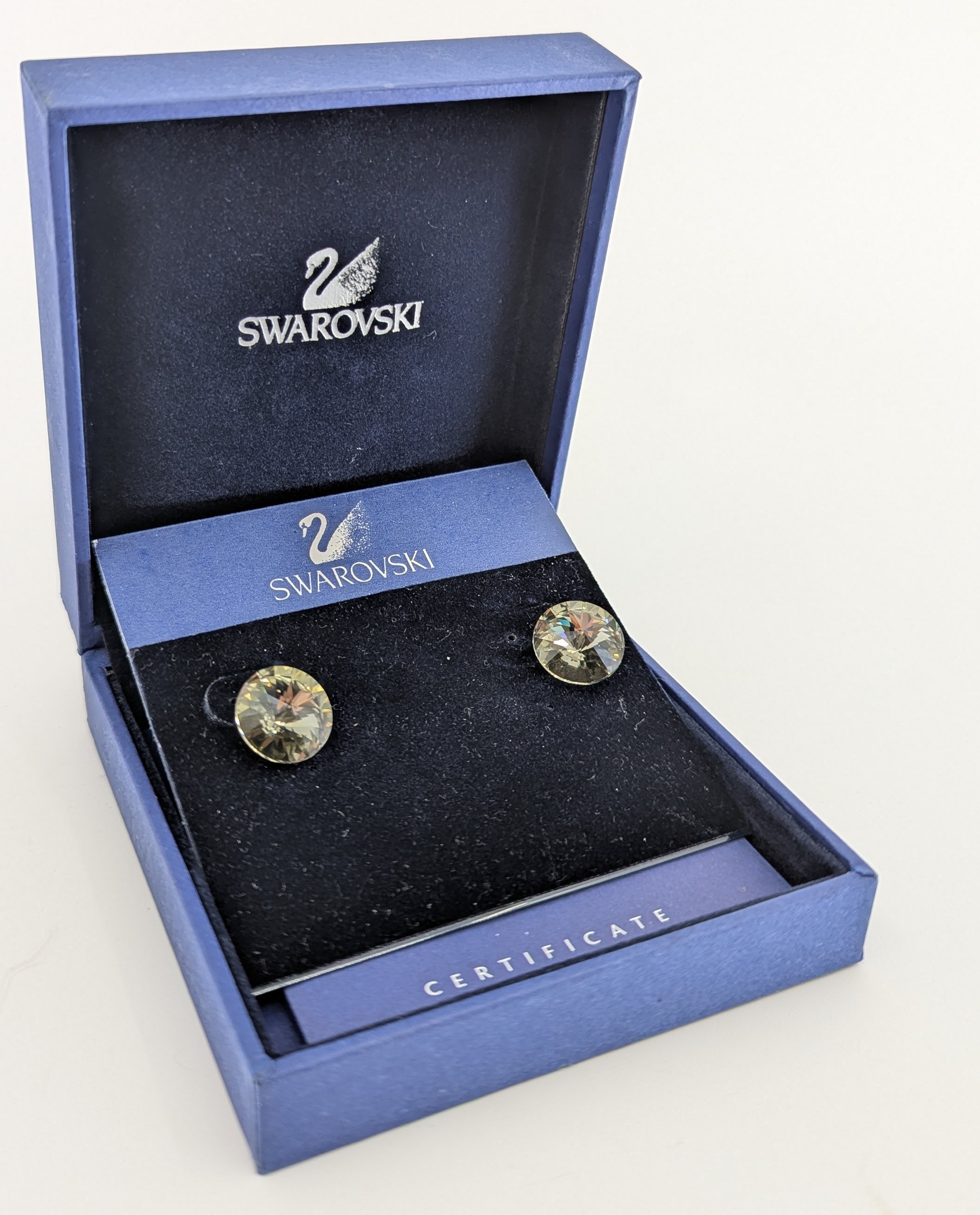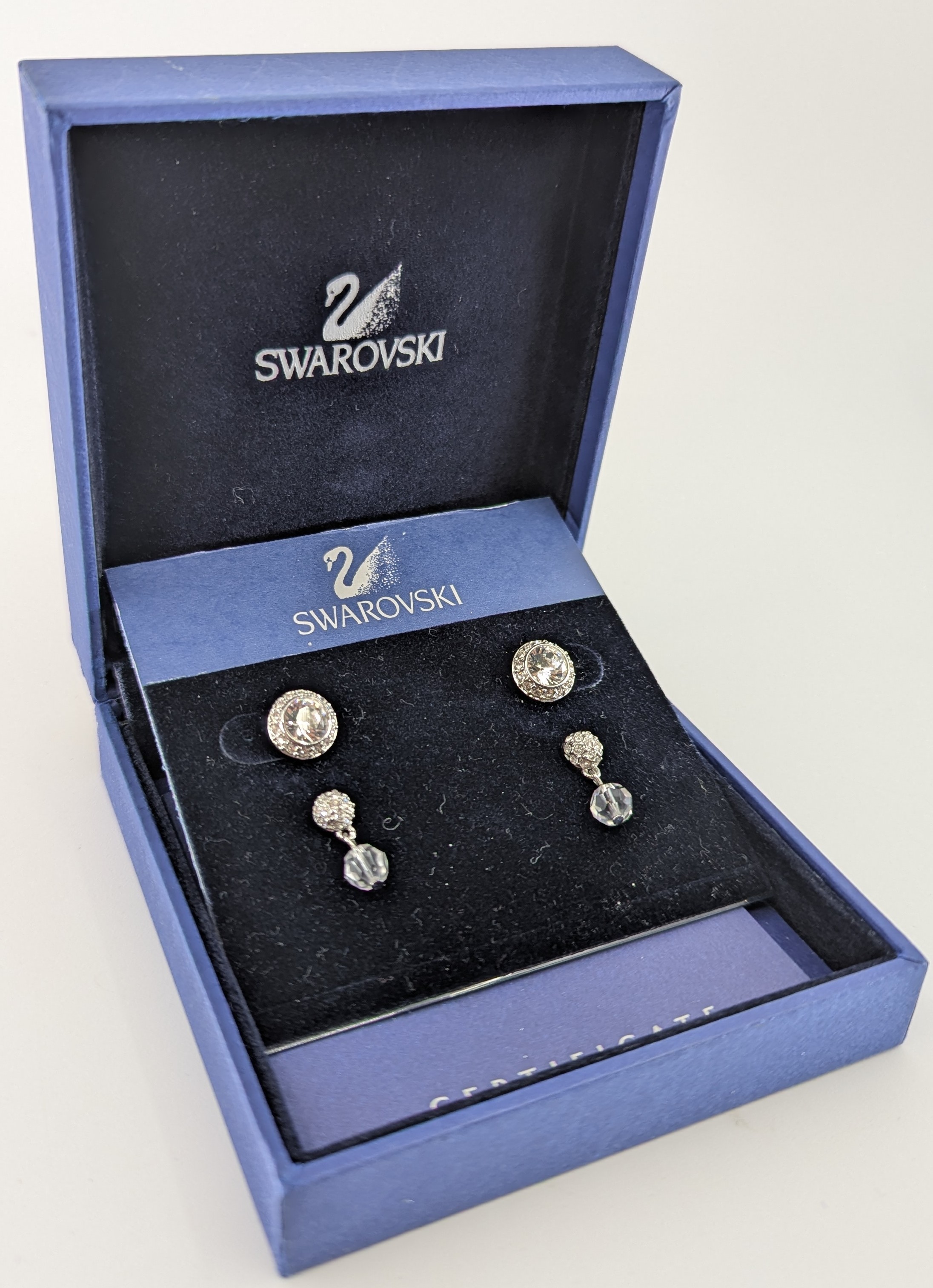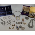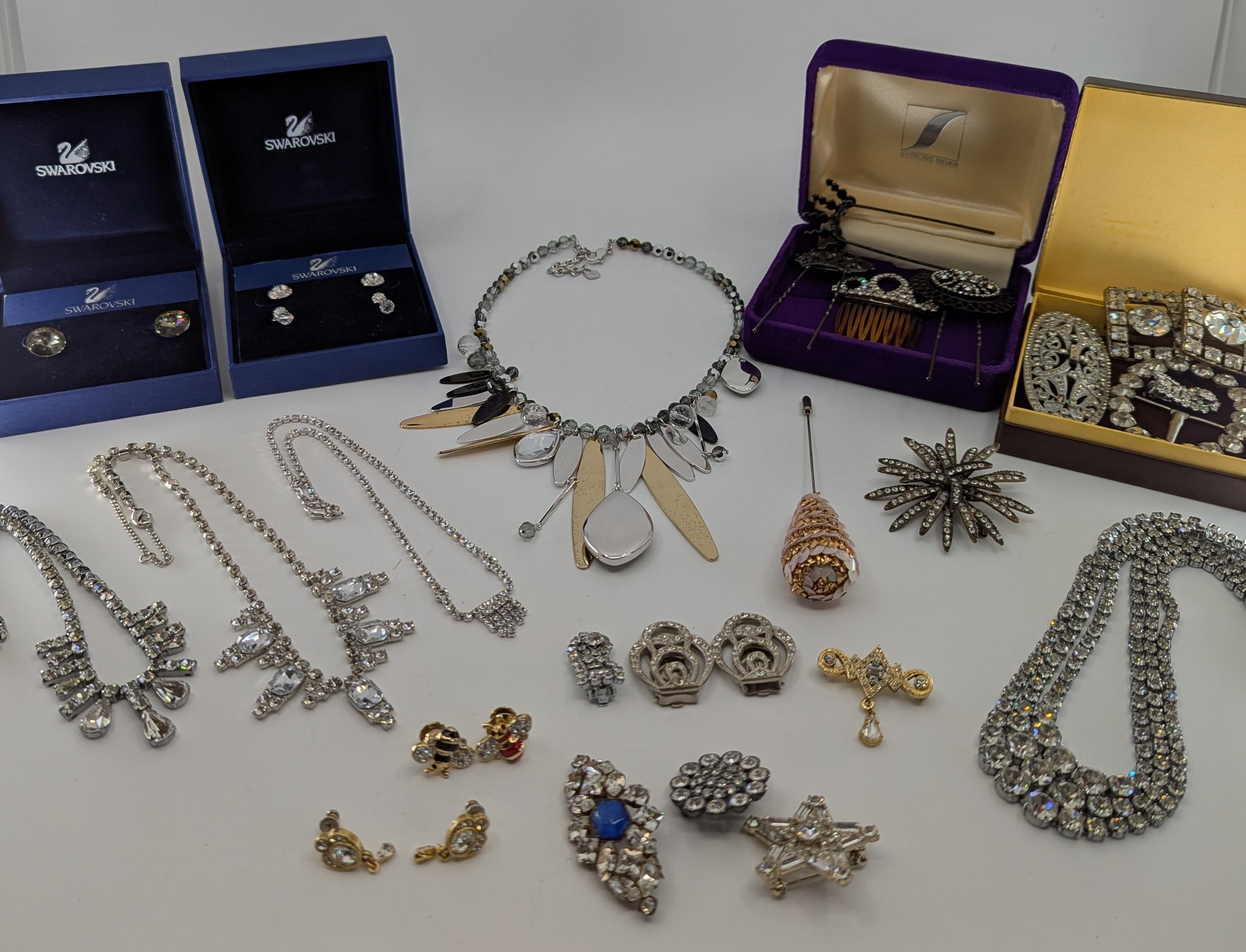 to include a pair of swarovski crystal stud earrings boxed, a swarovski crystal necklace boxed, two other pairs of swarovski crystal stud earrings boxed, paste stone necklaces, Breil stainless steel necklace and hair clips