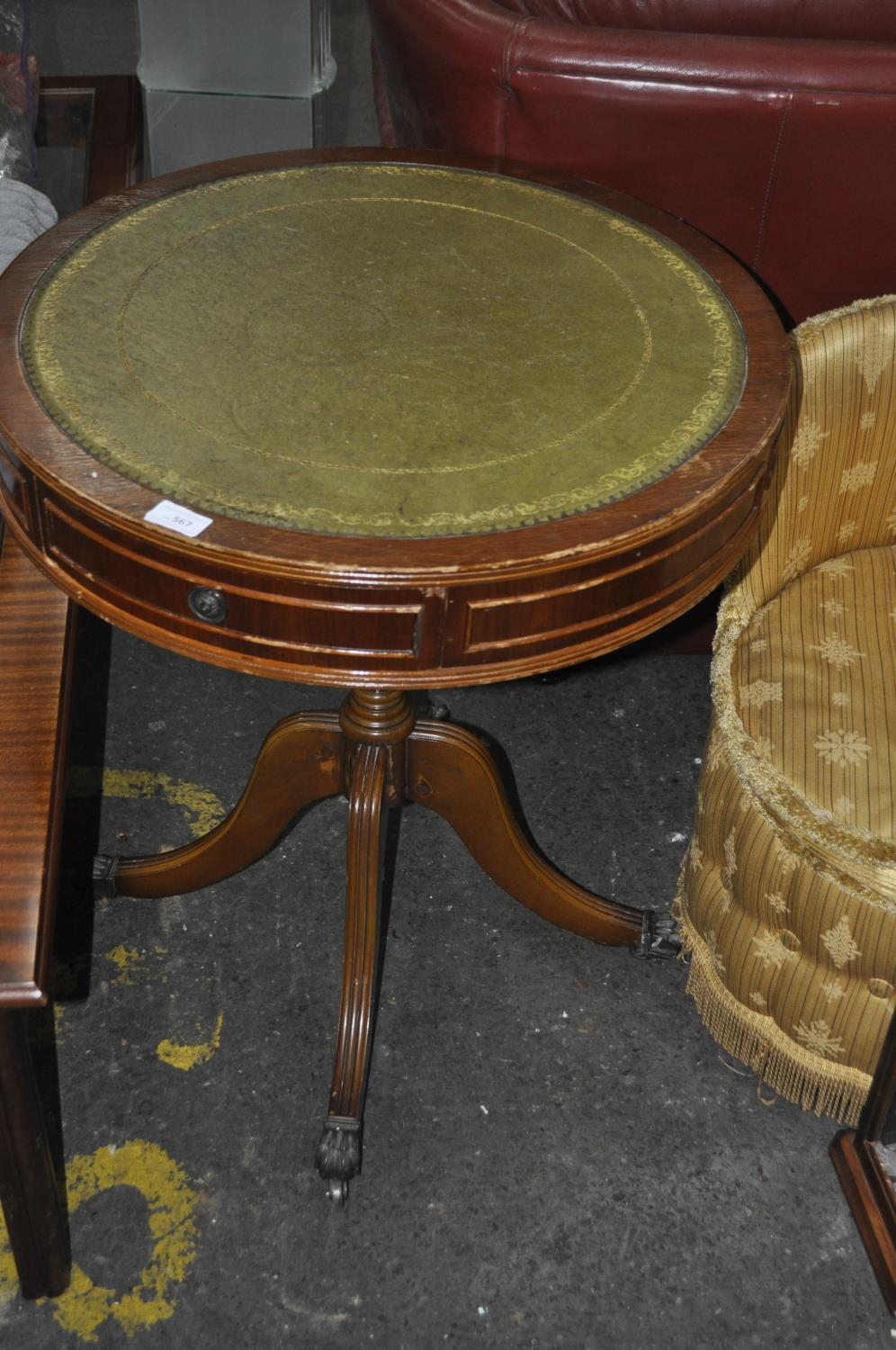 MAHOGANY WITH GREEN LEATEHRETTE DRUM TABLE