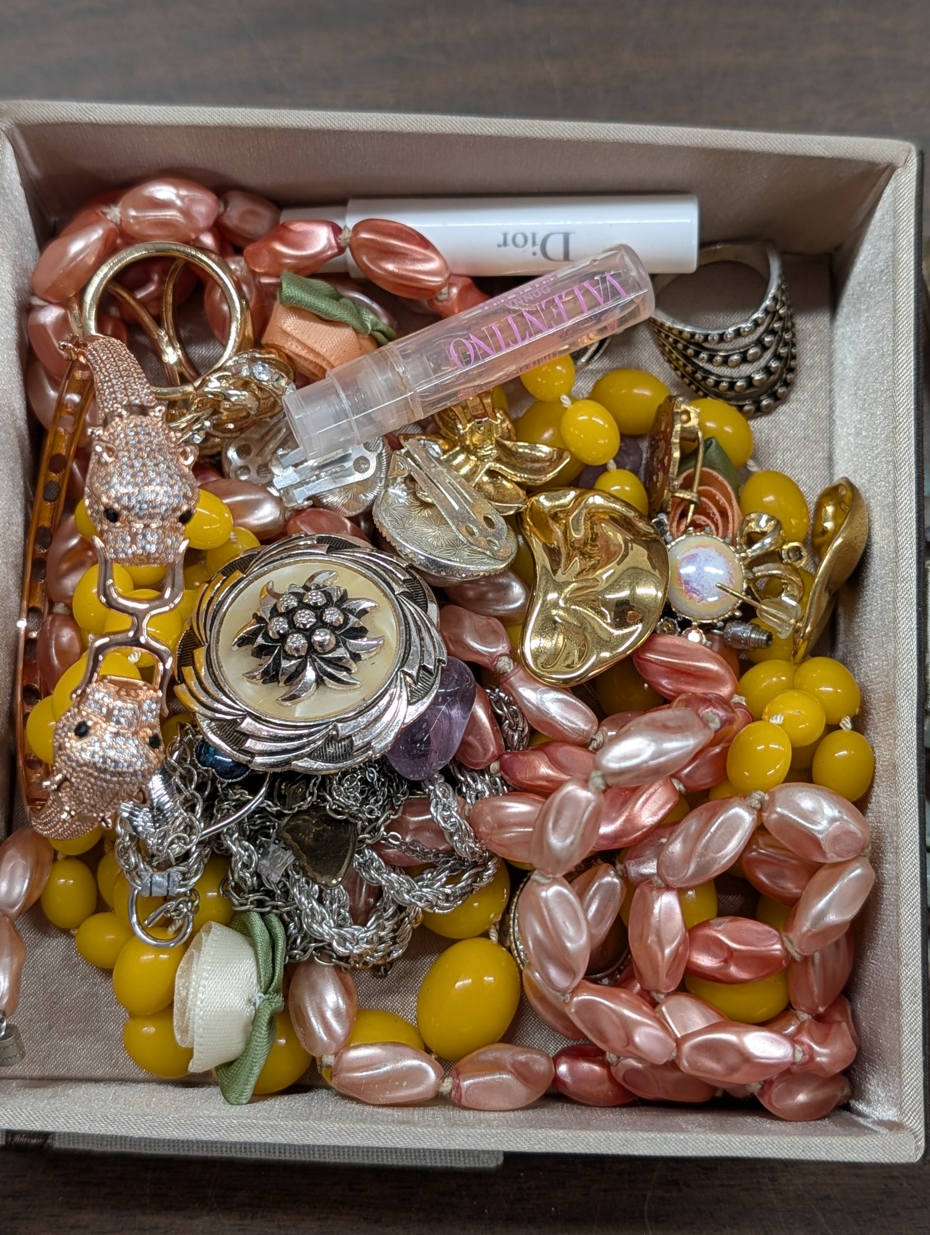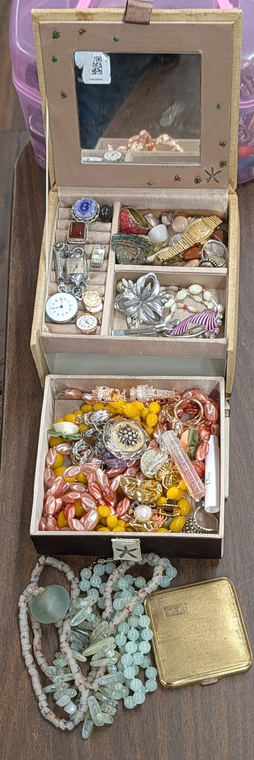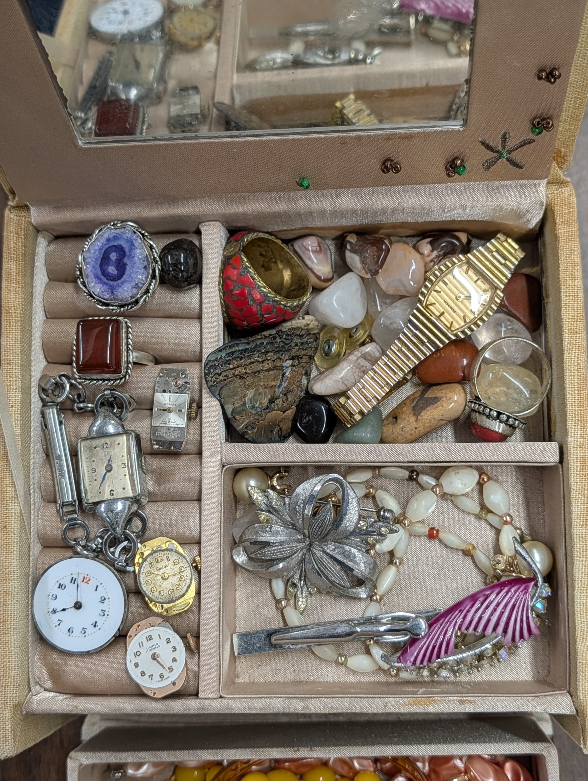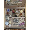 An Assortment of Vintage Costume Jewellery, Watches, and Accessories in a Two-Tier Jewellery Box