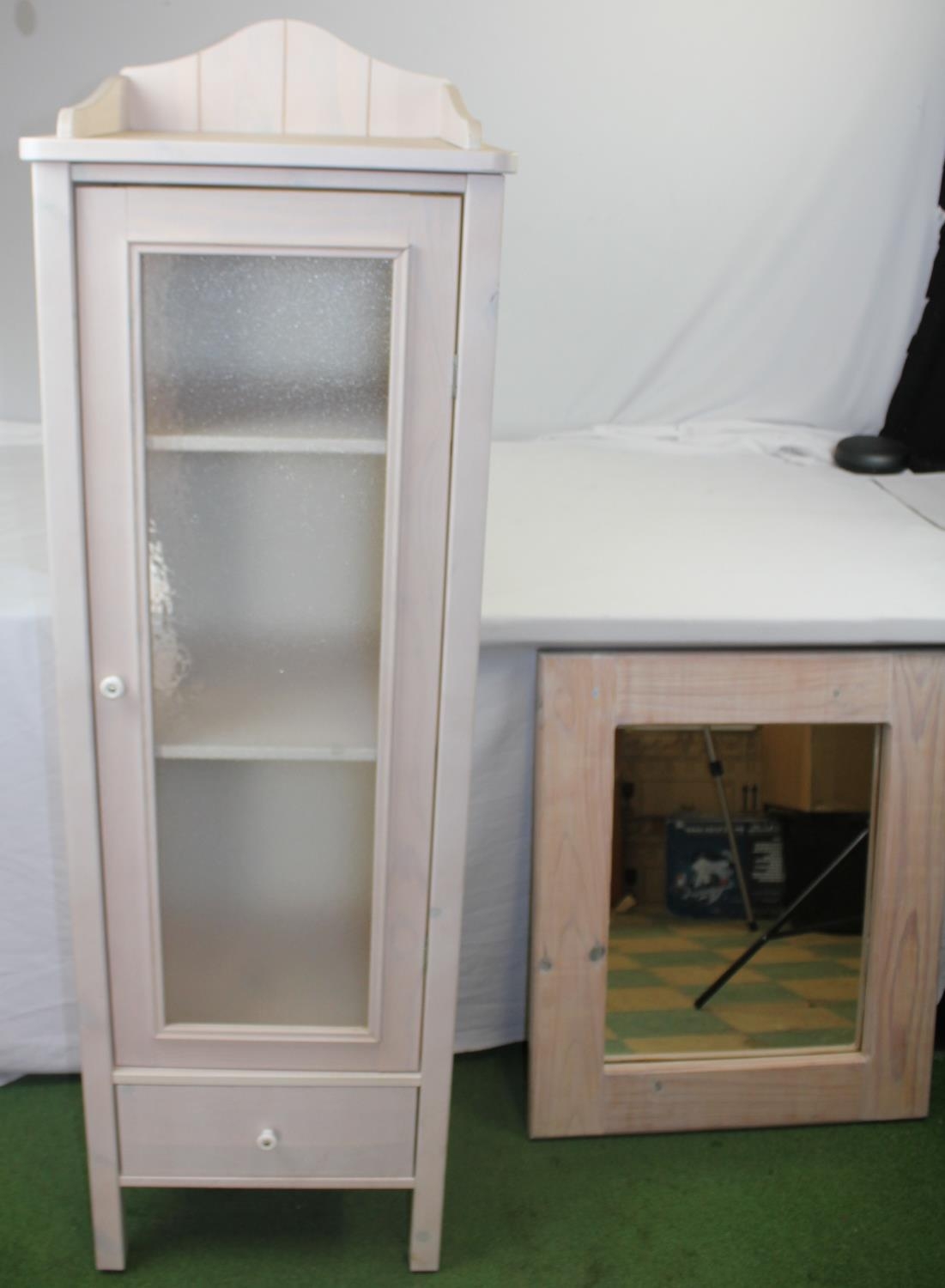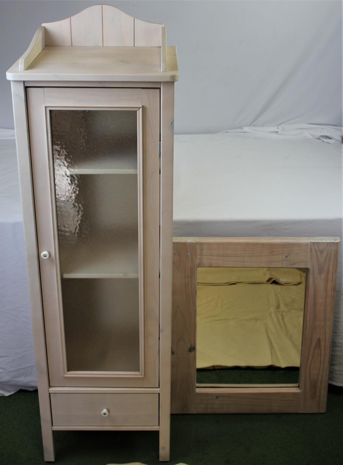 PINE BATHROOM CABINET (17" x 51" EXCLUDING PLINTHS) & MIRROR (22" x 26")