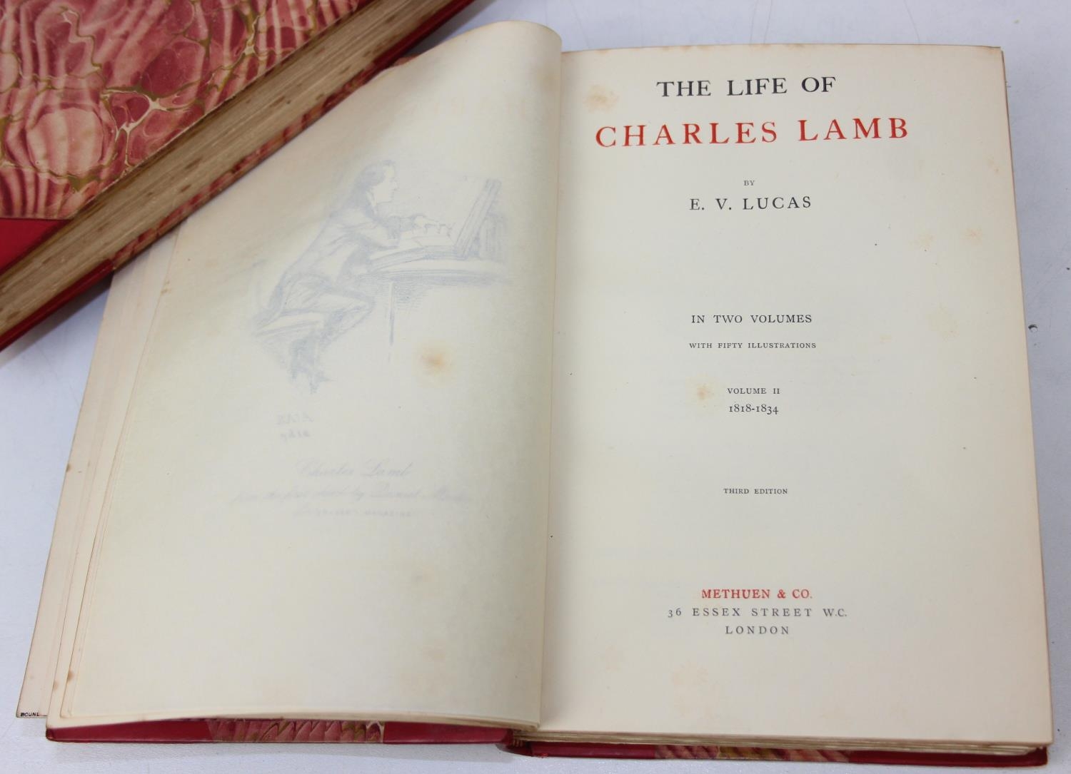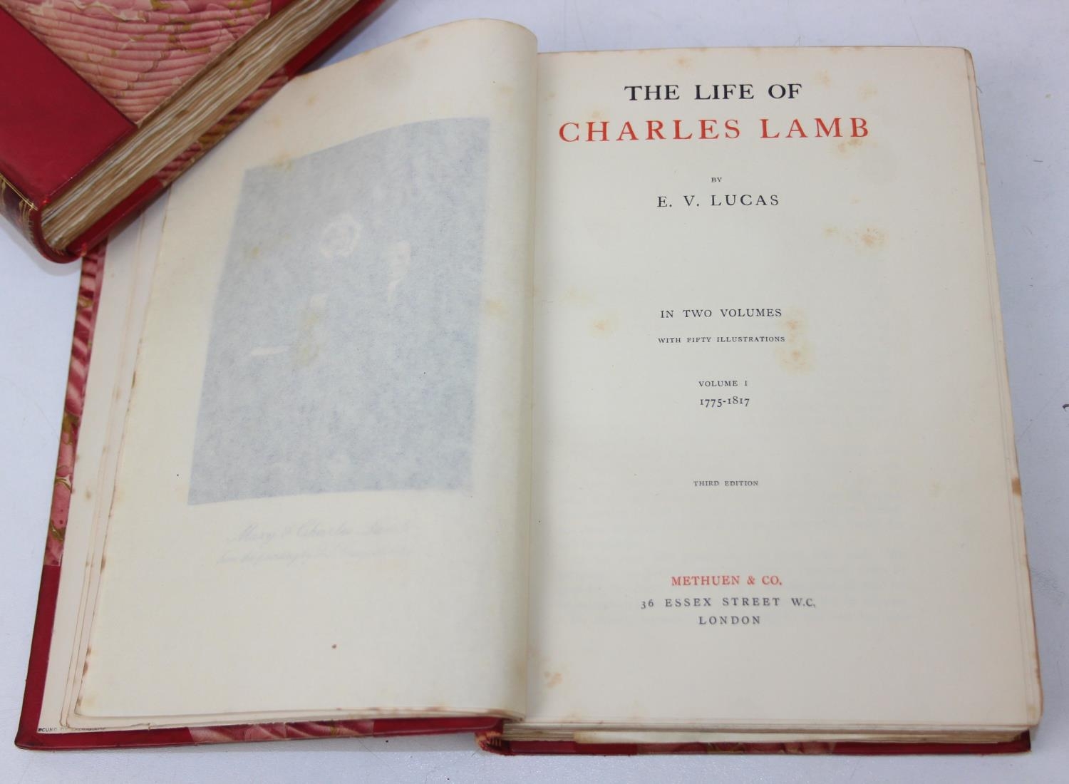 LUCAS (E. V.) 'The Life of Charles Lamb' in two volumes, Methuen & Co publishers, undated but circa 1905-1910, quarter leather bindings with marbled boards and end papers [2]