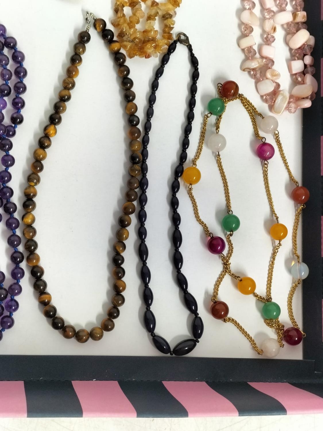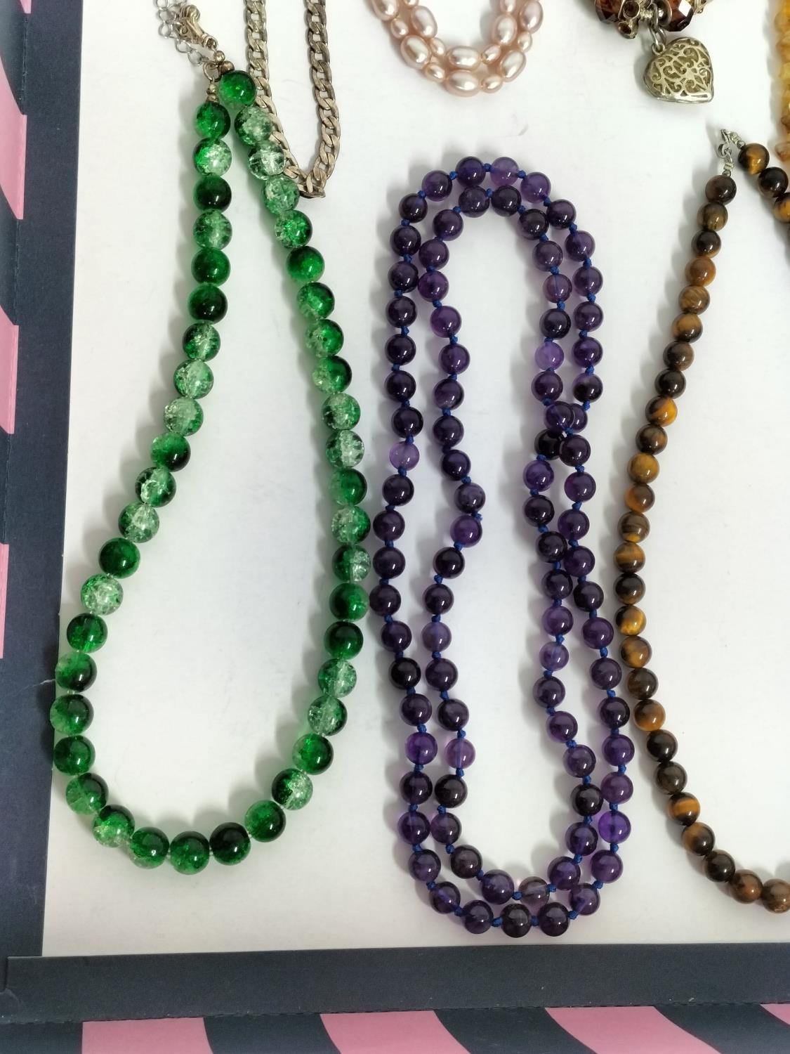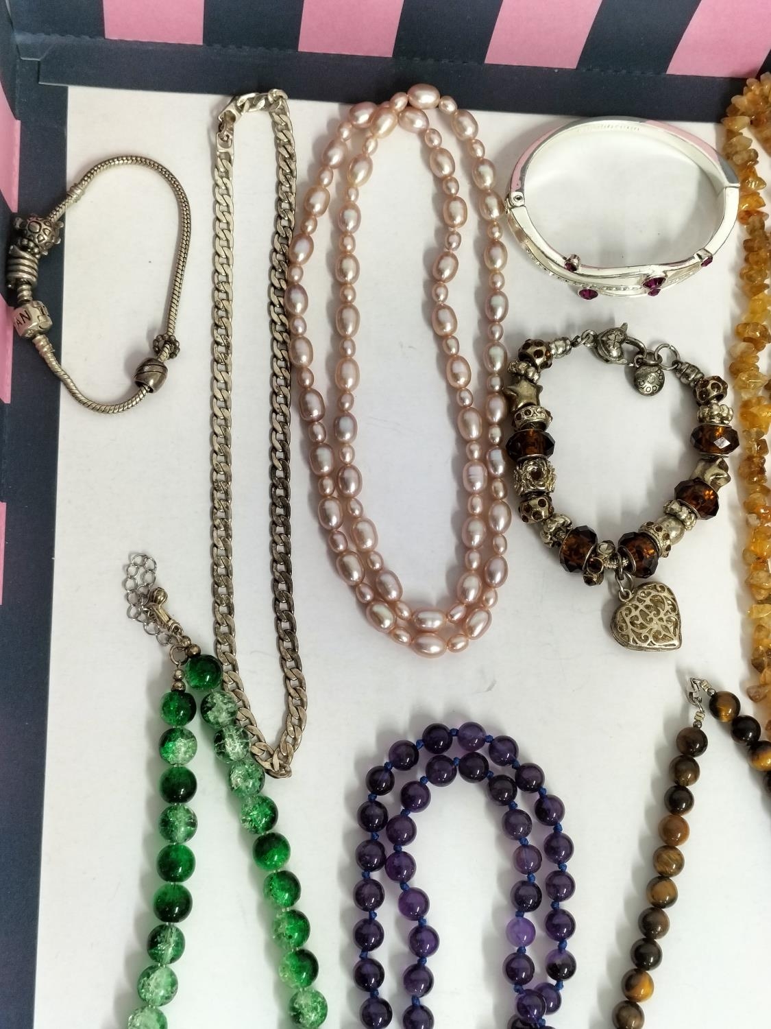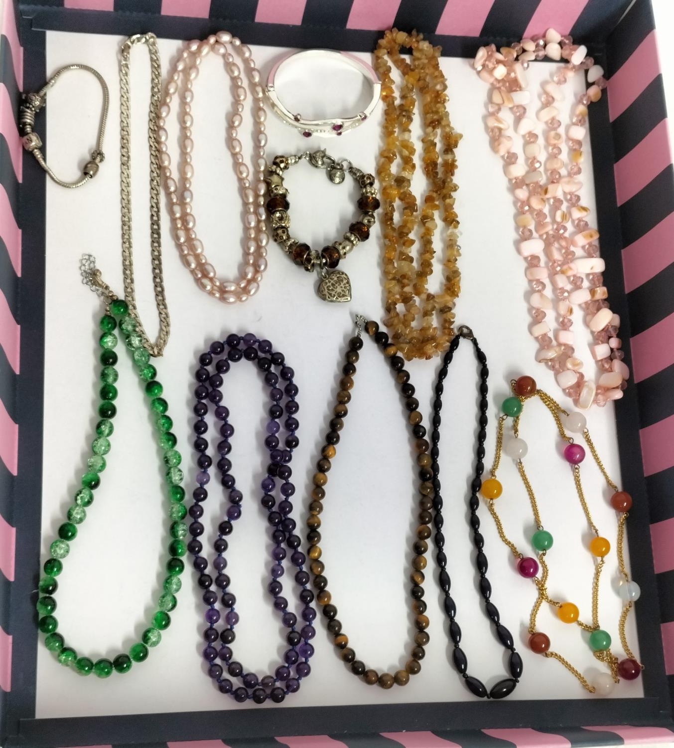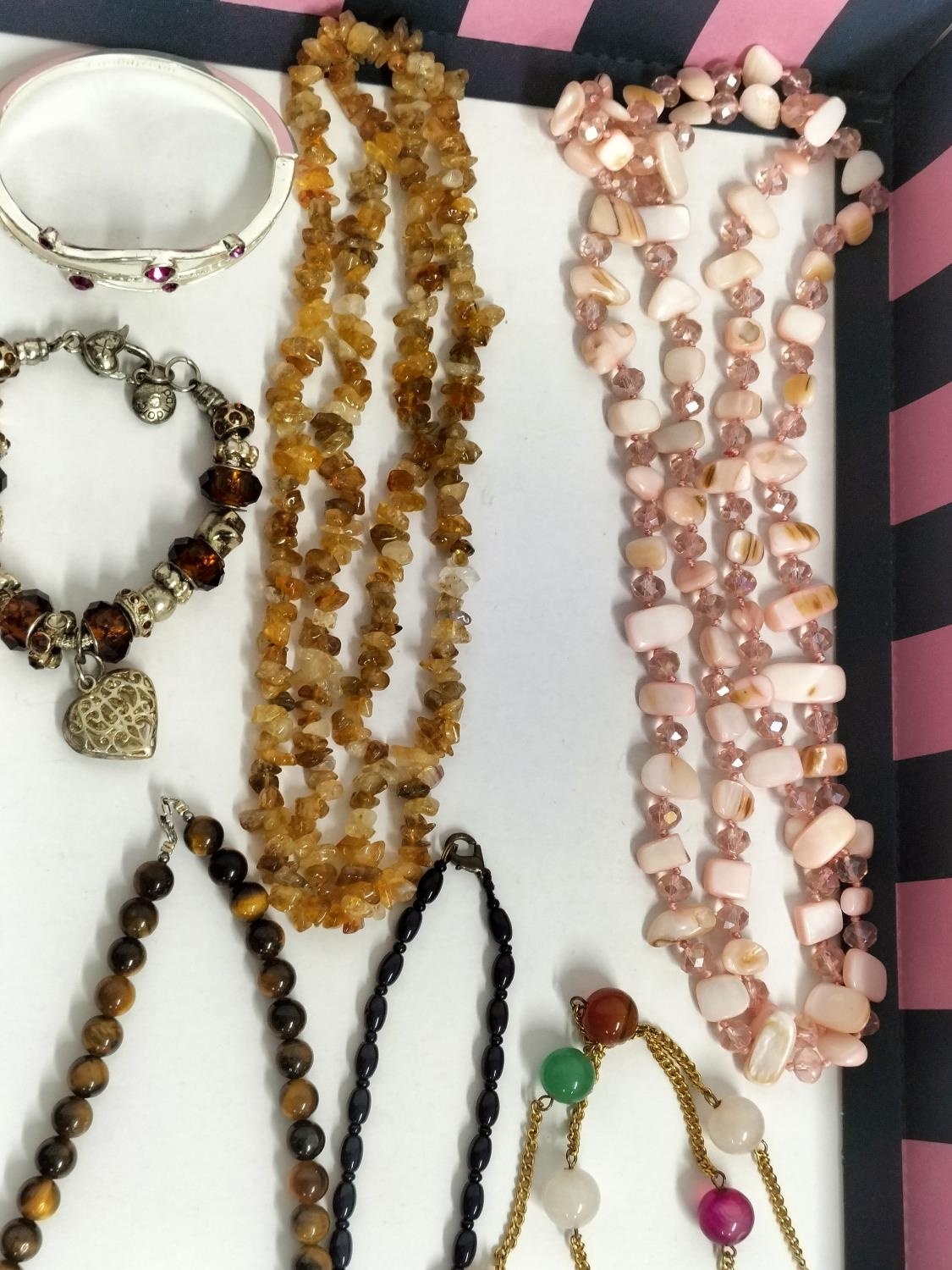 Collection of Mixed Costume Jewellery to include Tigers Eye Bead Necklace, Pearl Necklace, Charm Bracelet,