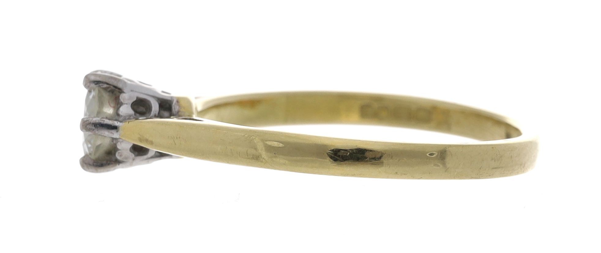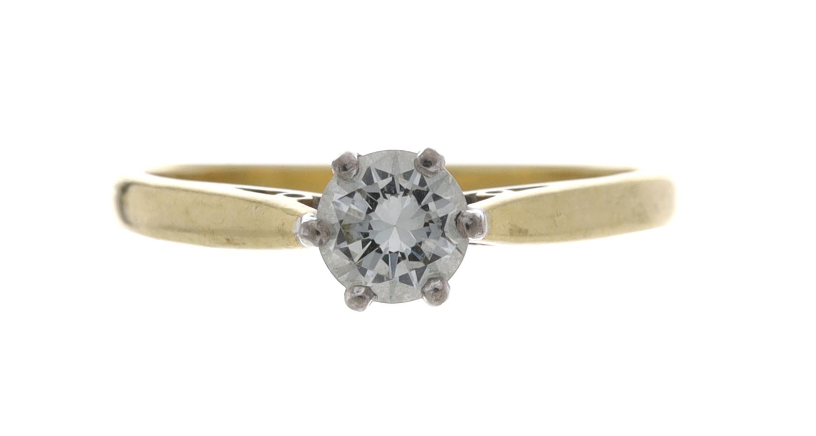 18ct yellow gold solitaire diamond ring, London 1966, round brilliant-cut, 0.40ct approx, clarity VS2/SI1, colour I, 2.9gm, width 5mm, ring size N/O