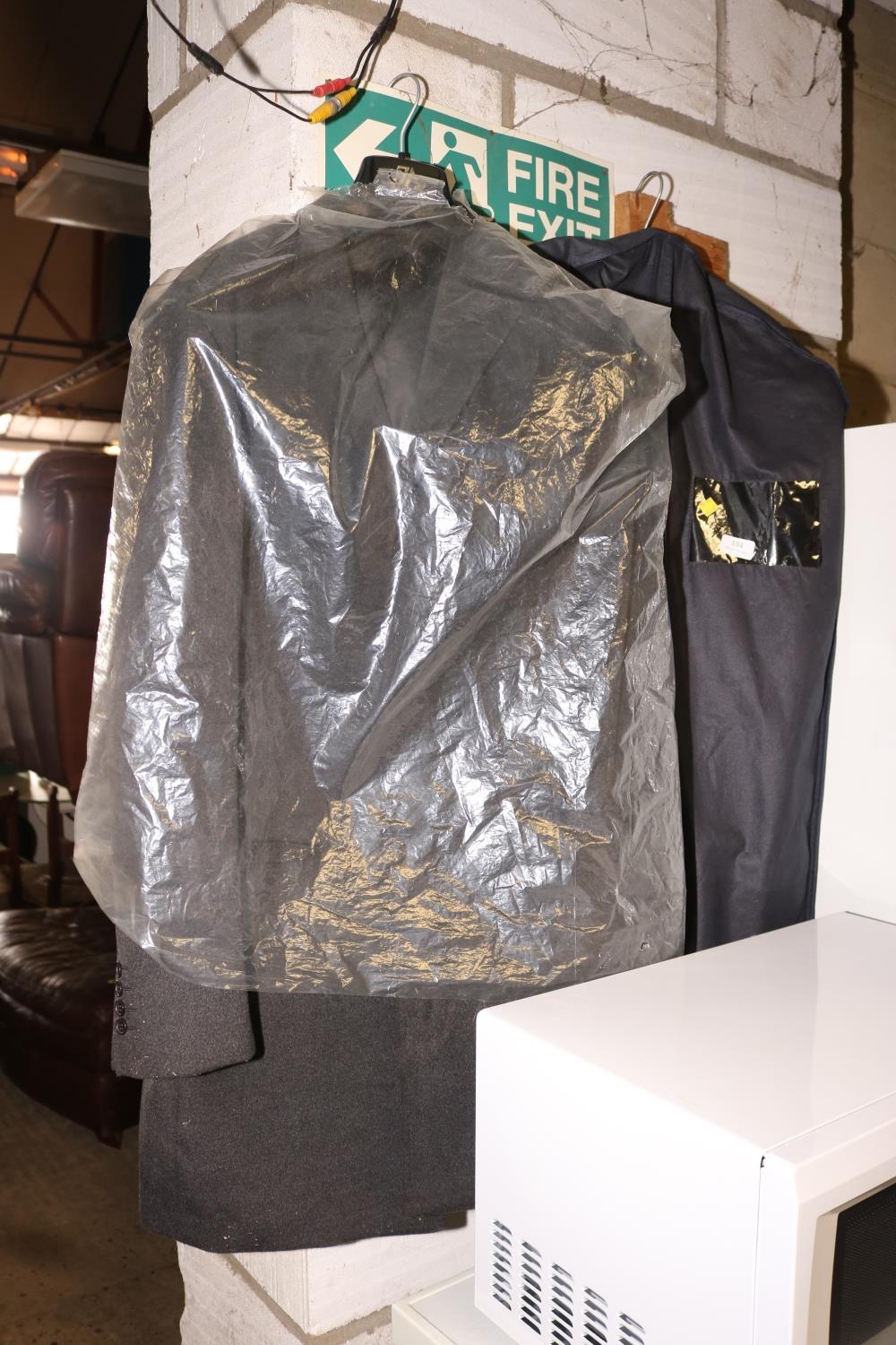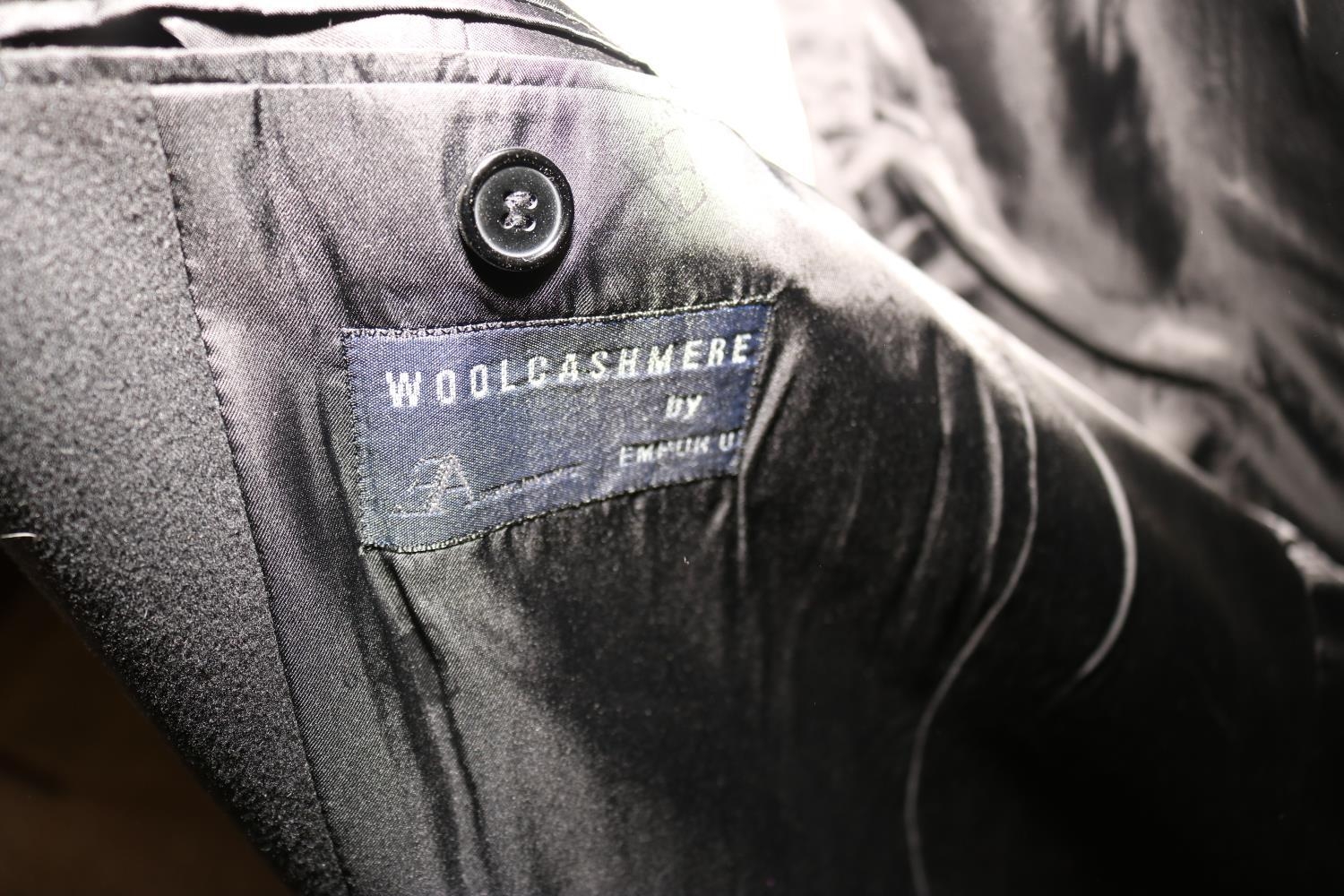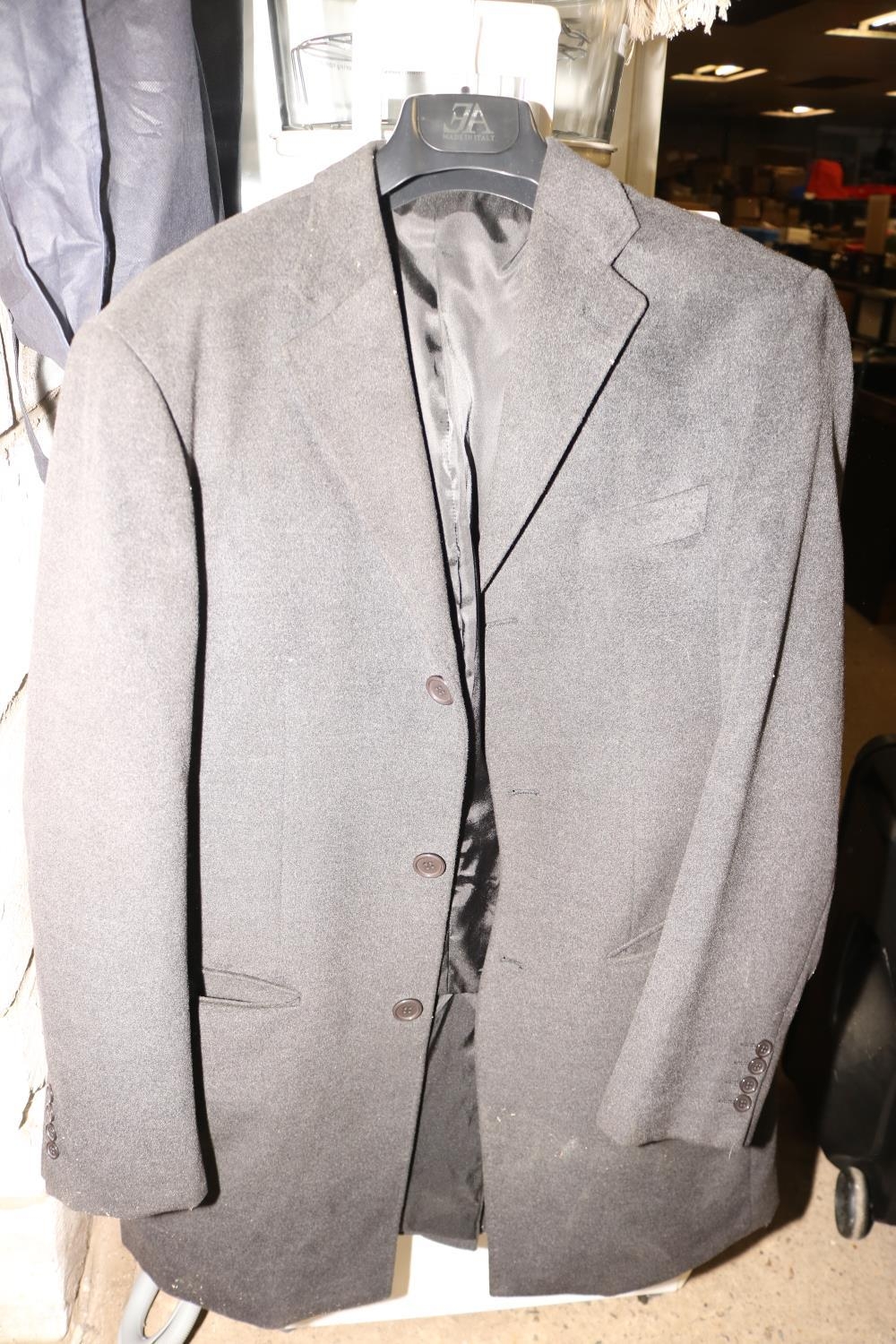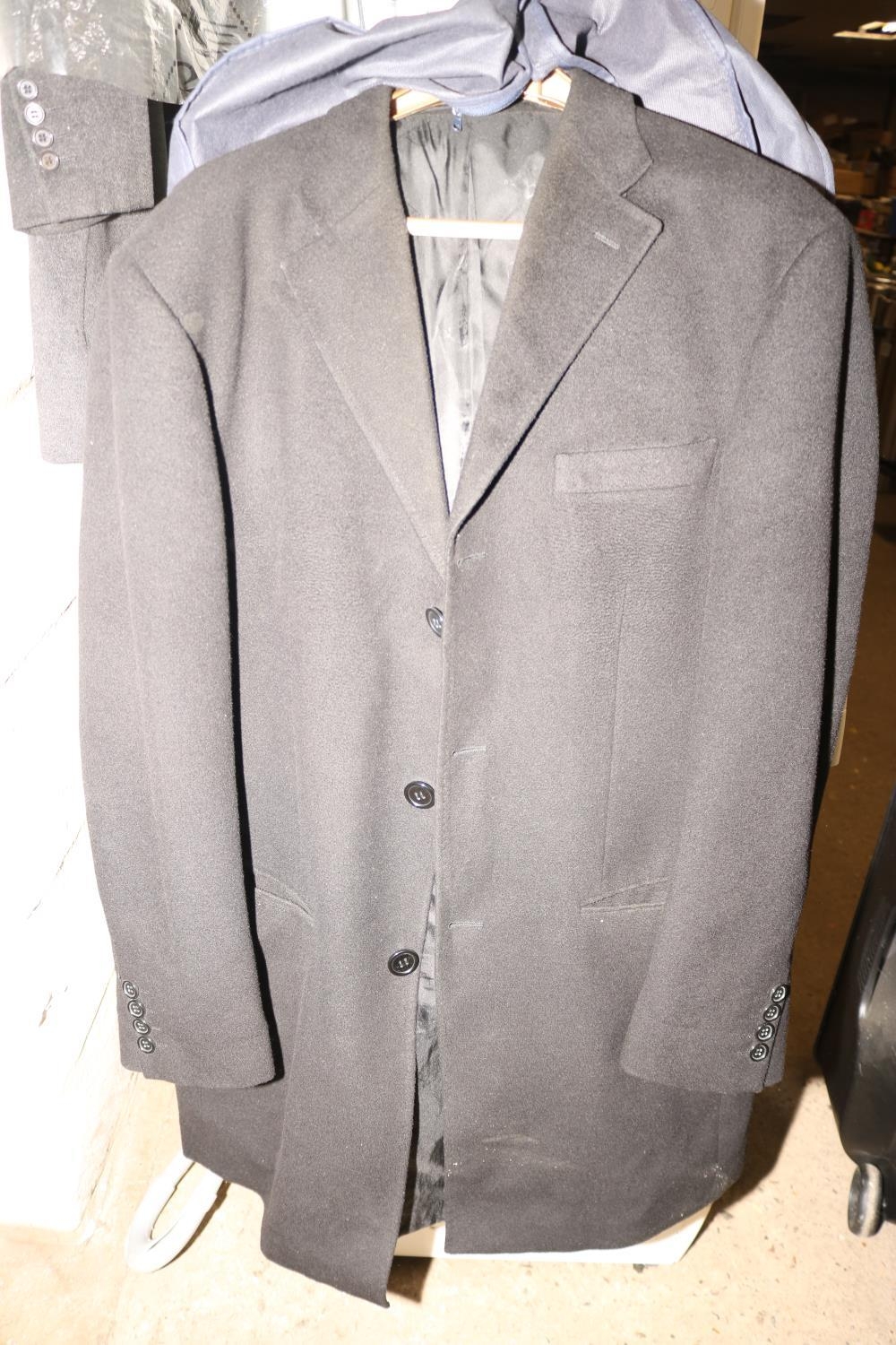 2 MENS WOOL CASHMERE OVER COATS (1 BLACK & 1 GREY, NO SIZE)