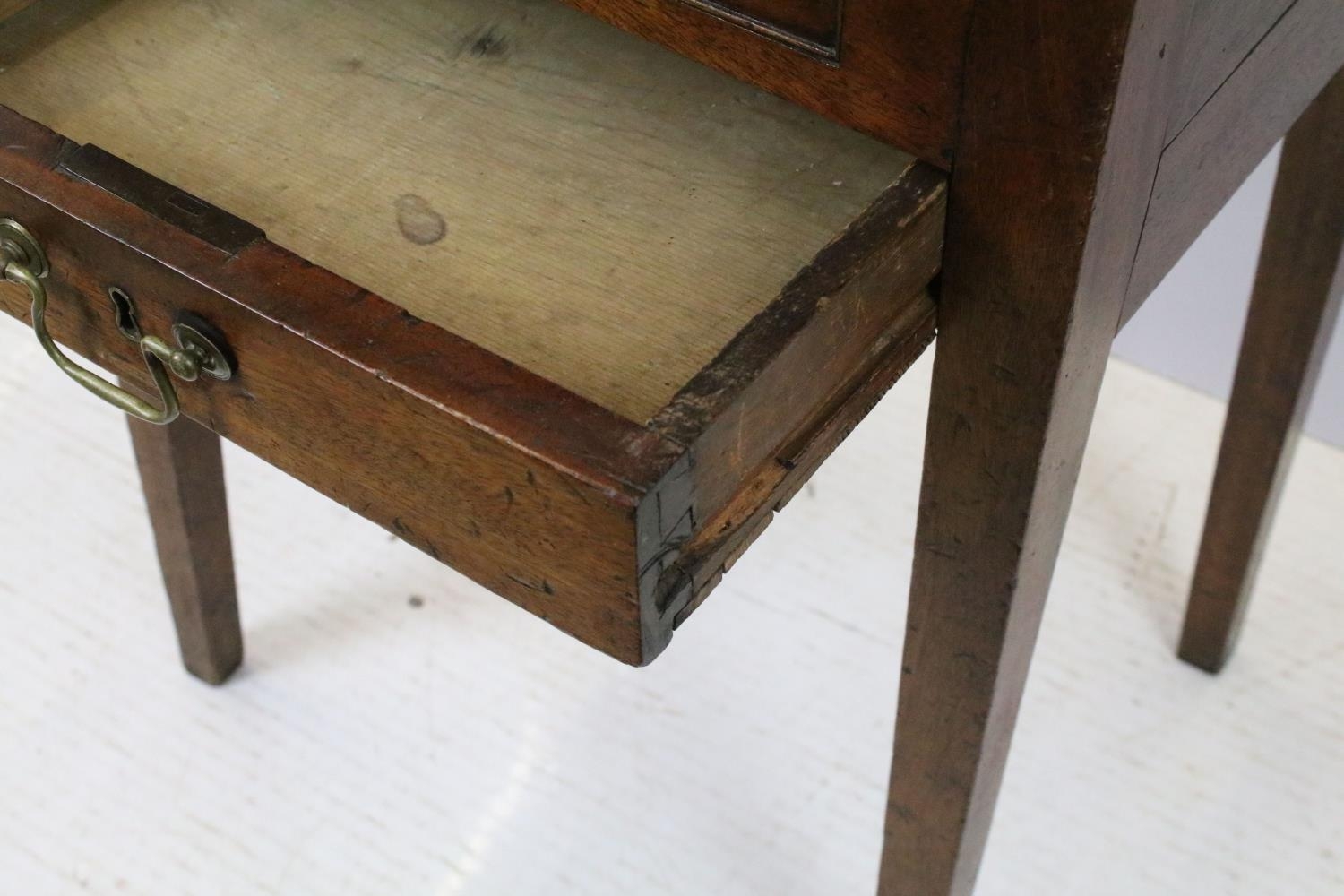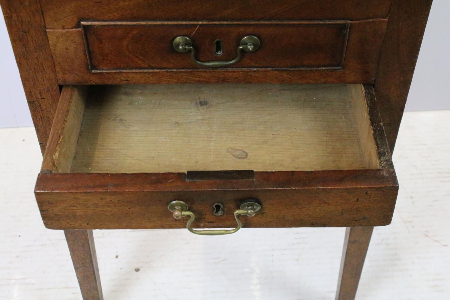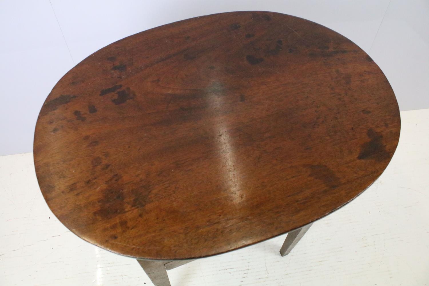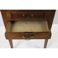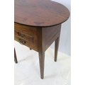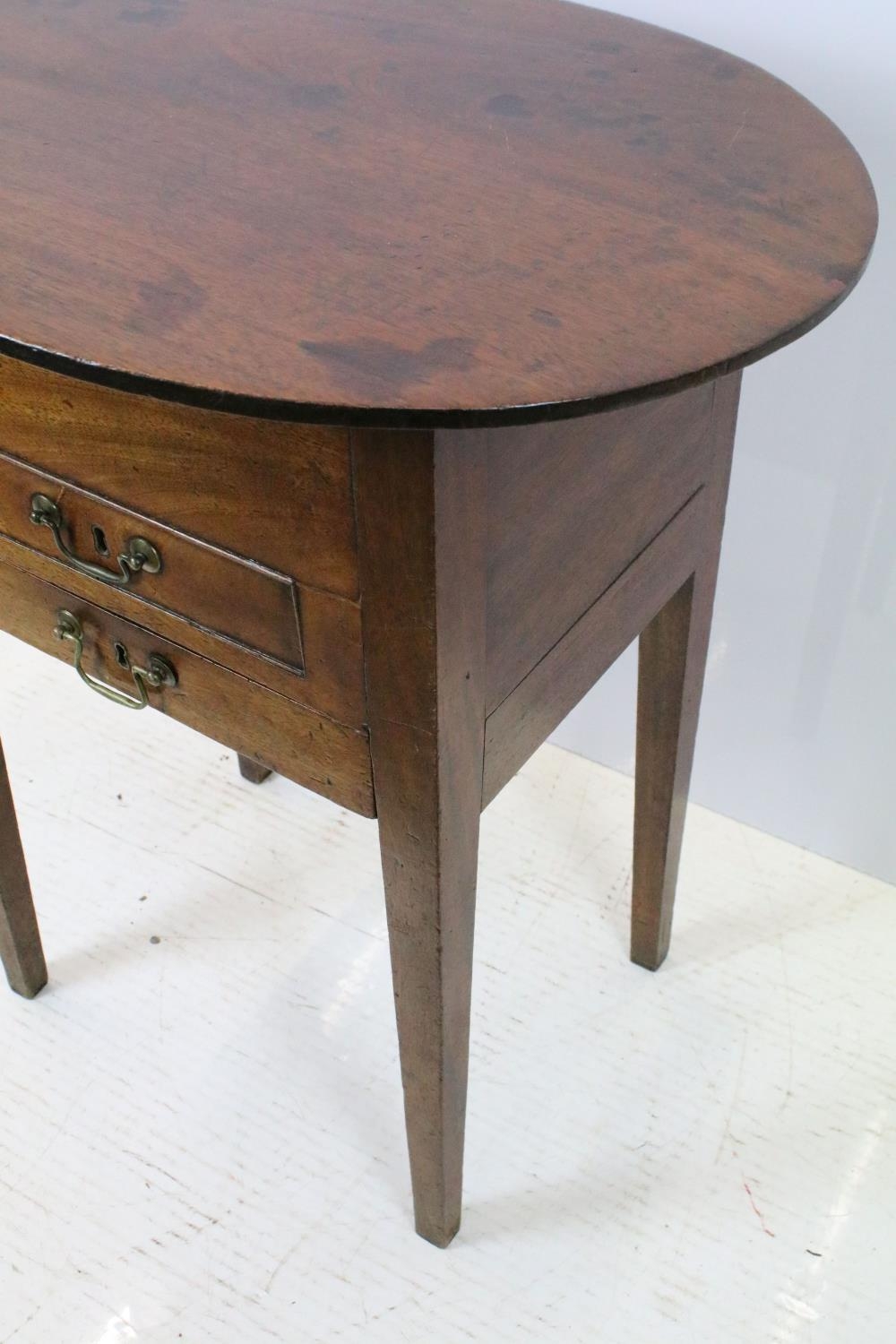 Victorian mahogany sewing box table, the oval lift up lid revealing storage inside, with one faux drawer and one further drawer below, on square tapering legs, 74.5cm high x 64cm wide x 47.5cm deep