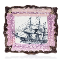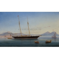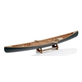 with finely planked carvel hull with bracing, string seats and stretchers, finished in green and varnished, mounted on a cradle stand together with single paddle -- 27½in. (70cm.) long