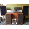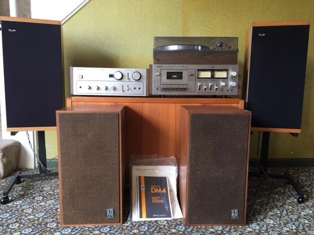 A SONY TUNER AMPLIFIER CASSETTE DECK AND RECORD PLAYER TOGETHER WITH A PAIR OF BMW SPEAKERS ON STANDS AND A PAIR OF AV30 SPEAKERS