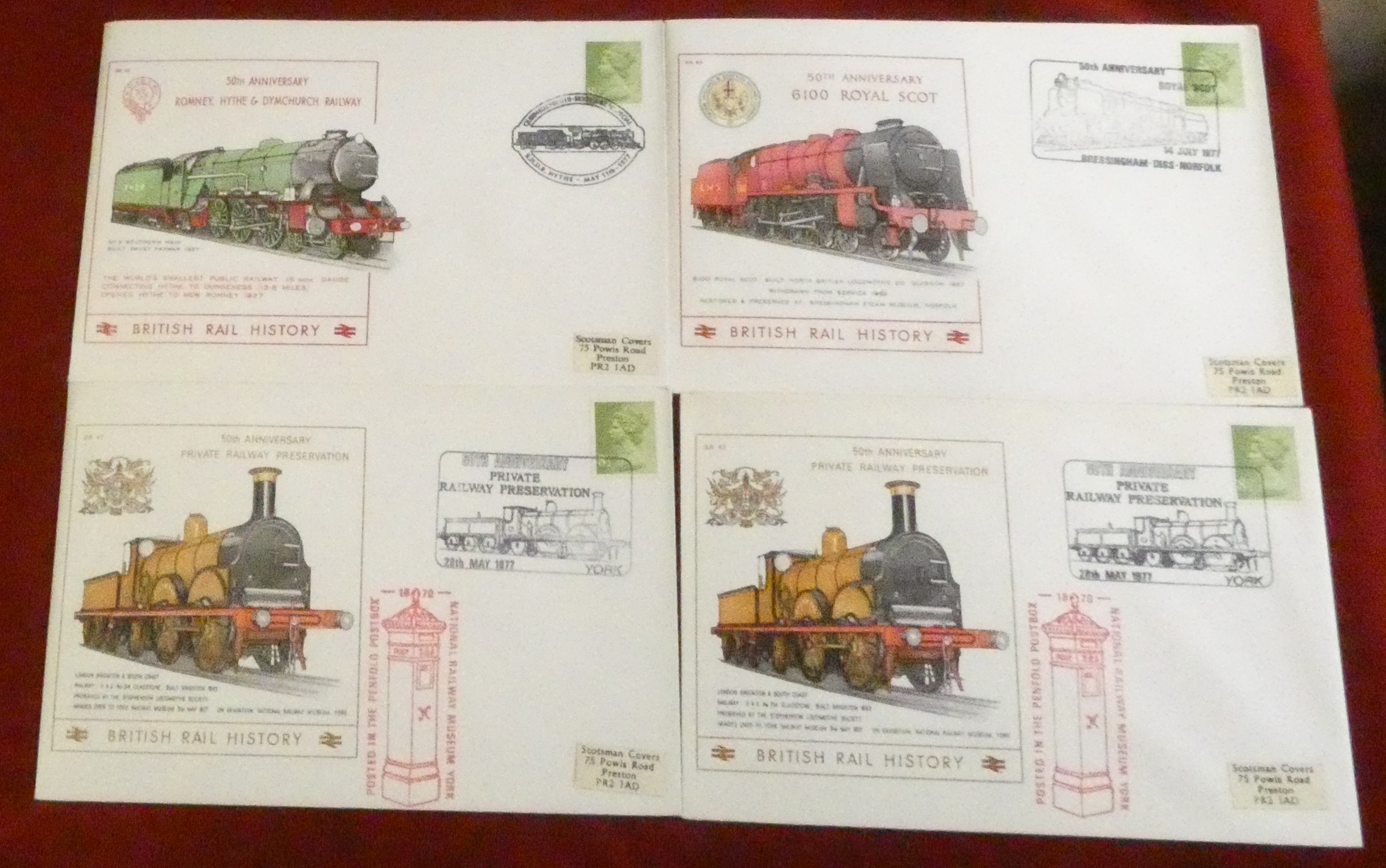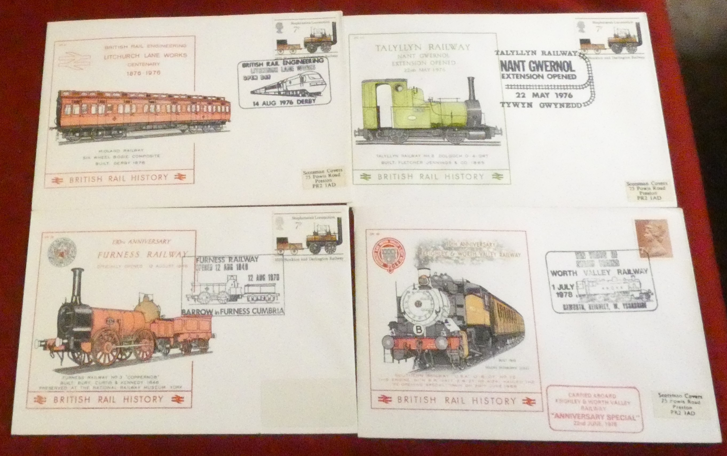 Great Britain 1974-78 20 British Rail history commemmorative illustrated covers with cachet cancels.