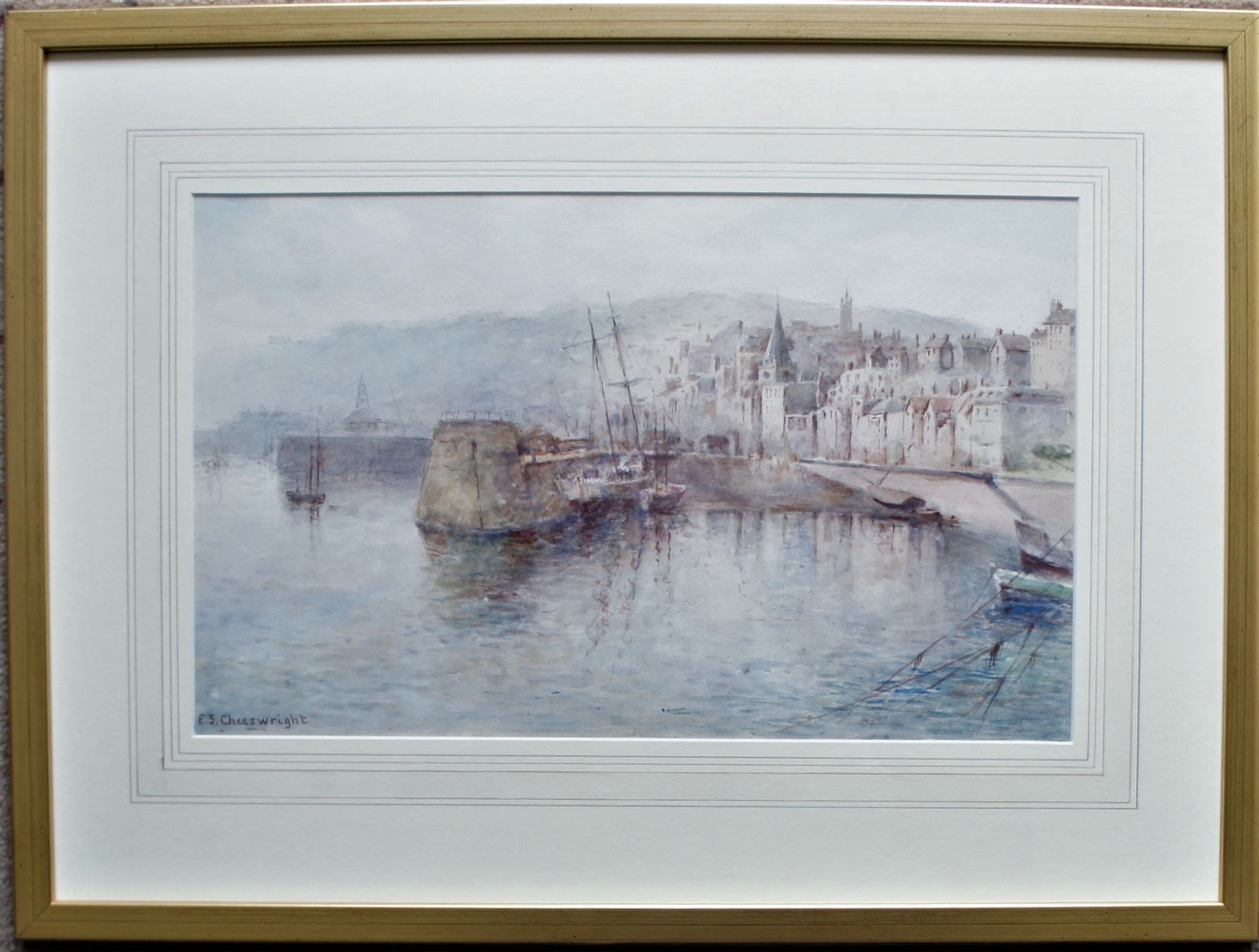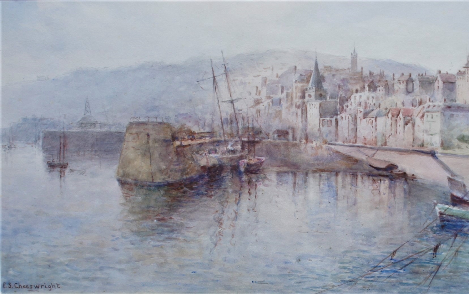 E.S.Cheeswright (British 1874-1977) The Careening Hard, Guernsey Harbour, watercolour signed lower left, 24 x 38 cm.