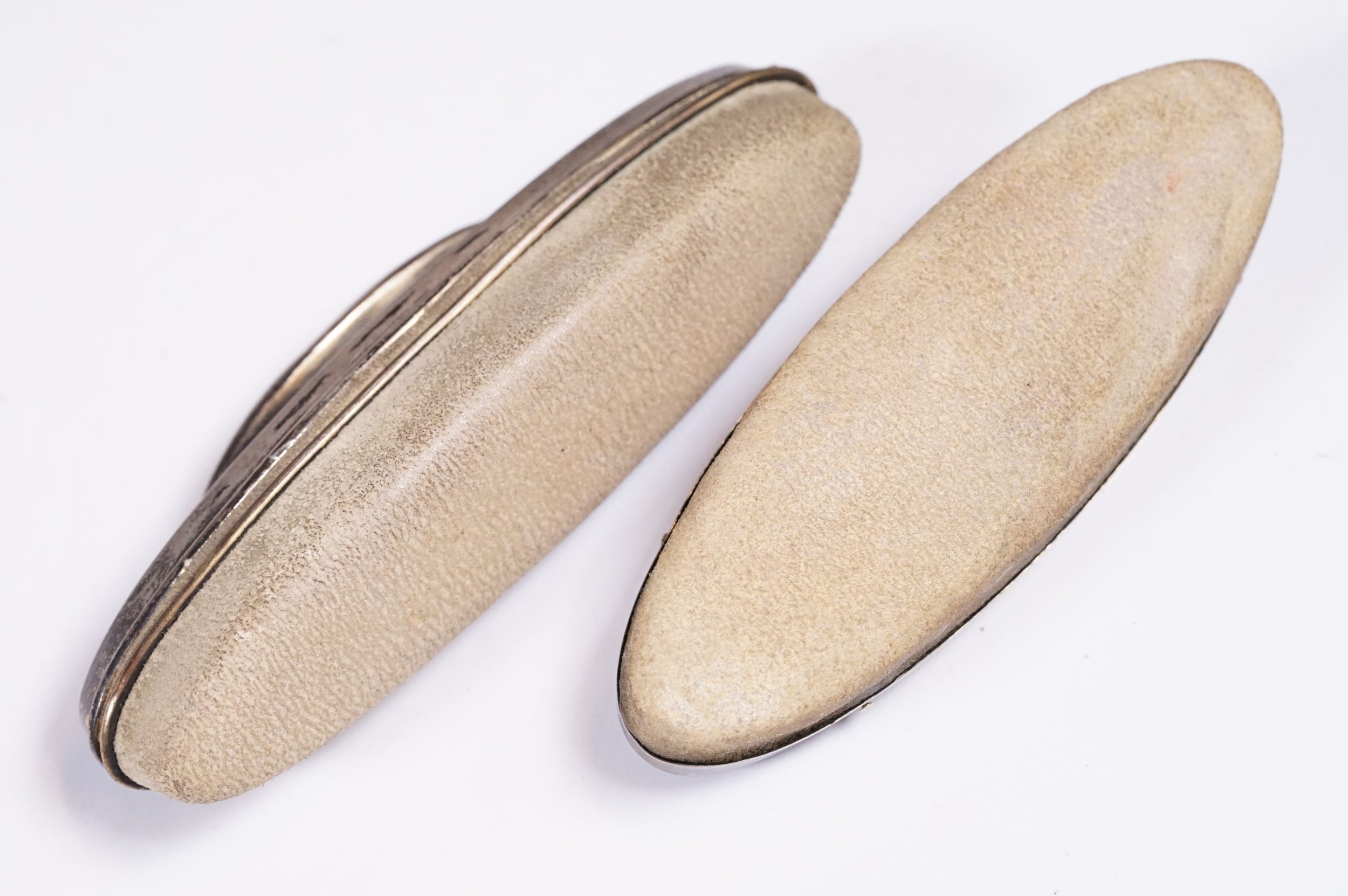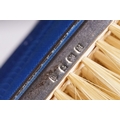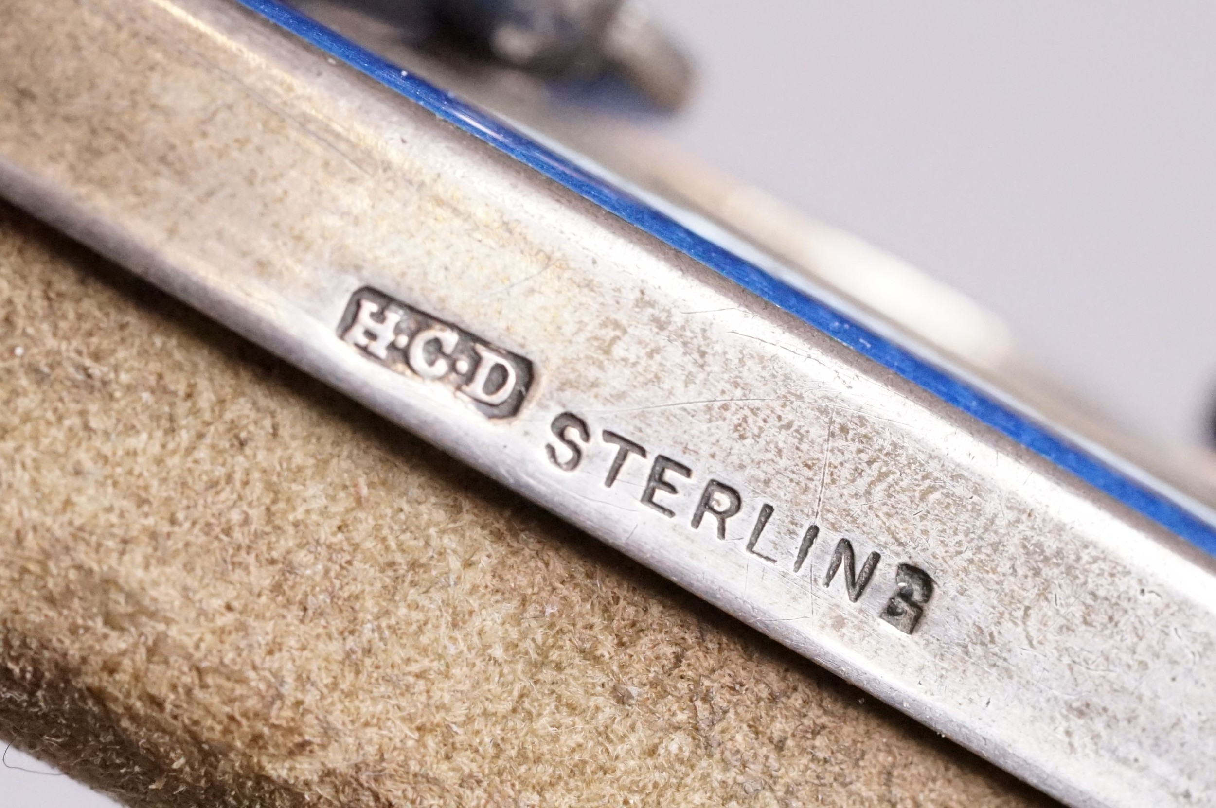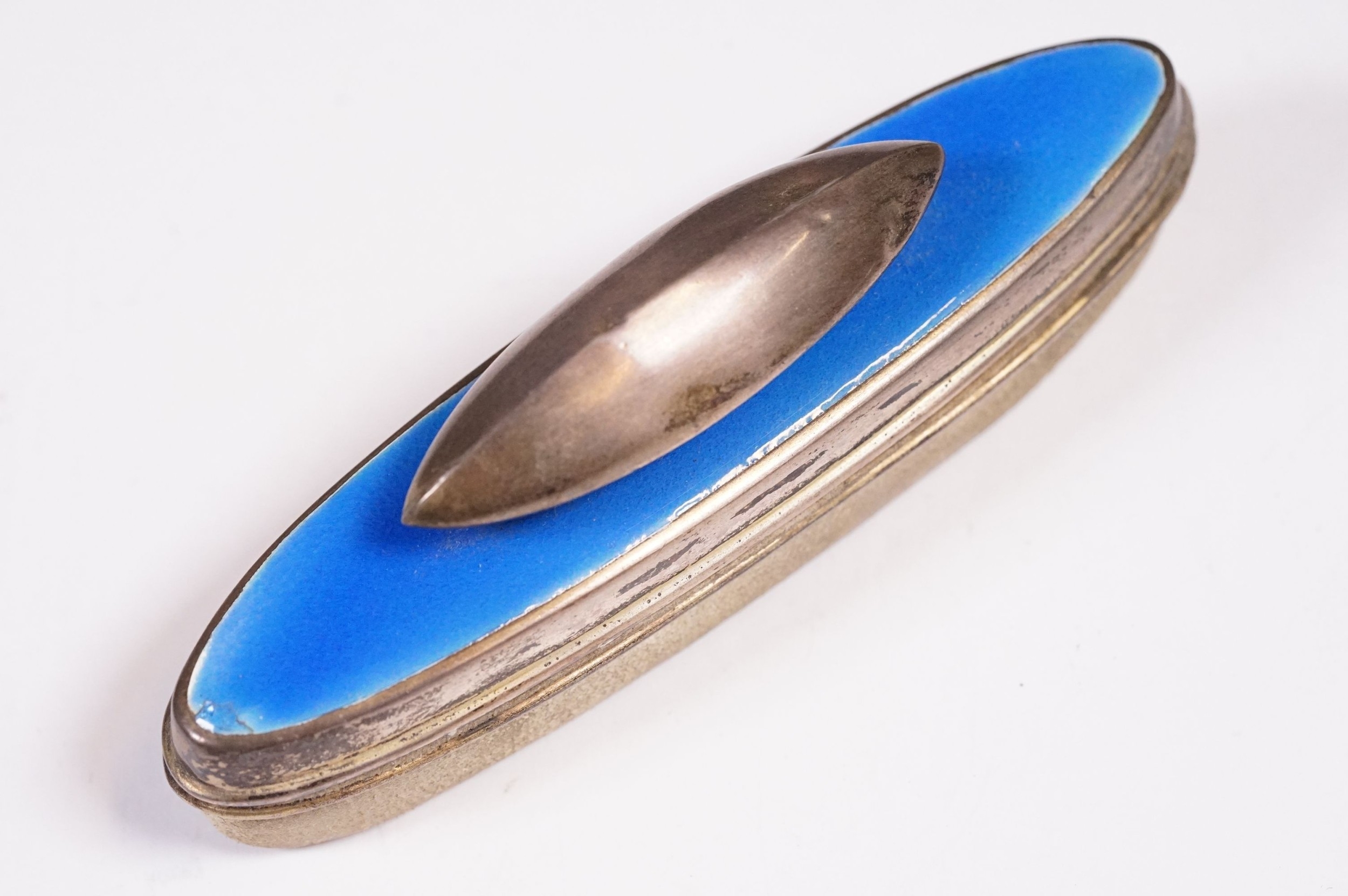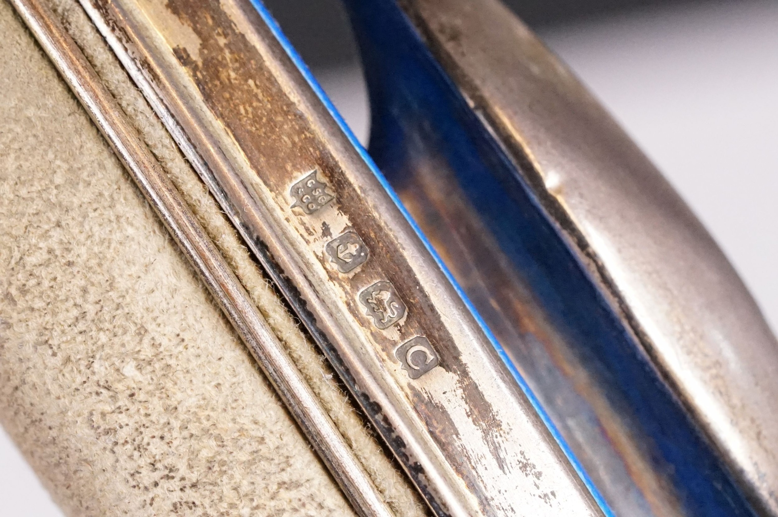 An Art Deco fully hallmarked sterling silver and blue guilloche enamel vanity set to include brush and nail buffers.
