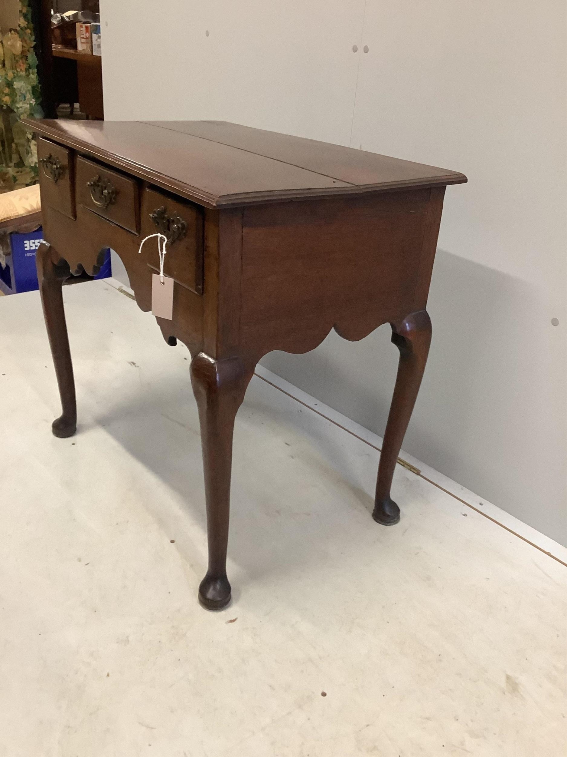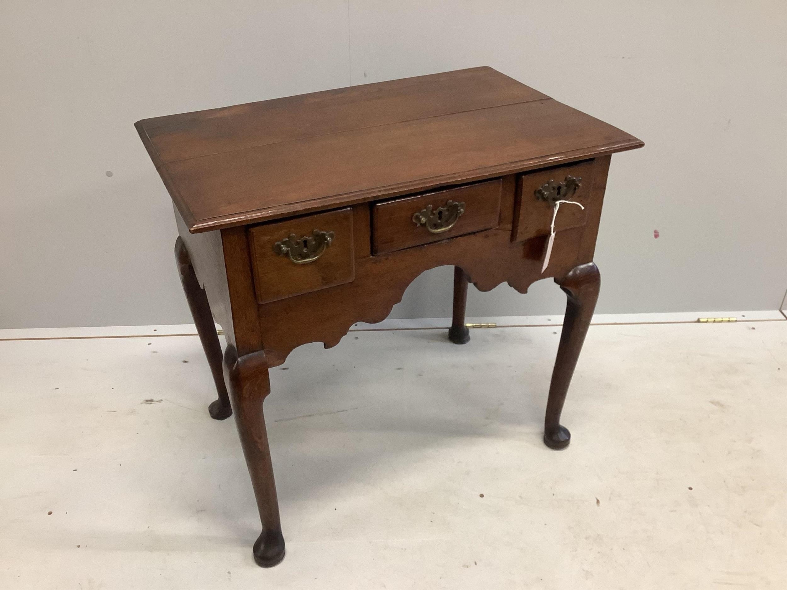 A George III and later oak lowboy, width 76cm, depth 48cm, height 72cm. Condition - fair