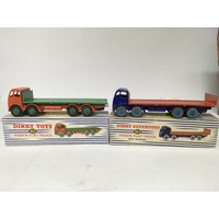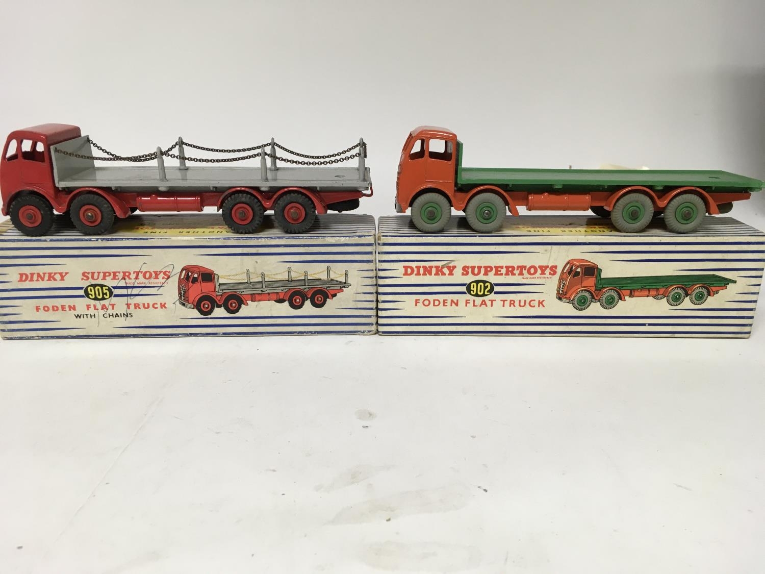 Dinky Supertoys, #902 Foden flat truck and #905 Foden flat truck with chains, boxed