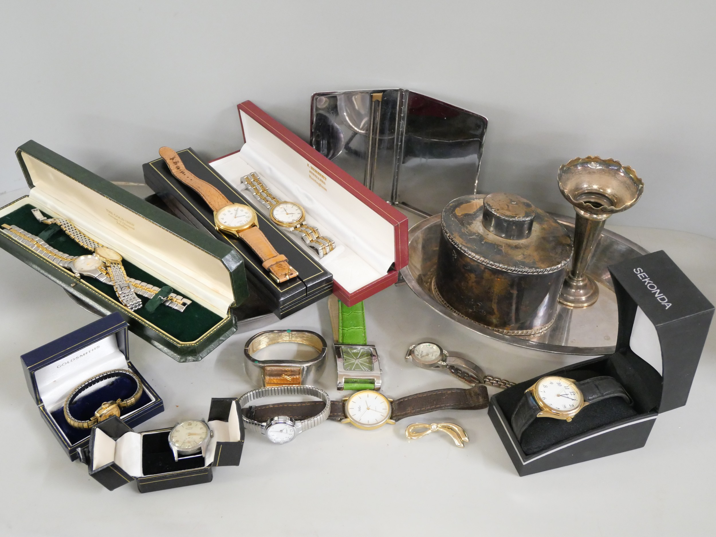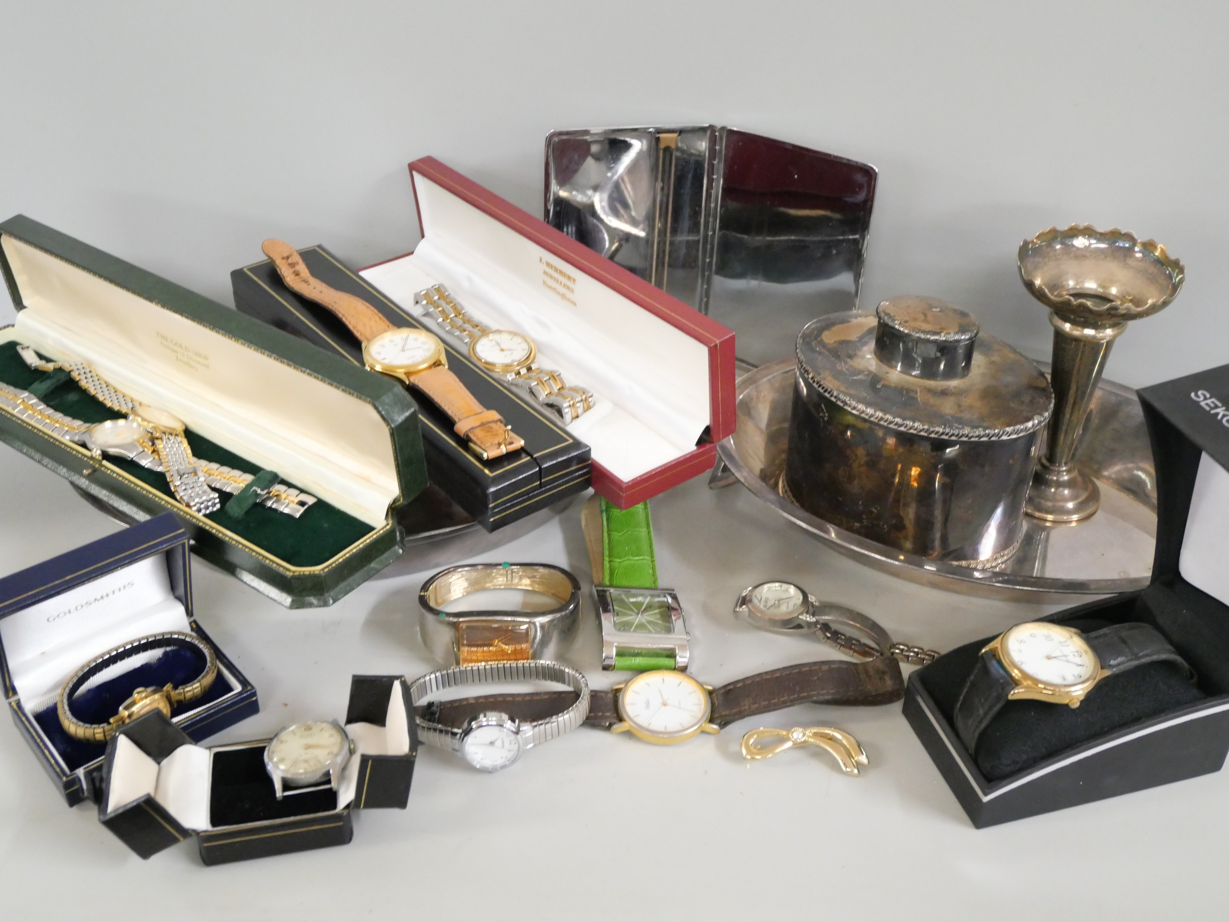 A collection of silver plate and wristwatches **PLEASE NOTE THIS LOT IS NOT ELIGIBLE FOR IN-HOUSE POSTING AND PACKING**