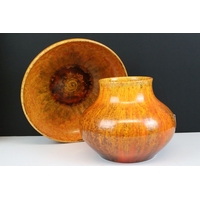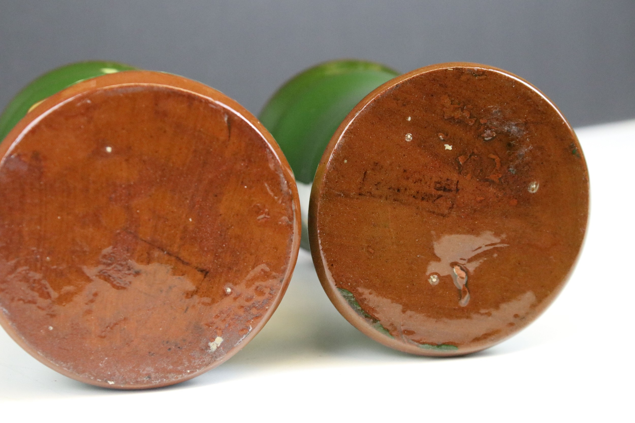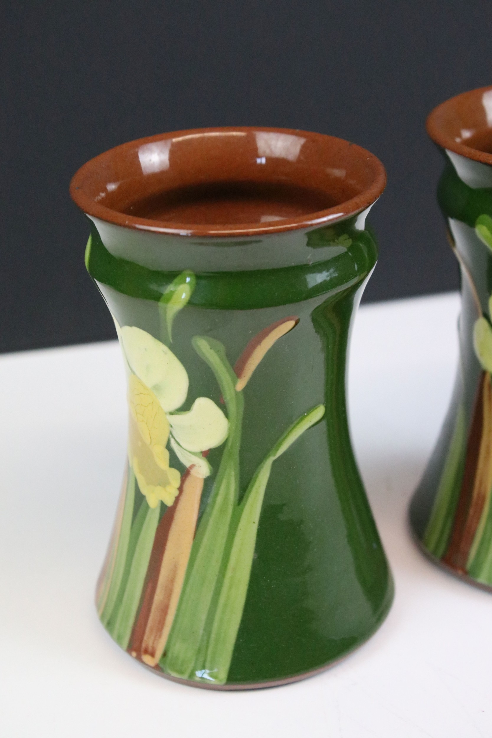 Pair of Torquay pottery vases, of waisted form painted with floral decoration, marked Watcombe to base, H 13cm