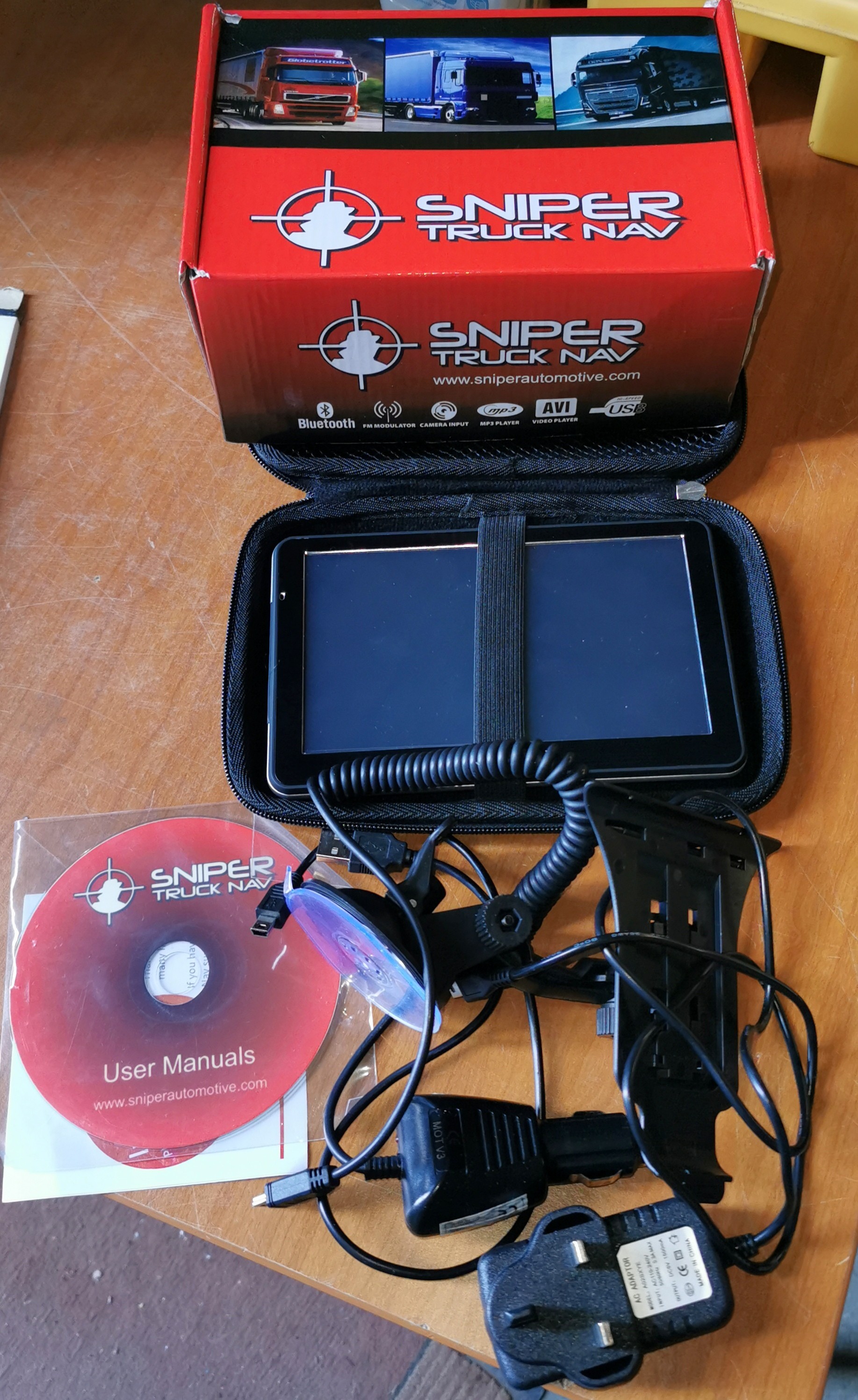Boxed Sniper truck nav with case and accessories in working order