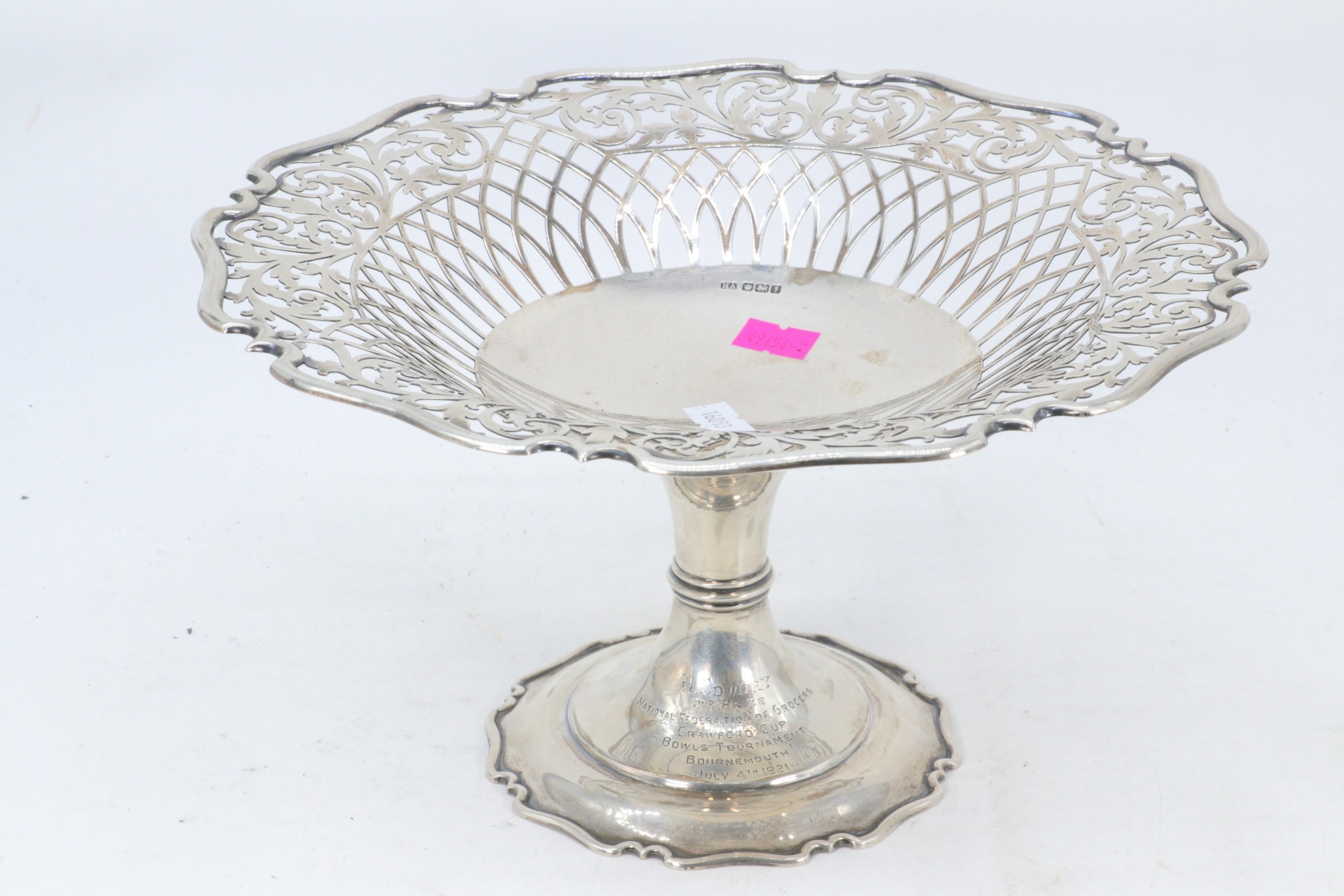 A silver pierced tazza with personal inscription 1921 (approx. weight 460g)