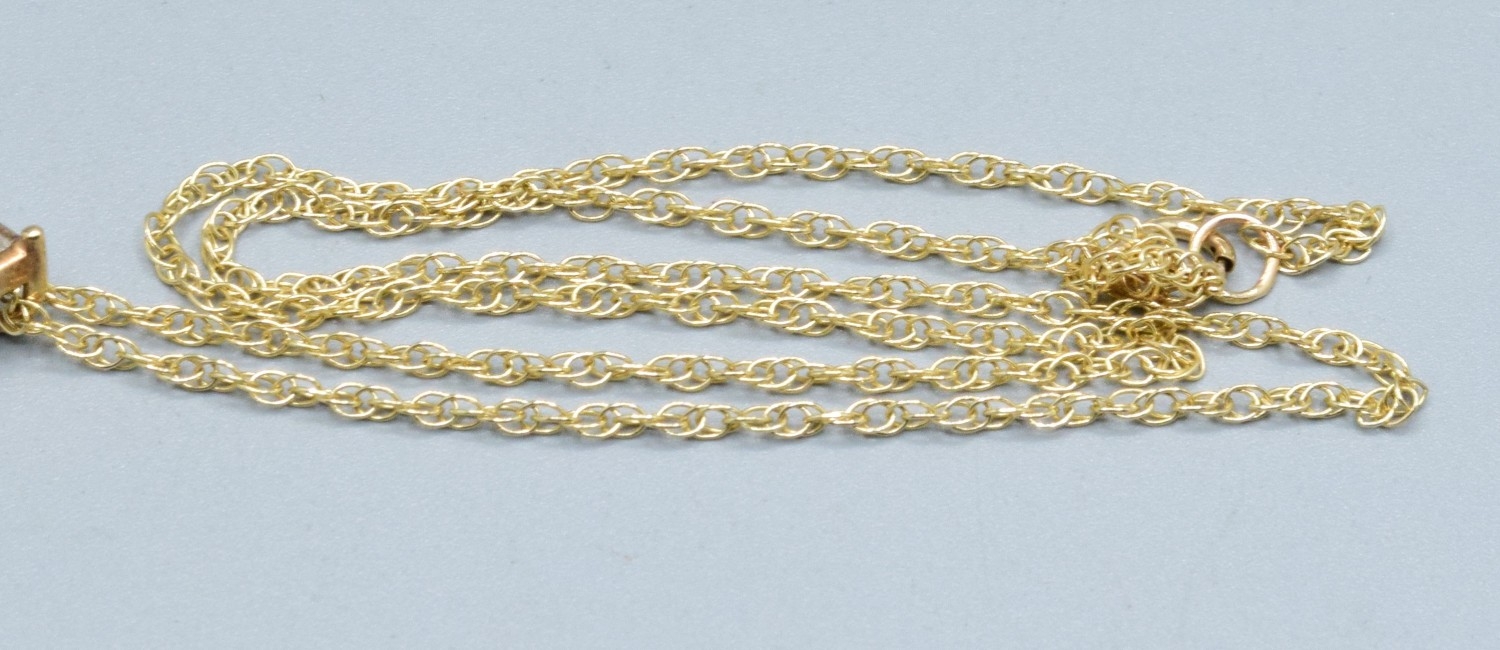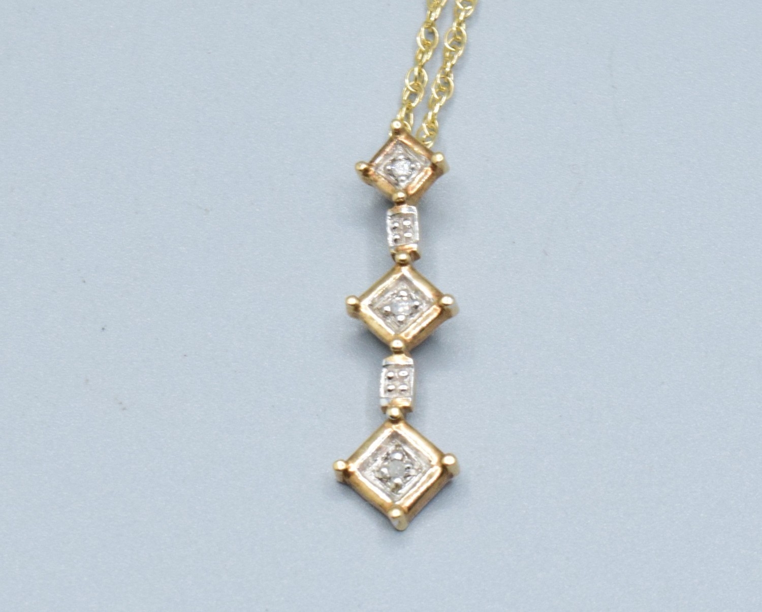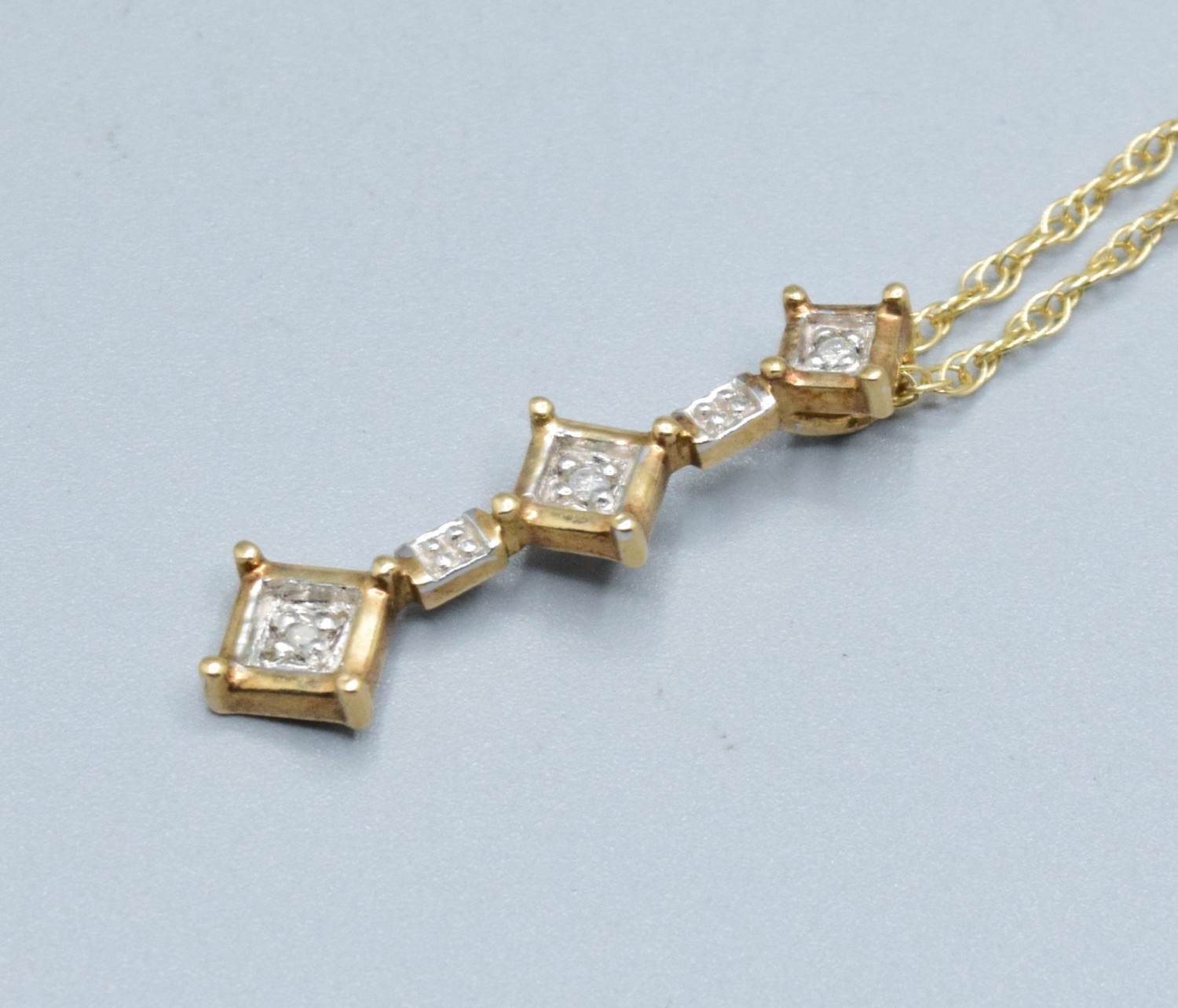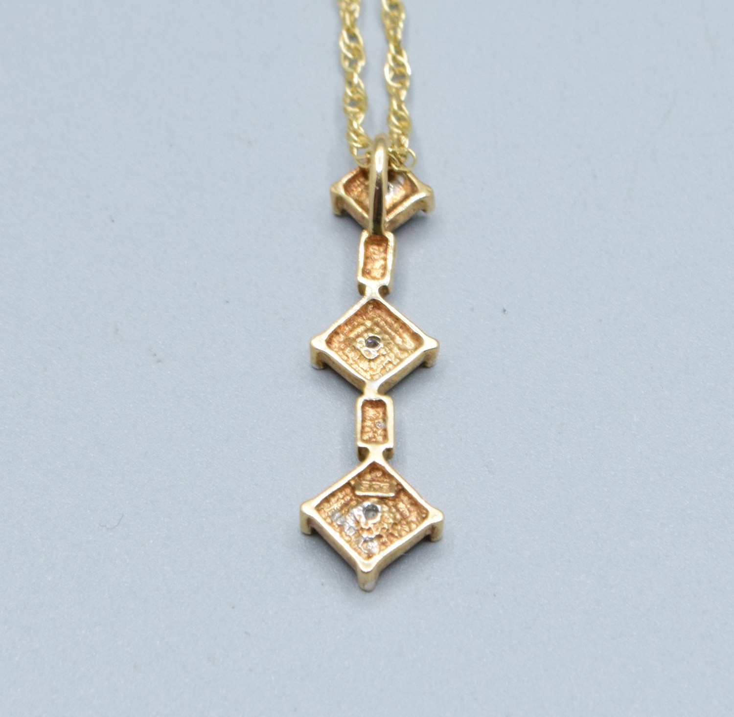9ct gold drop Diamond pendant necklace on a 9ct gold chain of 38cm pendant drop of 3cm 2.7grams