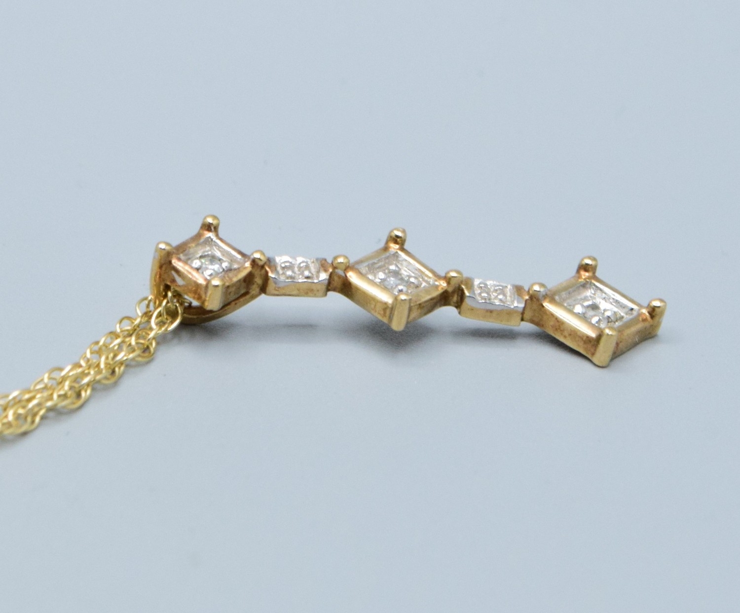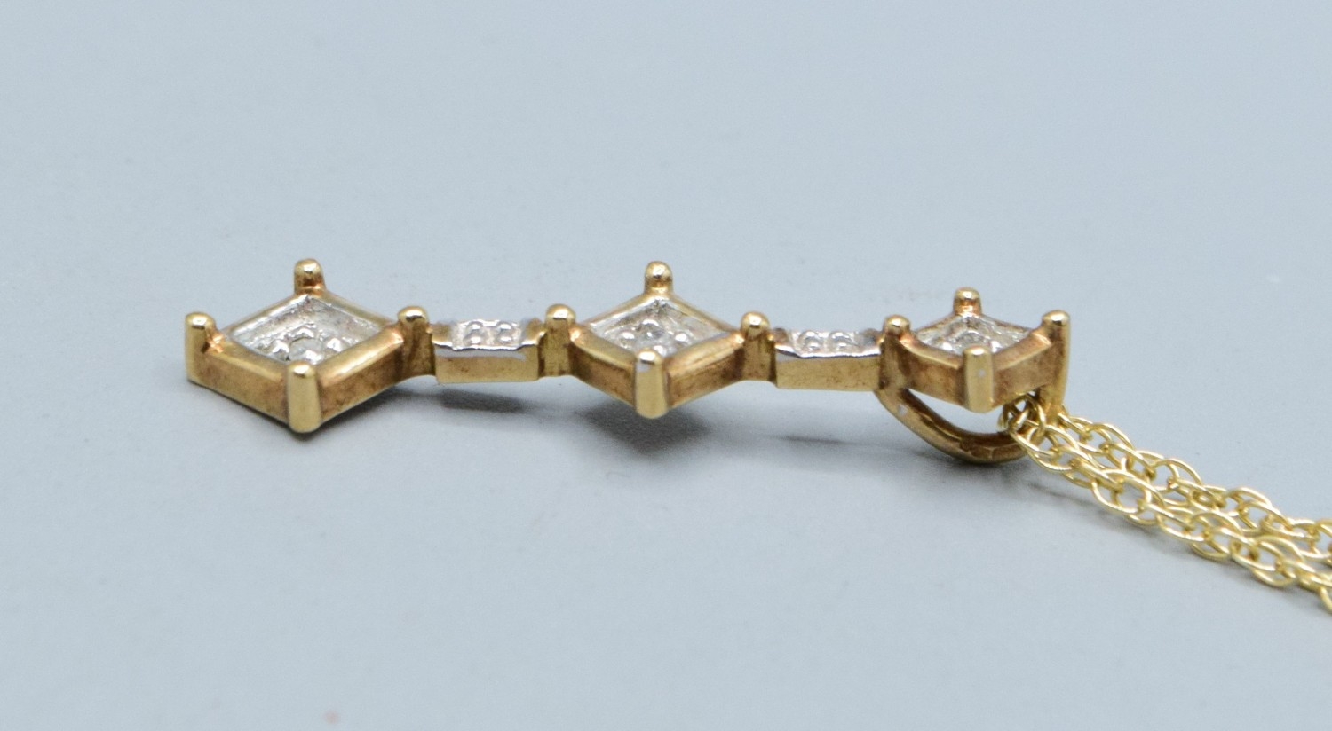 9ct gold drop Diamond pendant necklace on a 9ct gold chain o...