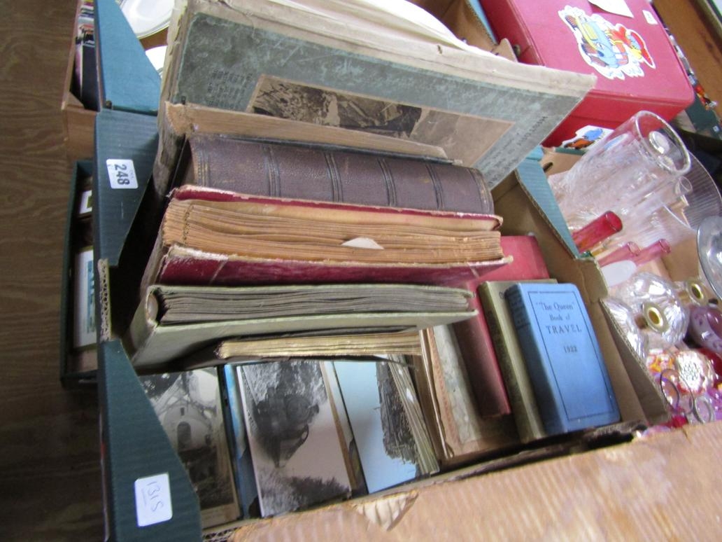 BOX OF POSTCARDS AND BOOKS