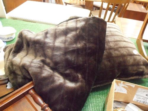 DARK BROWN FAUX FUR THROW AND CUSHION
