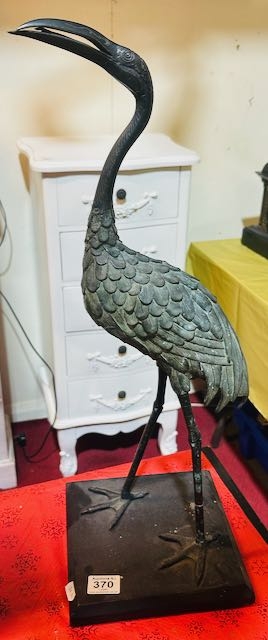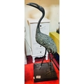 Large Heavy Bronze with Patina Mid Century Crane Statue - Appx 2' Tall