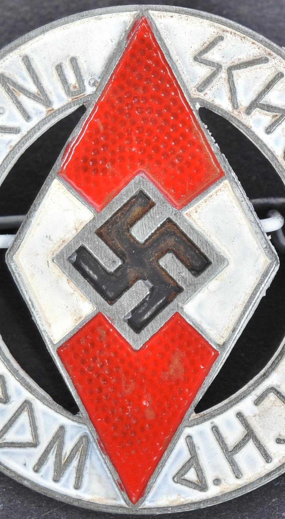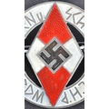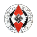 A WWII Second World War Third Reich Nazi German Girls Hitler Youth (BDM) achievement badge. The circular badge with central Hitler Youth rhomboid and a perimeter reading Glaube und Schönheit (Belief and Beauty).