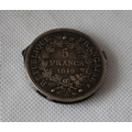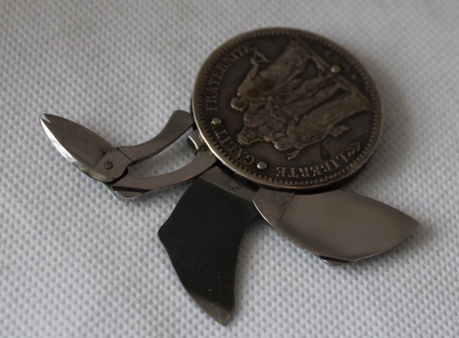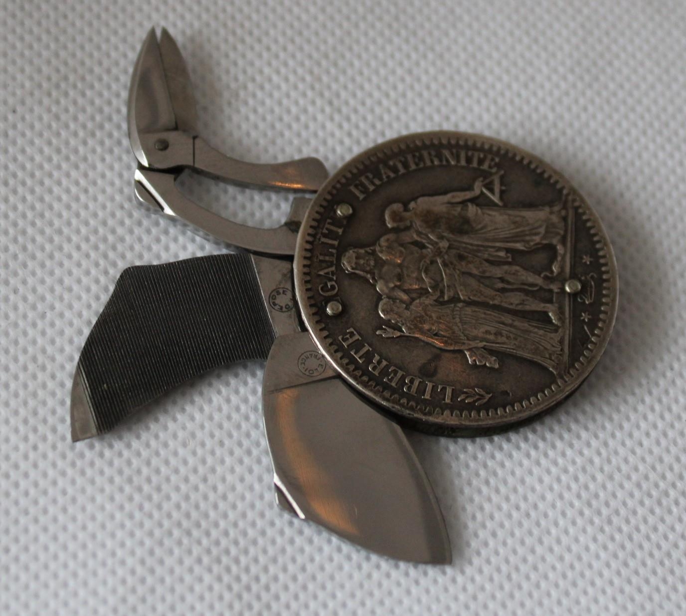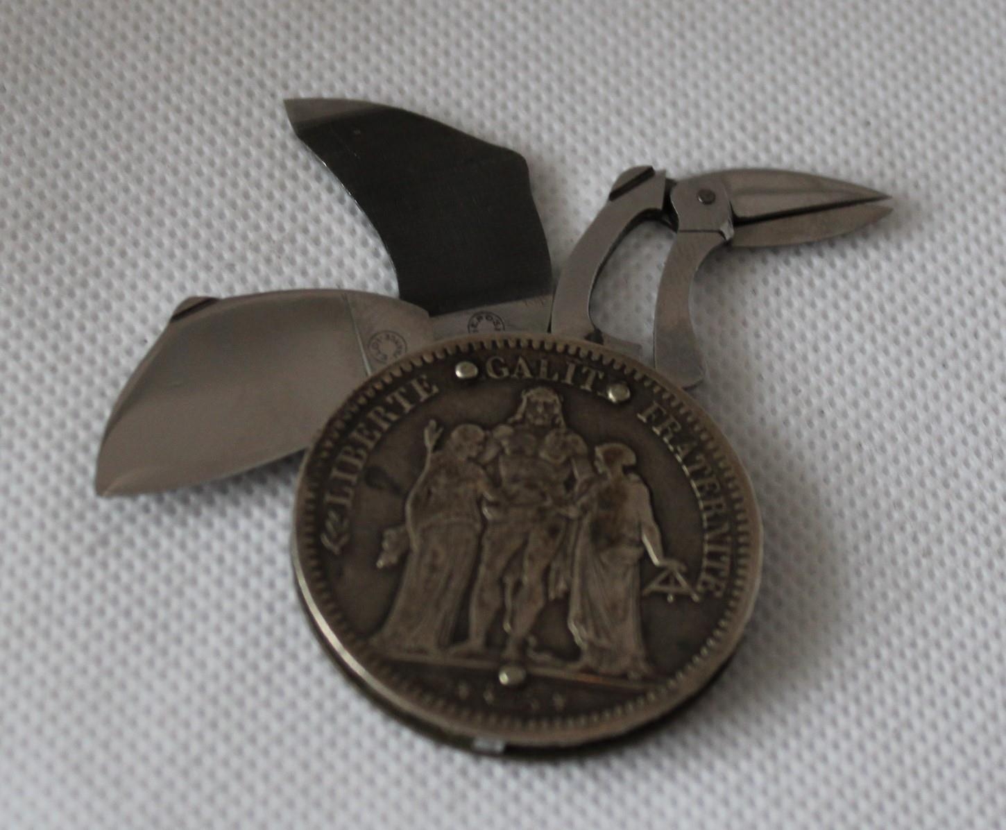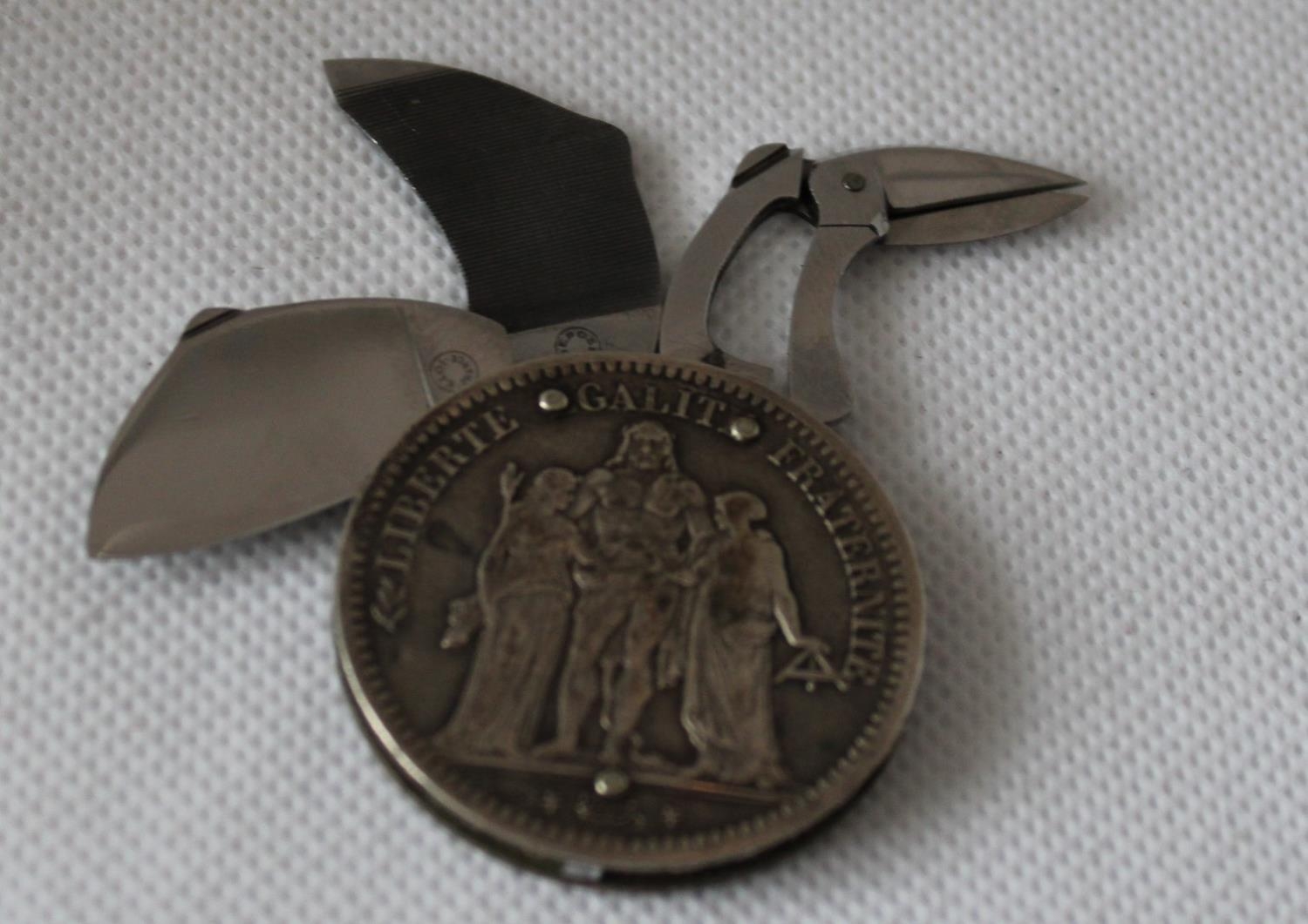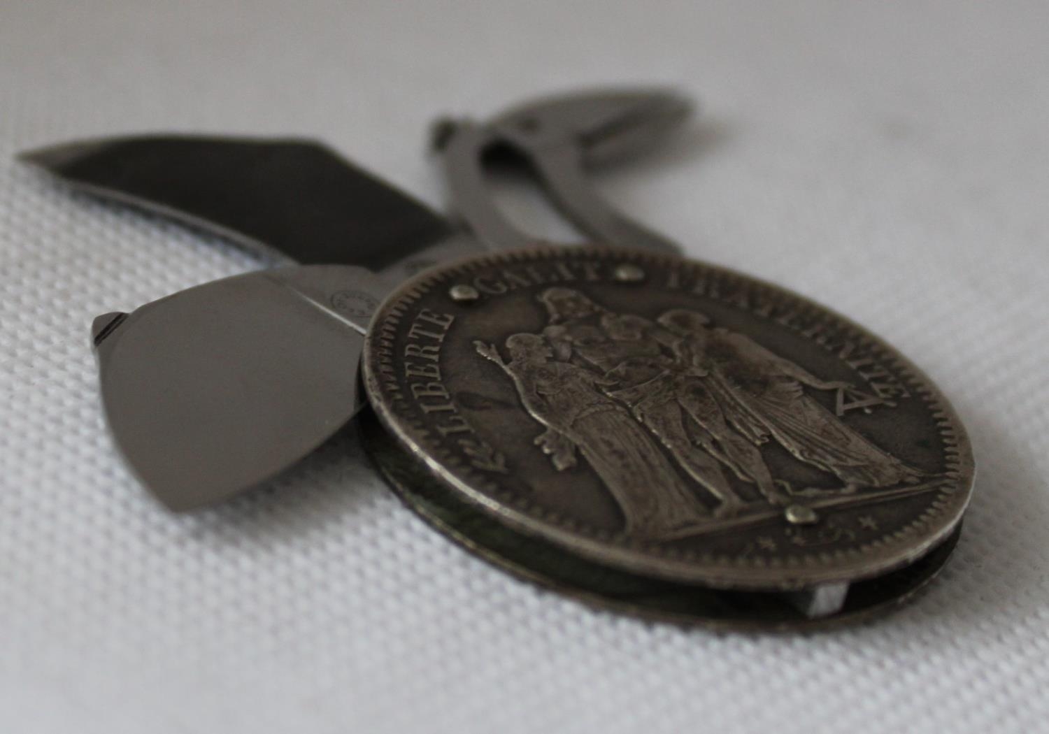 1849 French 5 Francs Coin - Turned Penknife Tool with Scissors and File