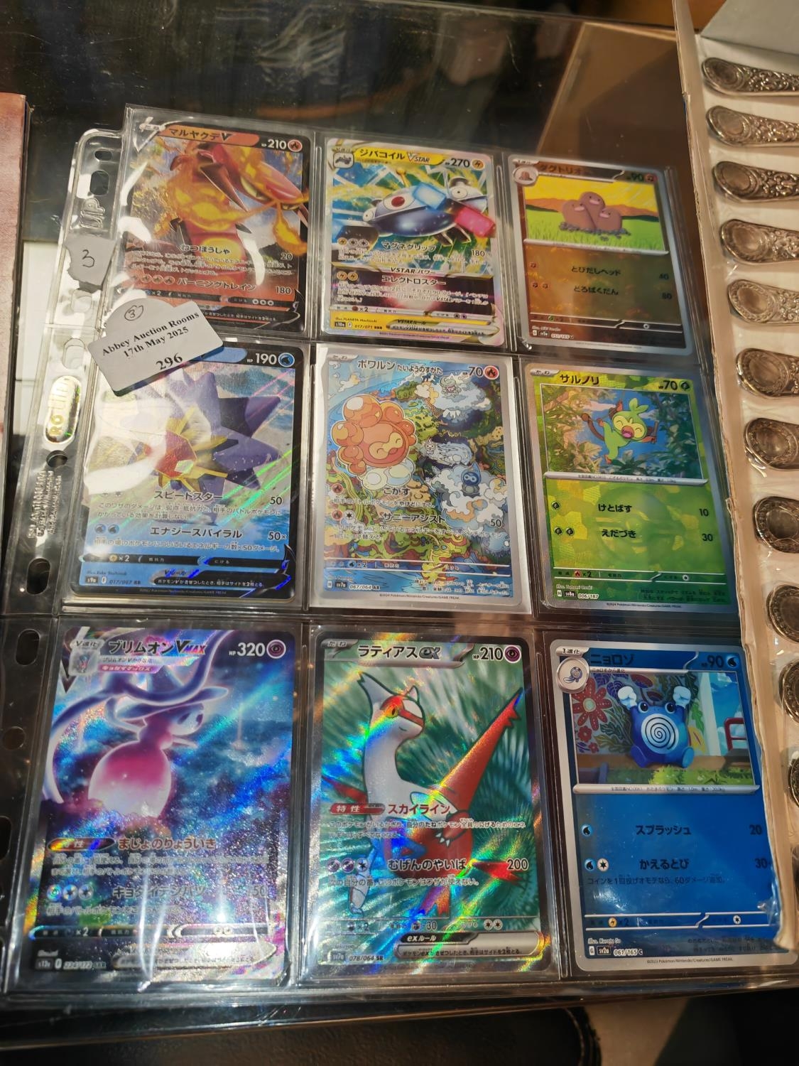 Japanese Pokemon Cards 12 In Total 2 X Full Art V. Vmax, Vstar And Holocards Box Plus Top Loader Card Holders