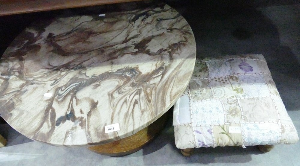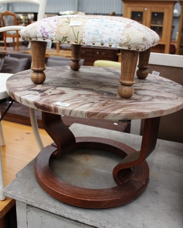 Circular Marble Coffee Table & Vintage Footstool. Approx Diameter Of Coffee Table 69cm