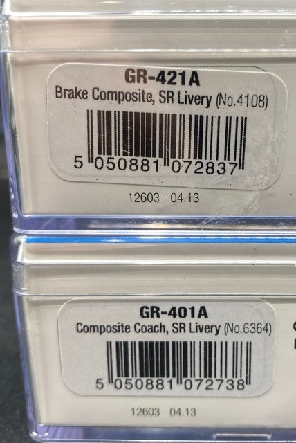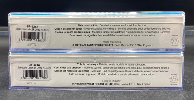 Southern Railway livery - Peco GR-401A Composite Coach No.6364; GR-421A Brake Composite No.4108 and GR-535 Freelance 4 Wheel Brake Coach w/Buffers