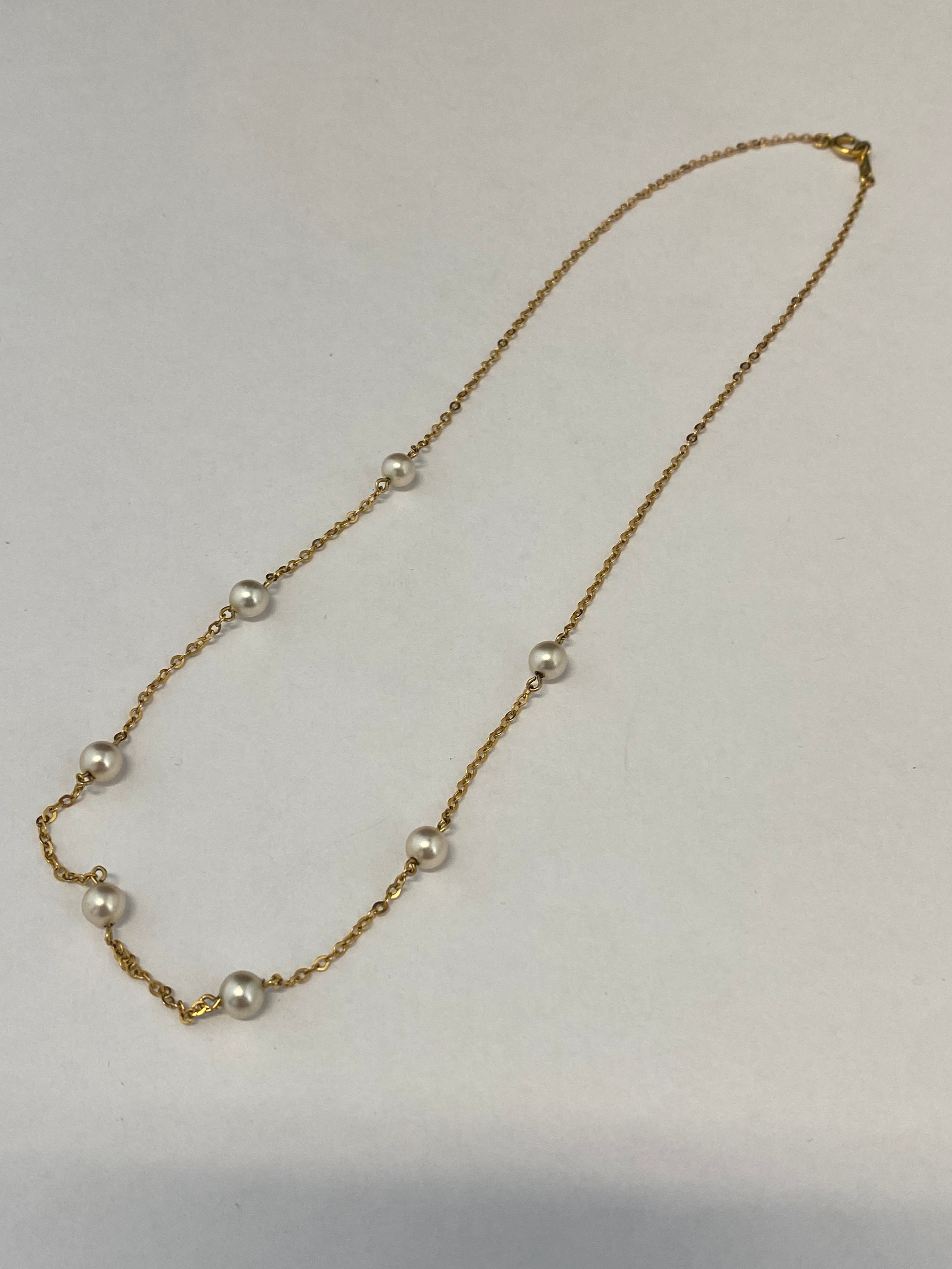 A 9ct. gold necklace with pearl spacers