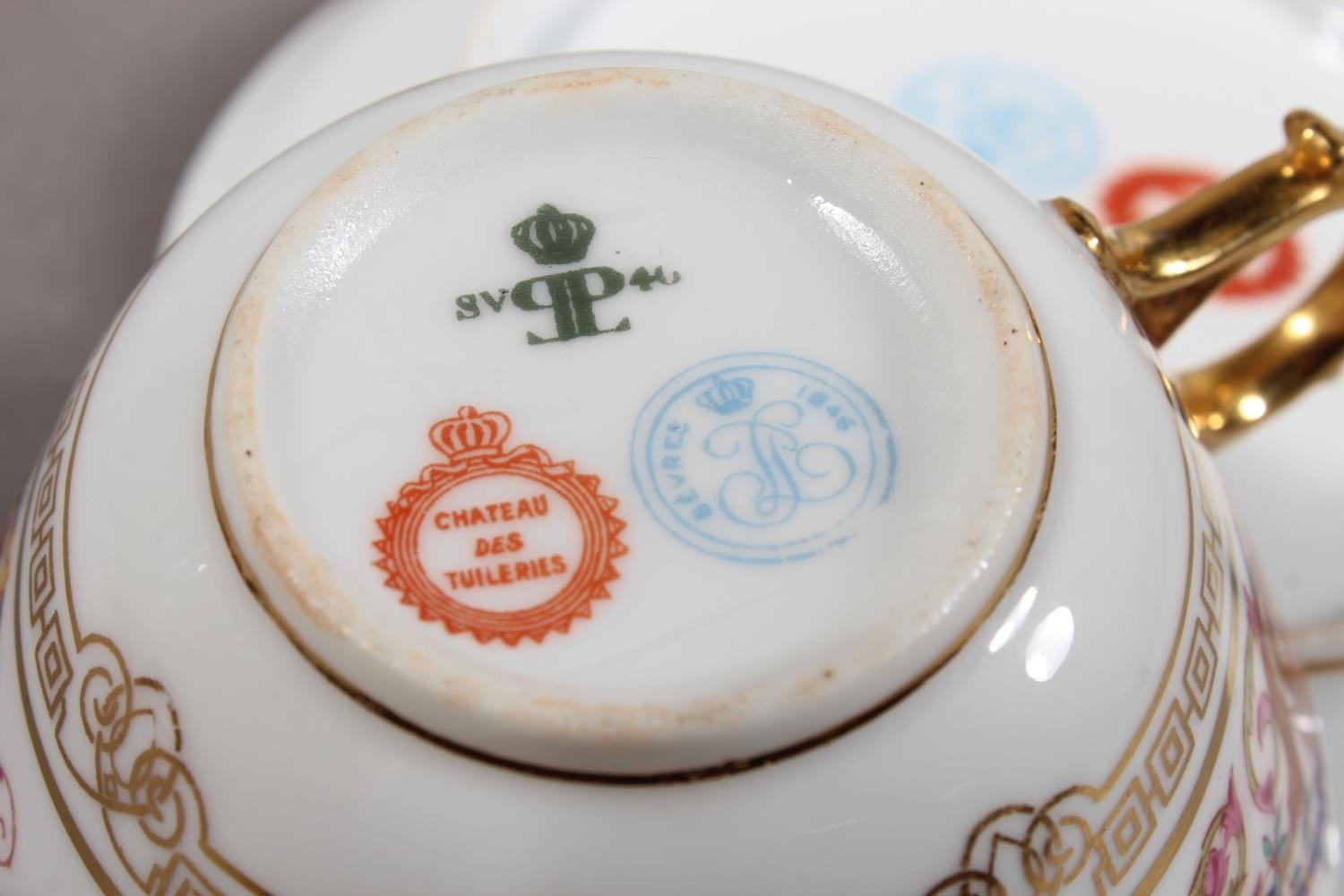 Sevres cabinet cup and saucer with Chateau Des Tuileries stamp to the base.