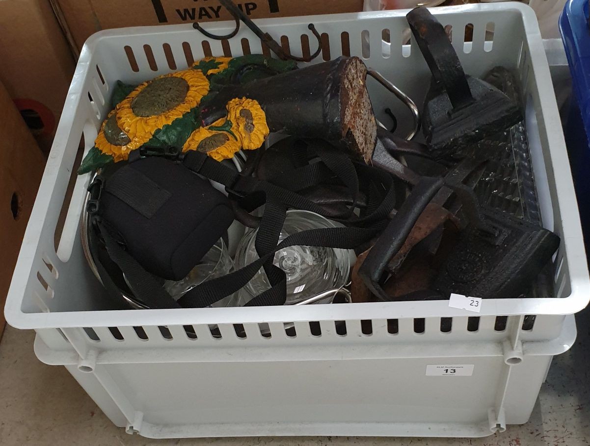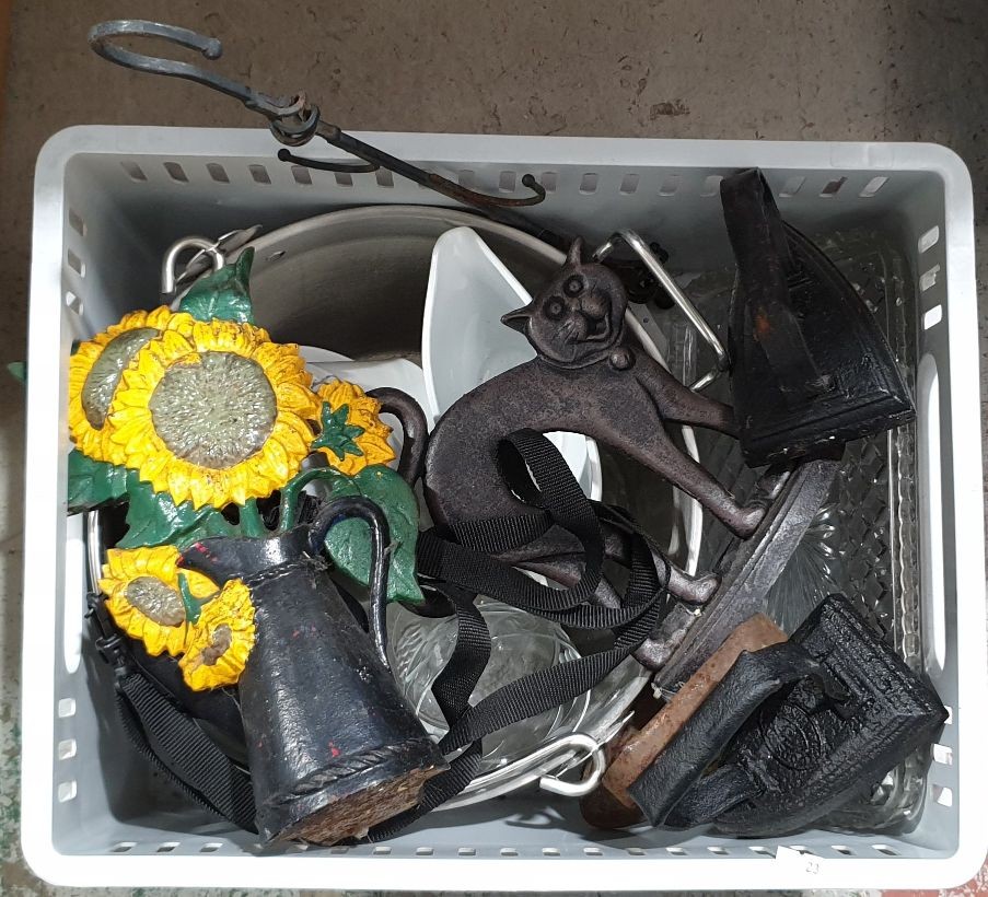 A box including cast iron door stops. No in house shipping, please organise collection or your own shipping.