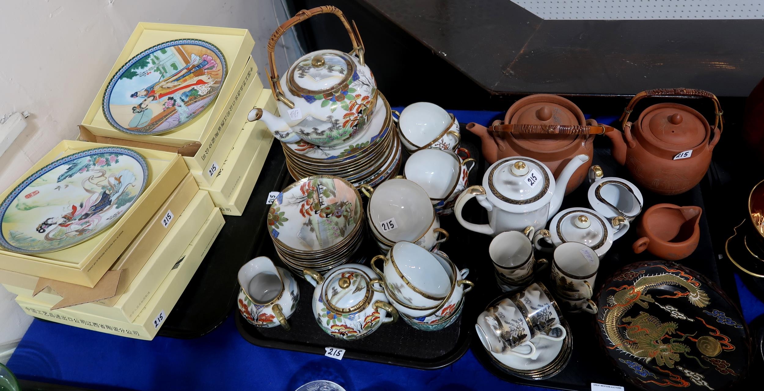 Japanese eggshell tea service, assorted Chinese themed wall plates, terracotta tea service etc