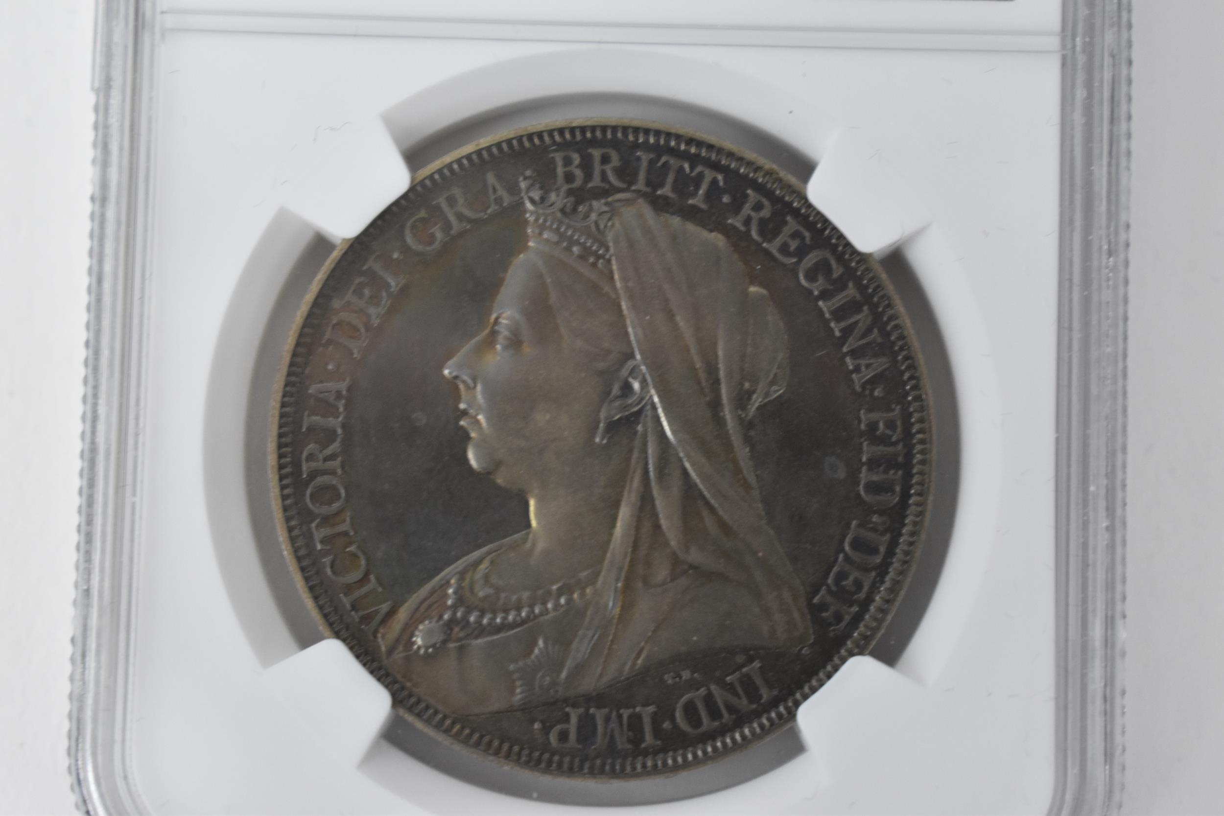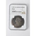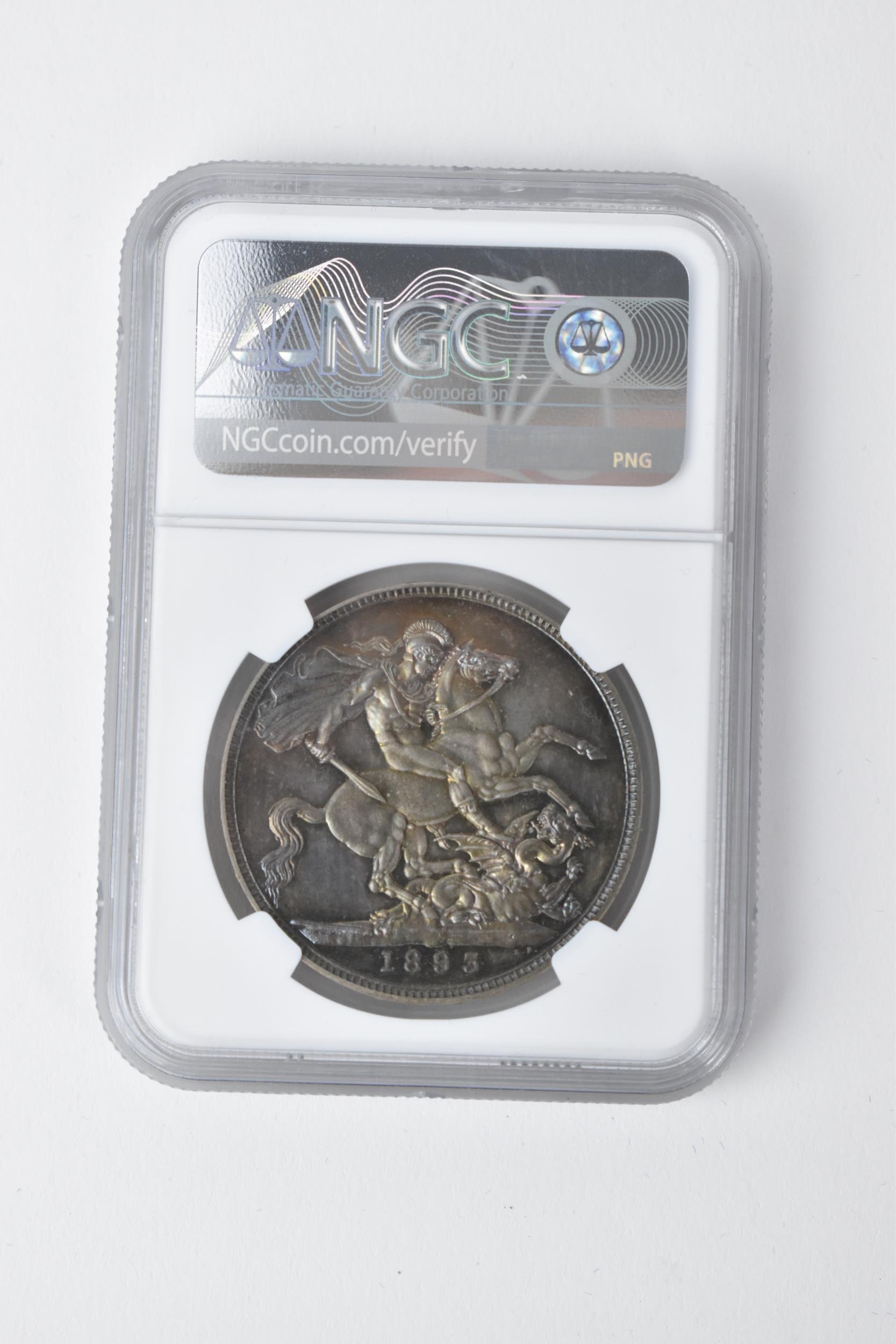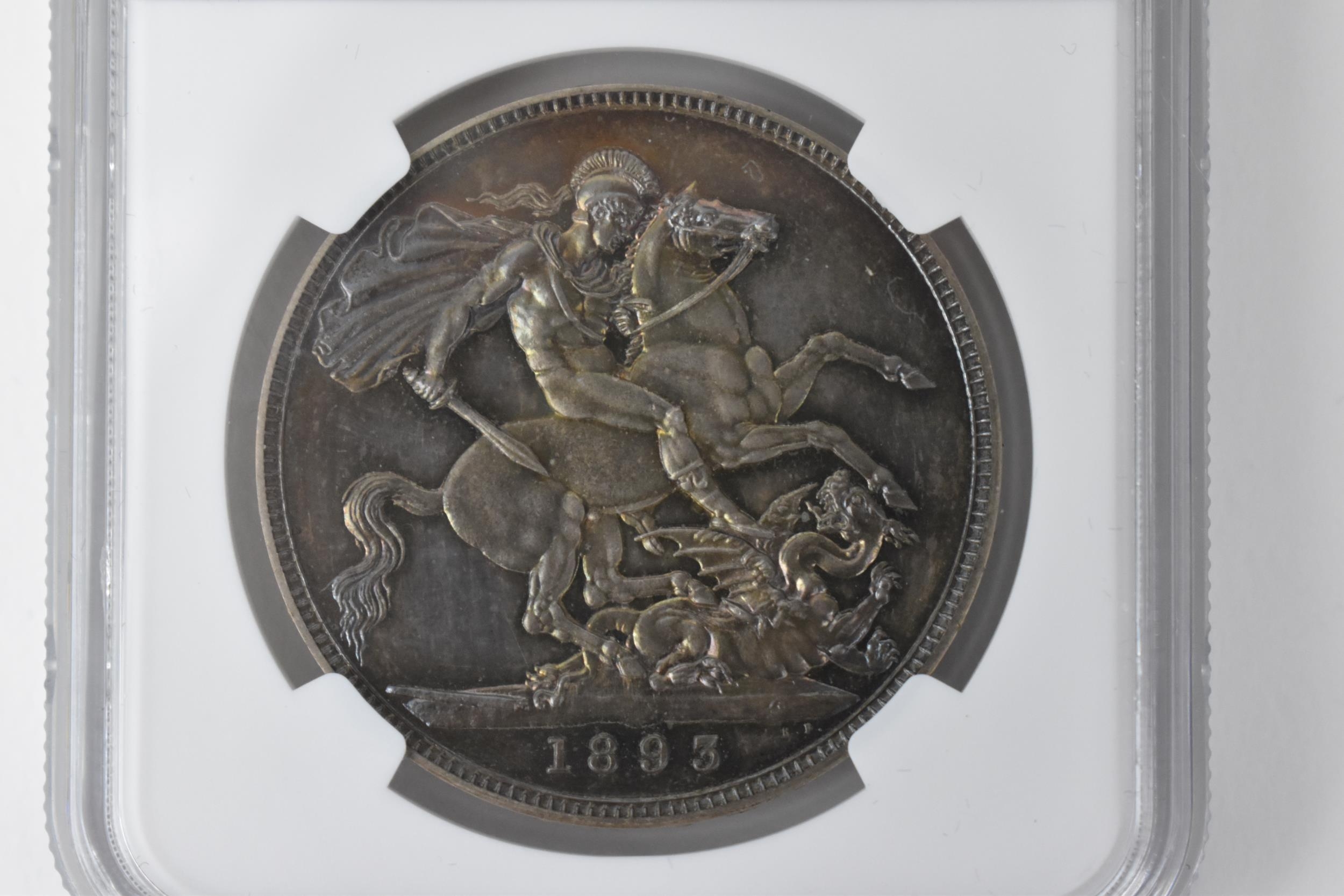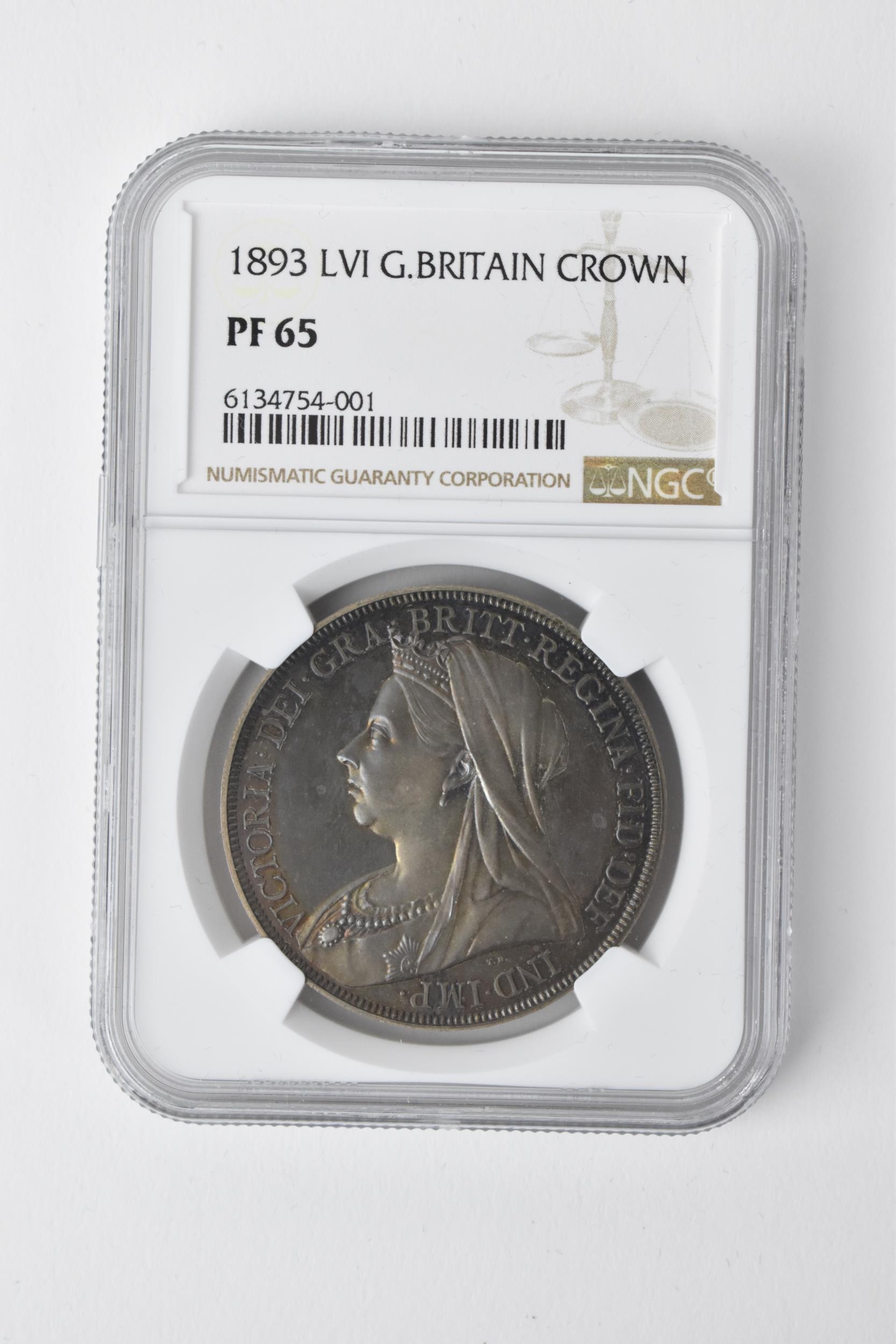 United Kingdom - Victoria (1837-1901) Crown, dated 1893, 3rd portrait, crowned and veiled bust 'Old Head', Queen Victoria, left, VICTORIA.DEI.GRA.BRITT.REGINA.FID.DEF.IND.IMP./. St George slaying the dragon, right, in secure plastic holder, graded NGC PF 65, certification number 6134754-001