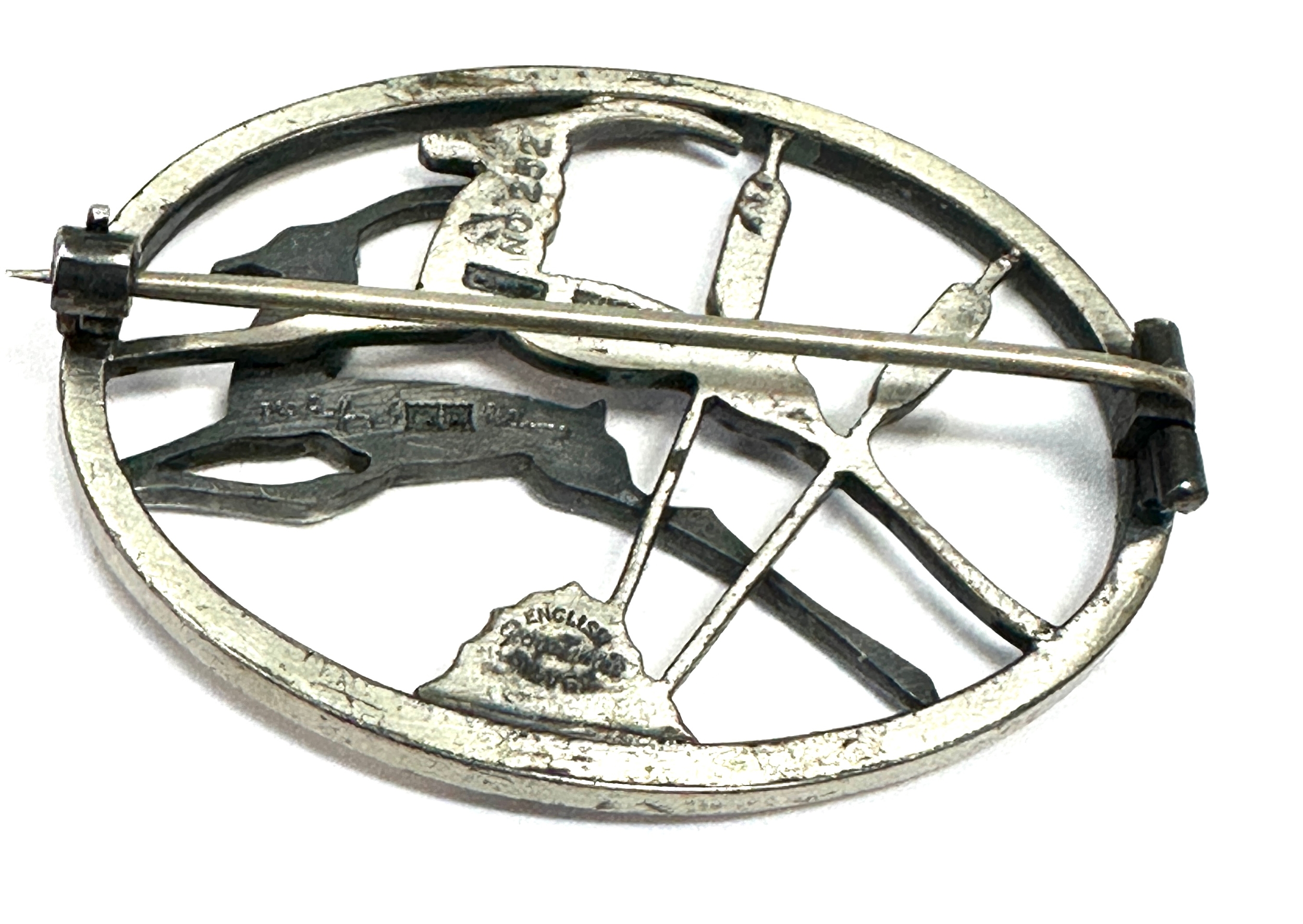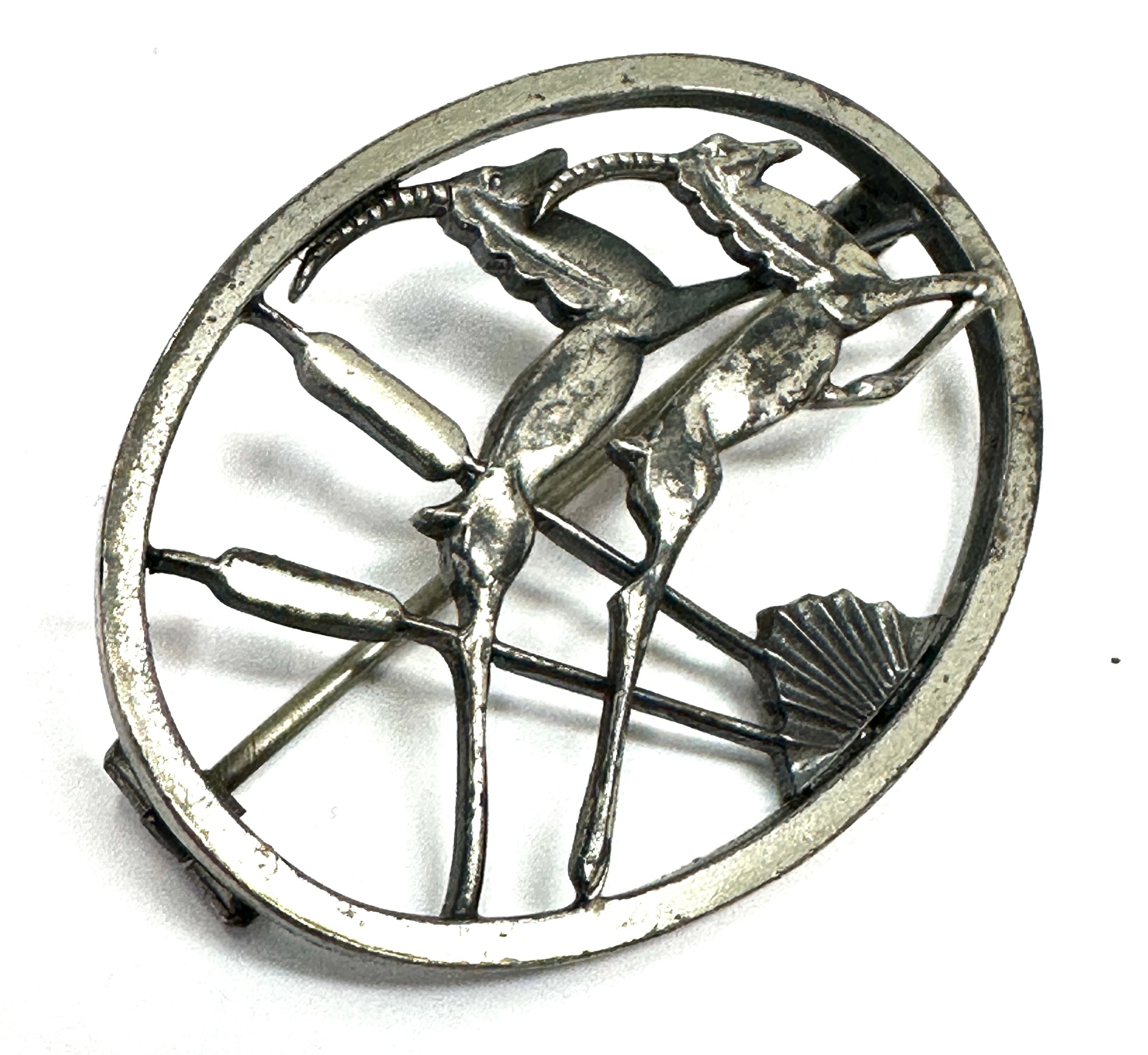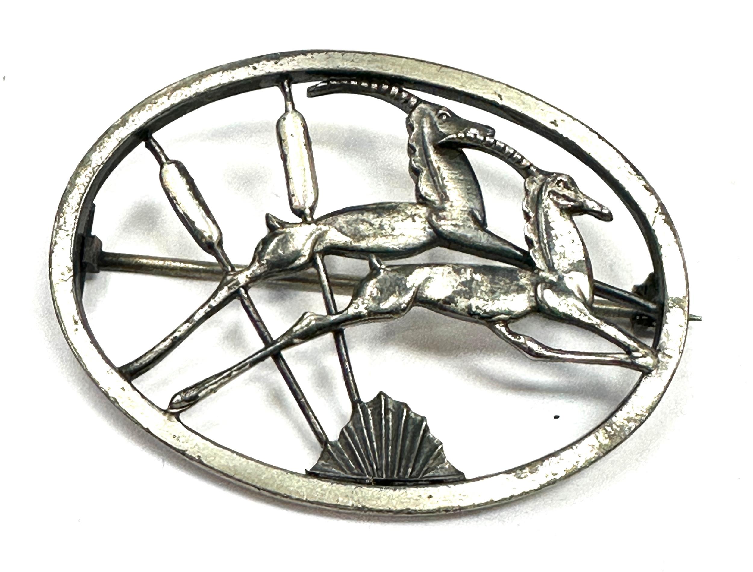 Vintage George Tarratt & Geoffrey G Bellamy silver leaping gazelles brooch. No 252