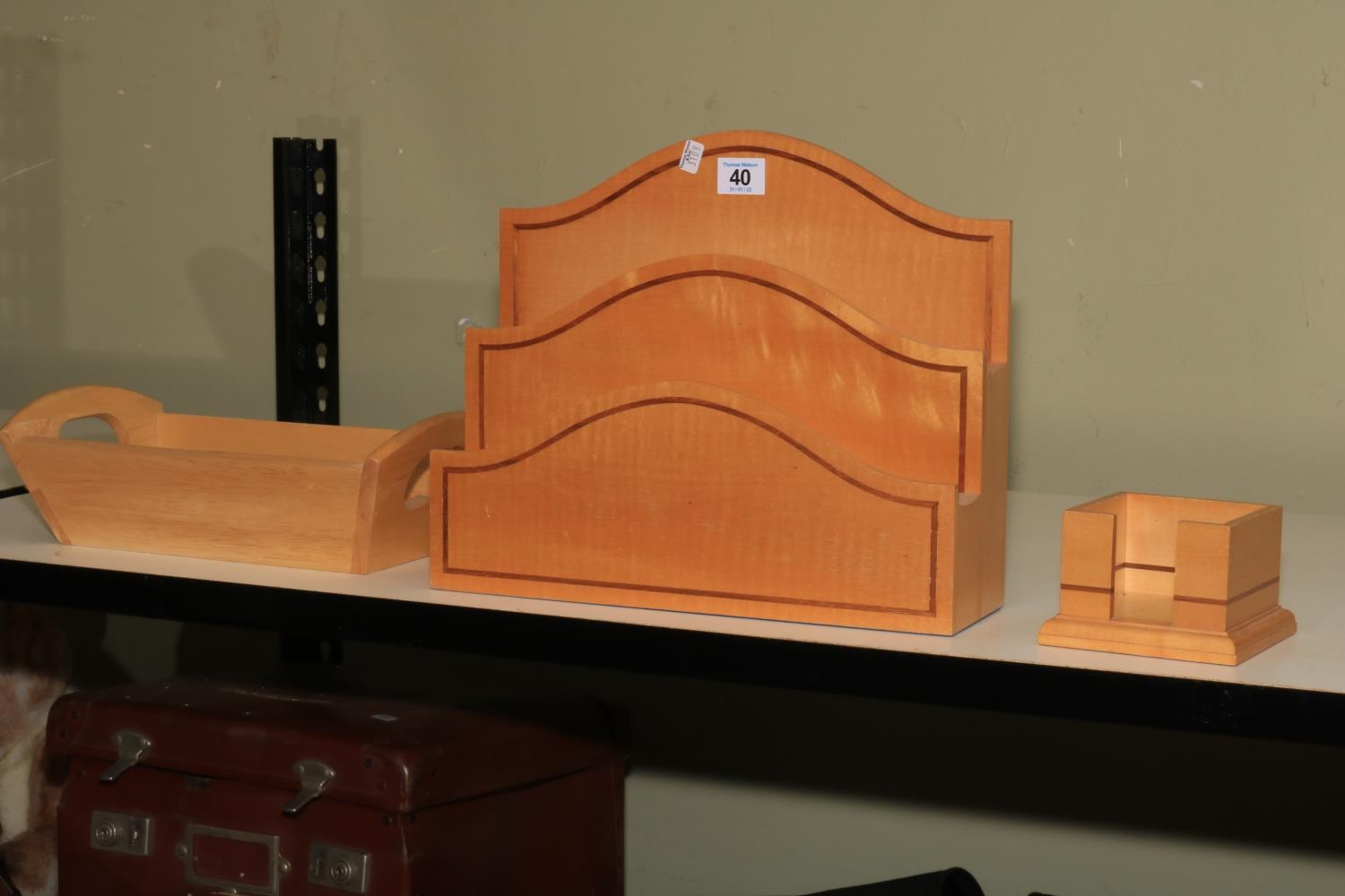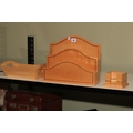David Linley 'Dunhill' letter rack and notes container, together with another wooden stationery rack.