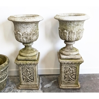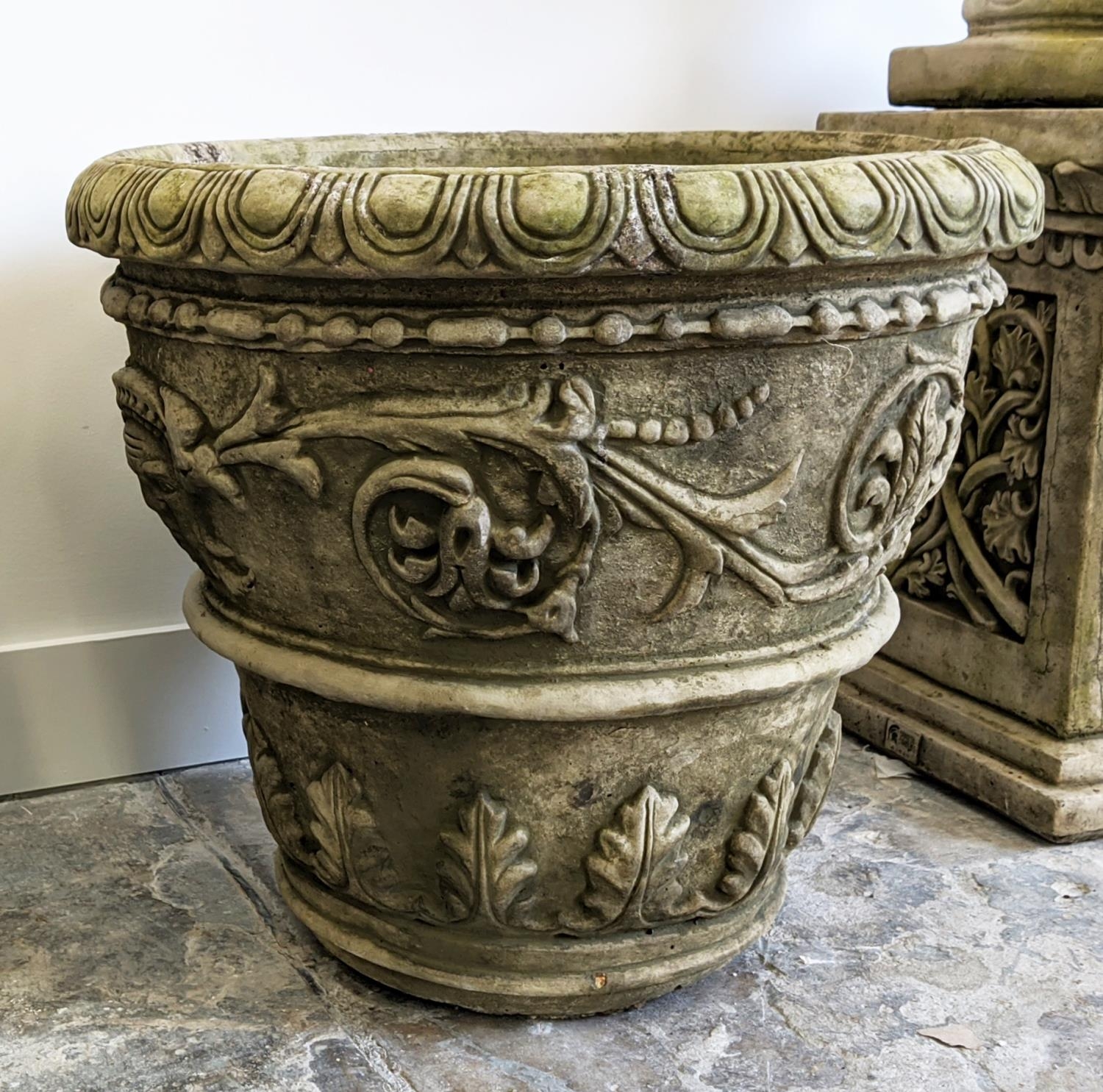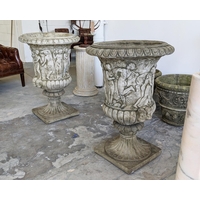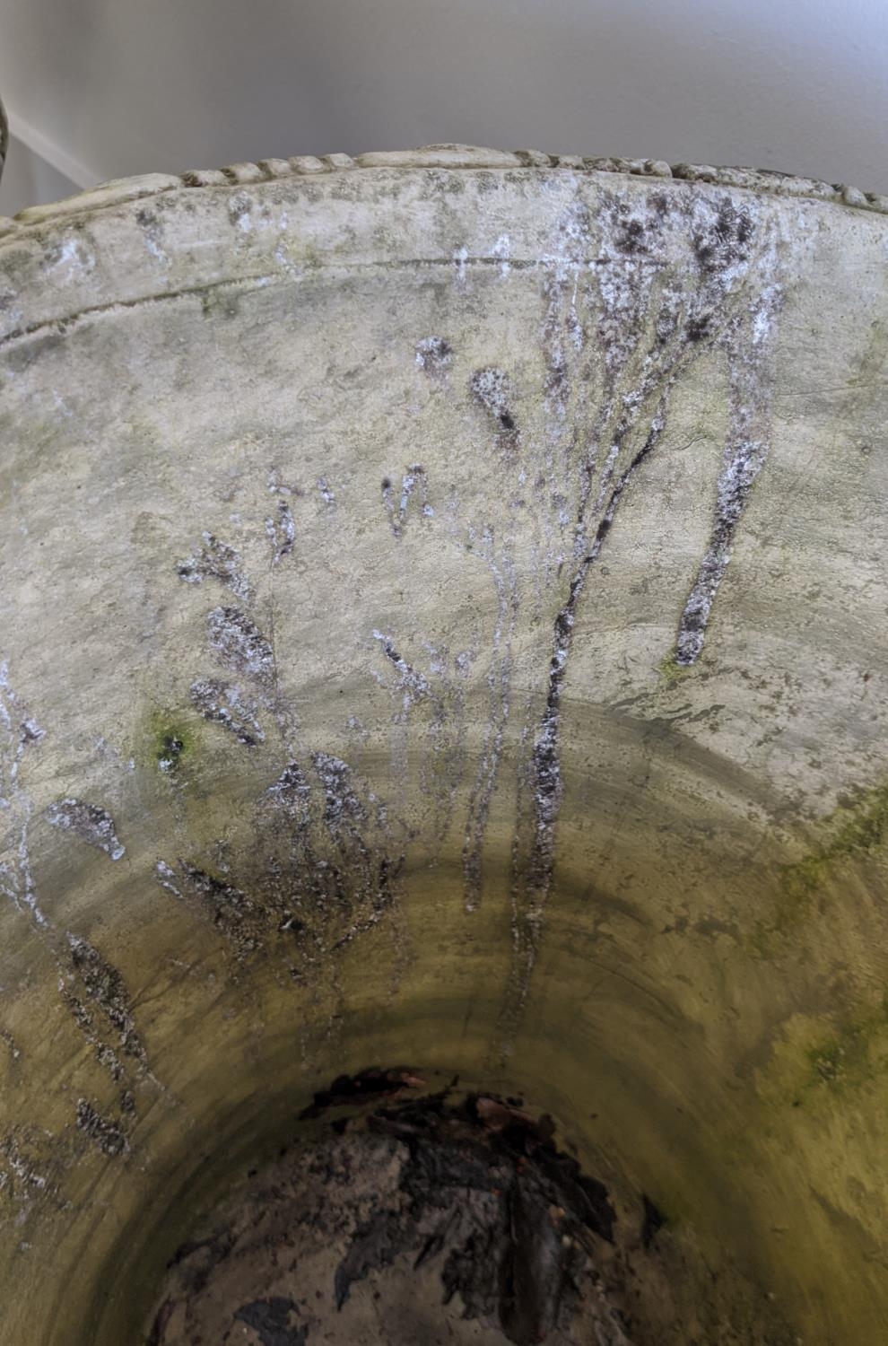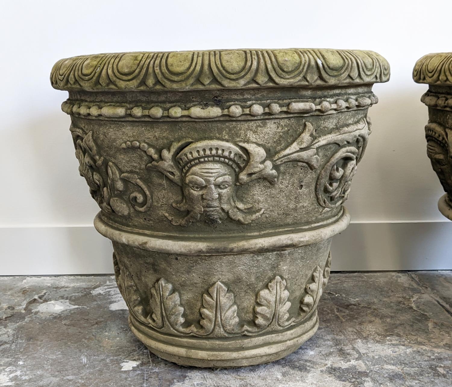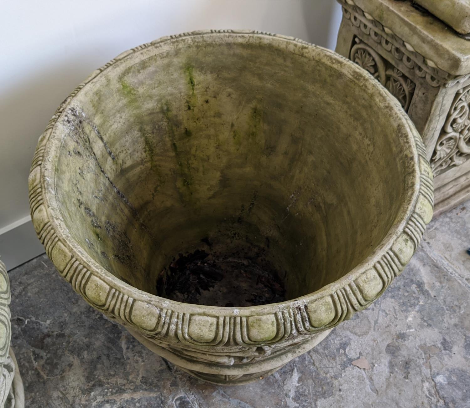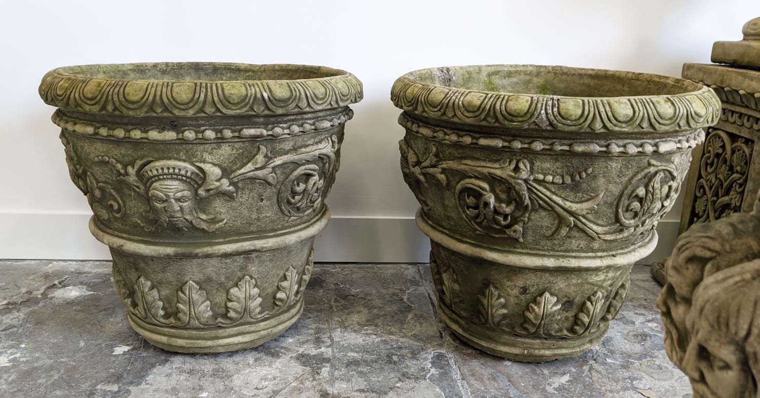 PLANTERS, a pair, composite stone in a verdigris finish, 65cm H x 56cm. (2)