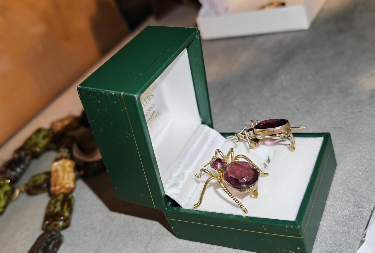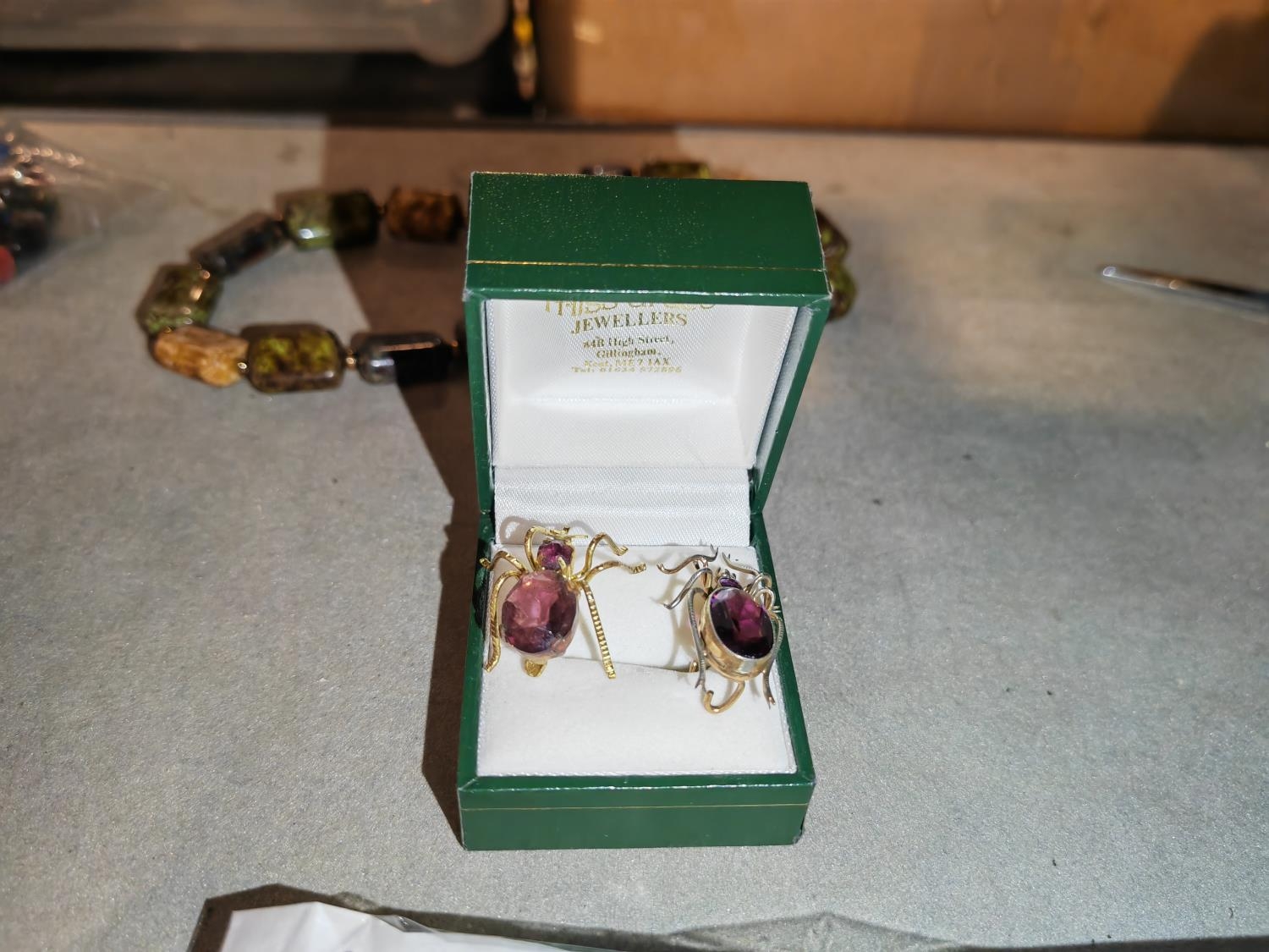 2 Vintage Spider Brooches With Amethyst Colour Stones