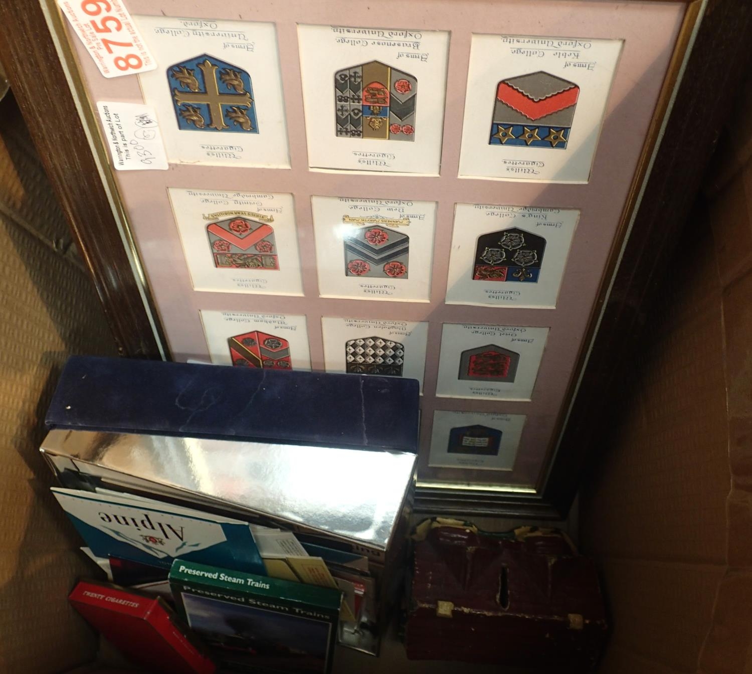 Two framed and glazed cigarette collection cards and a large quantity of other complete card sets, a 1998 England Squad medal collection and a Dr Barnardos home money box. Not available for in-house P&P, contact Paul O'Hea at Mailboxes on 01925 659133
