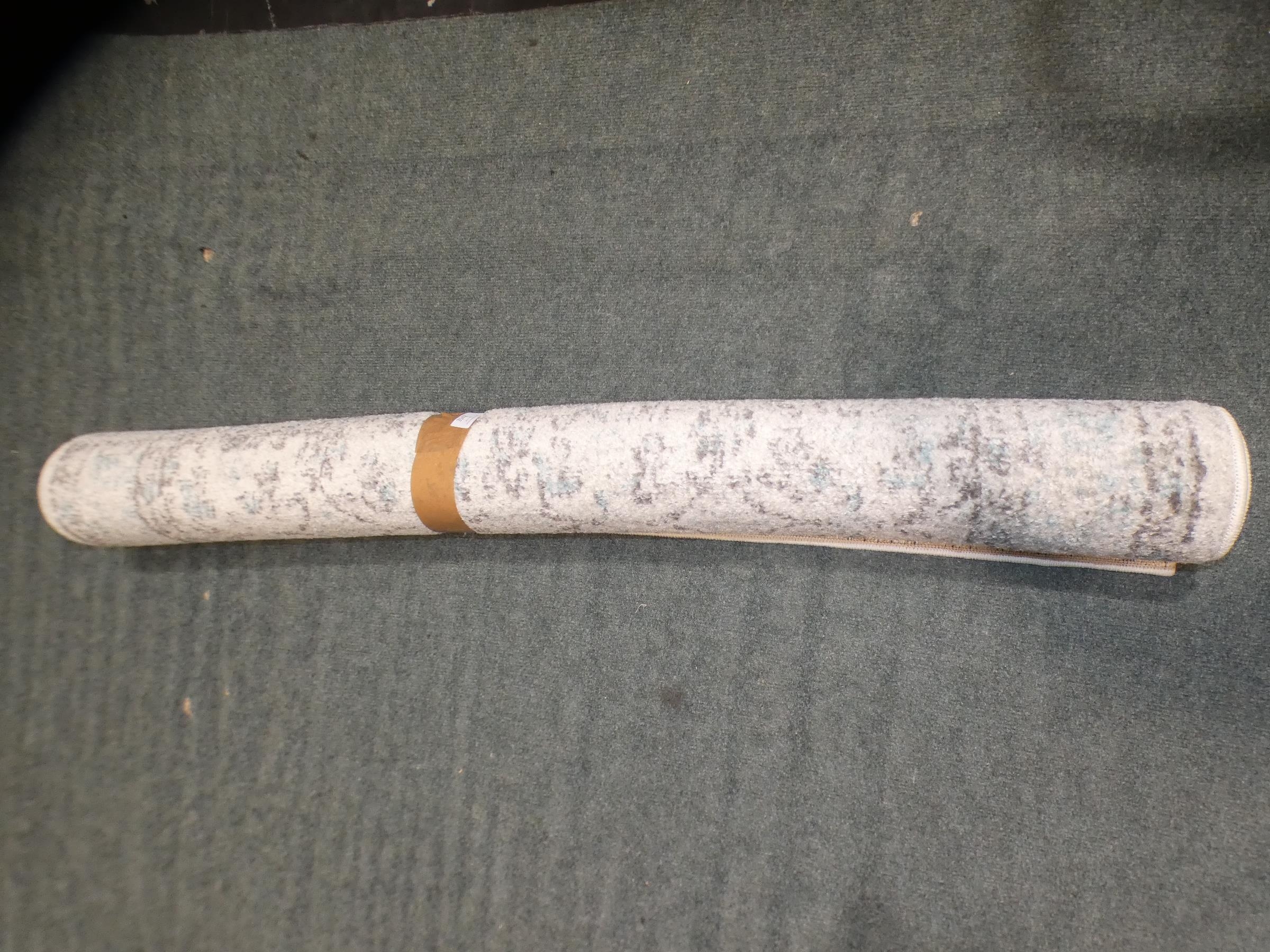 A grey, cream and blue area rug - 4ft x 6ft * this lot is subject to VAT