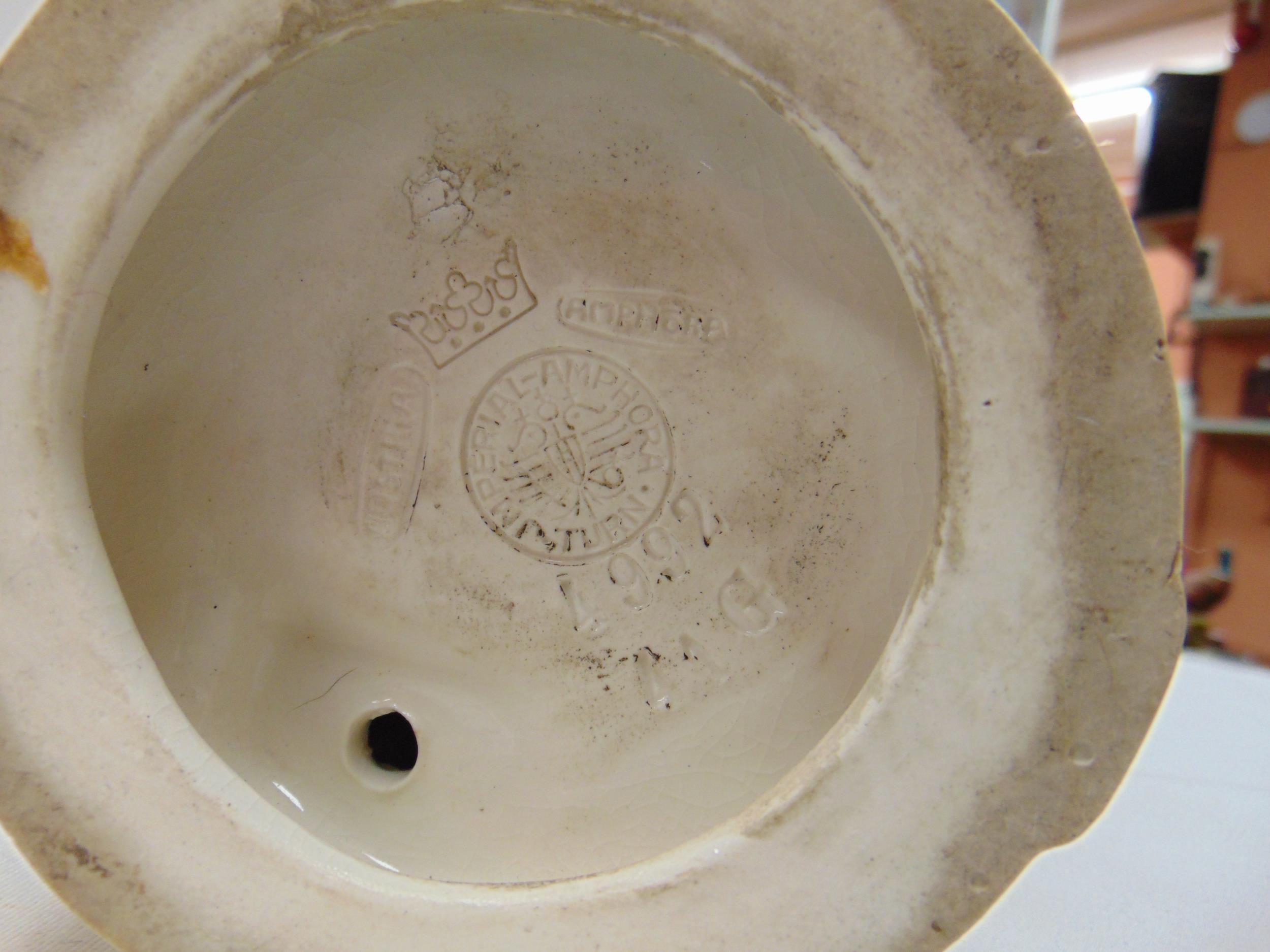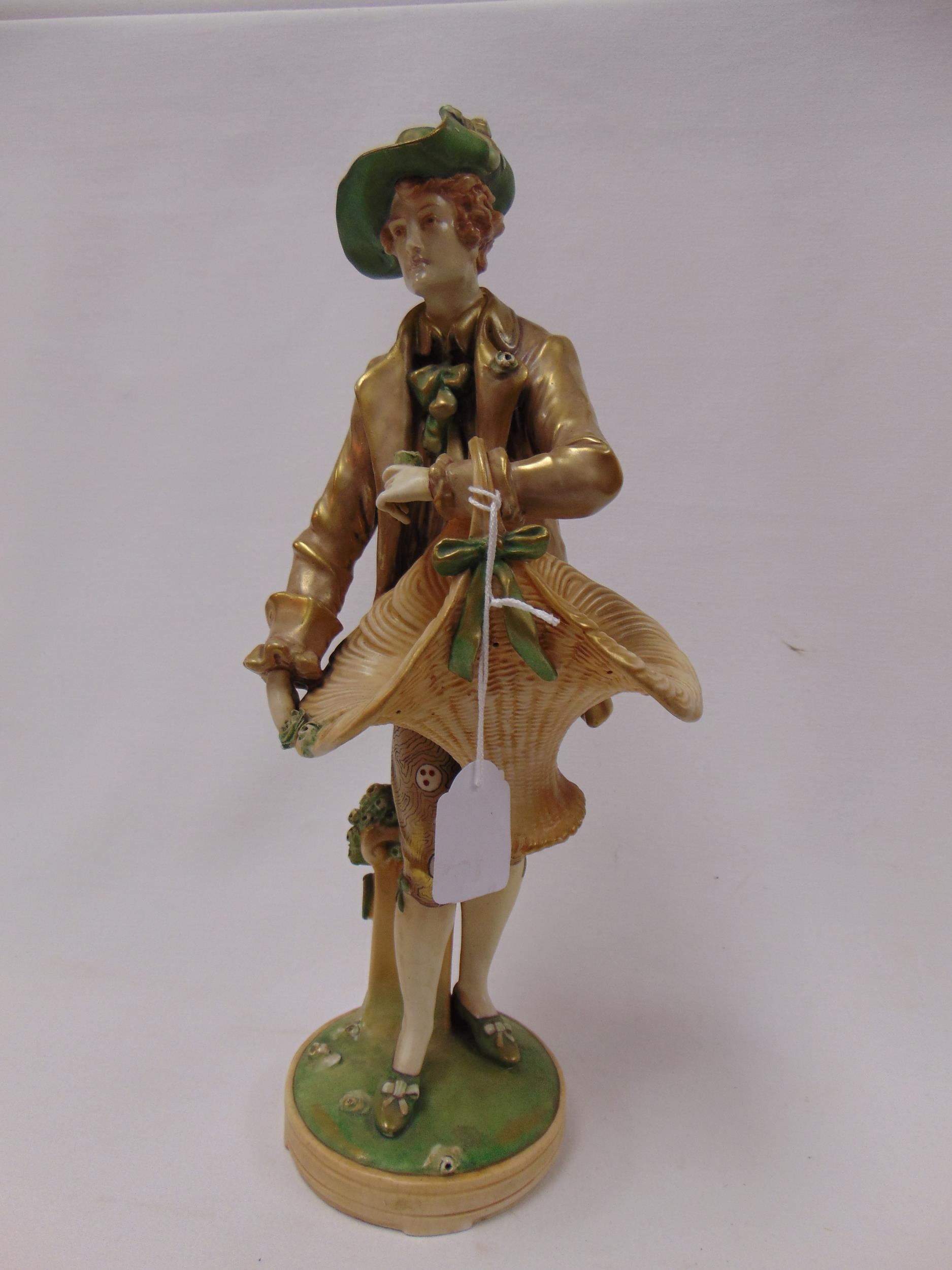 Imperial Amphora porcelain figure of a man with basket, impressed marks, 14.5" high.