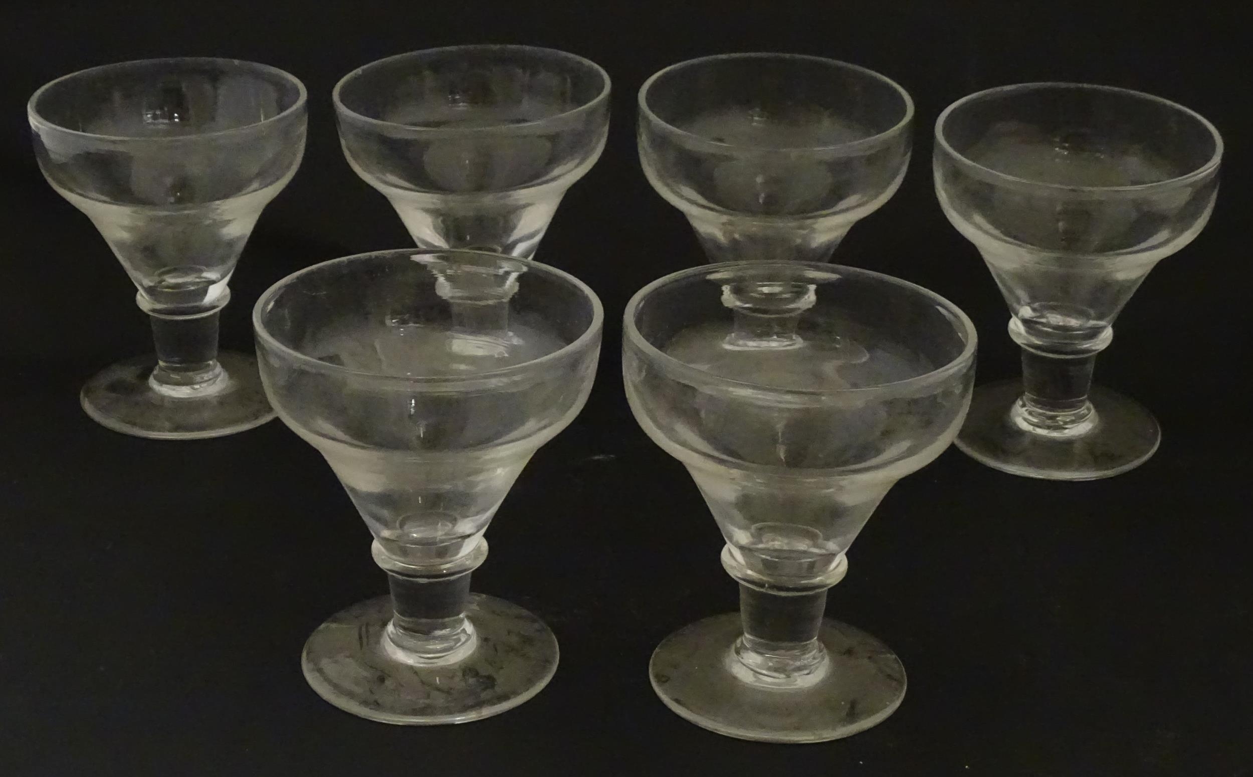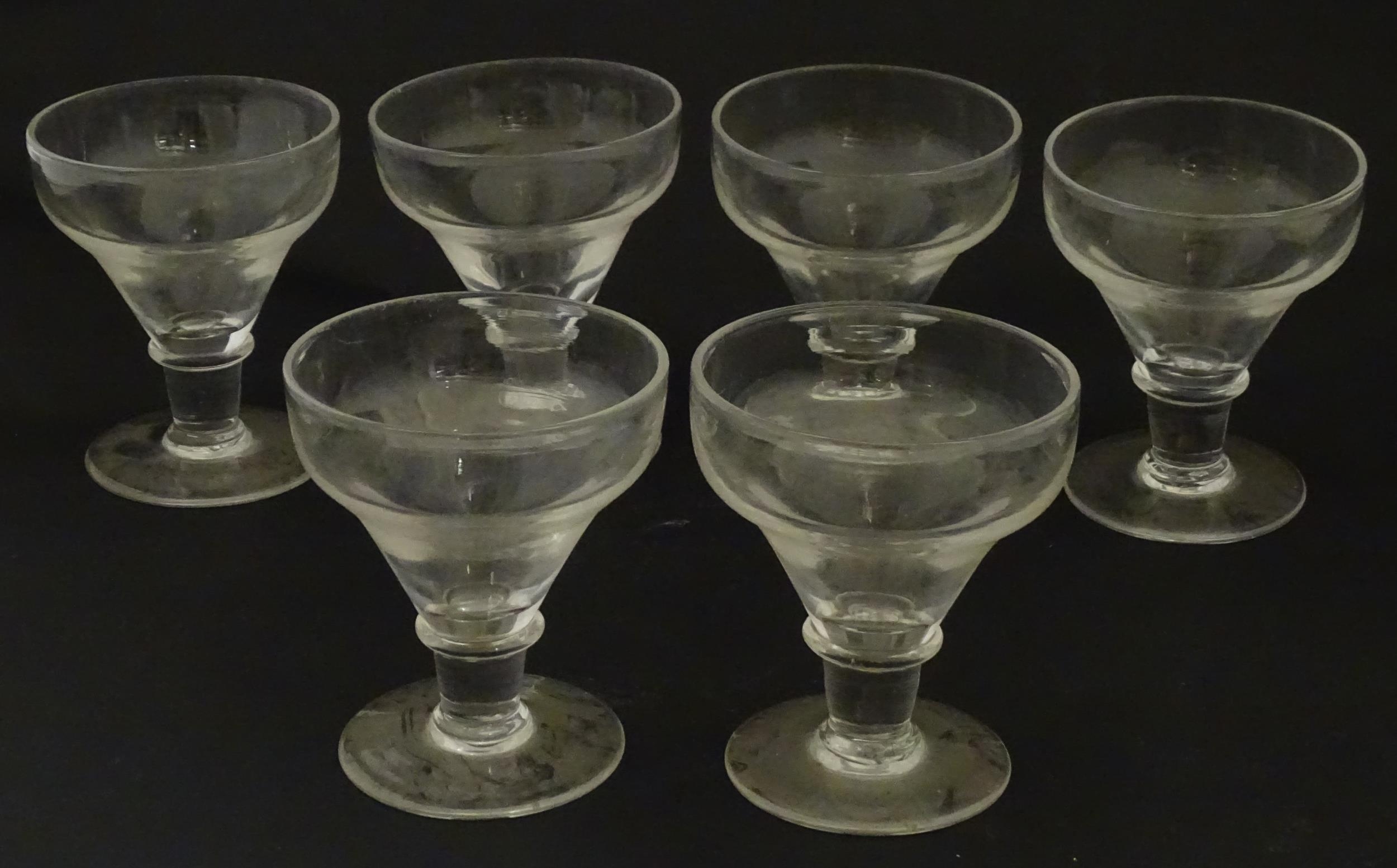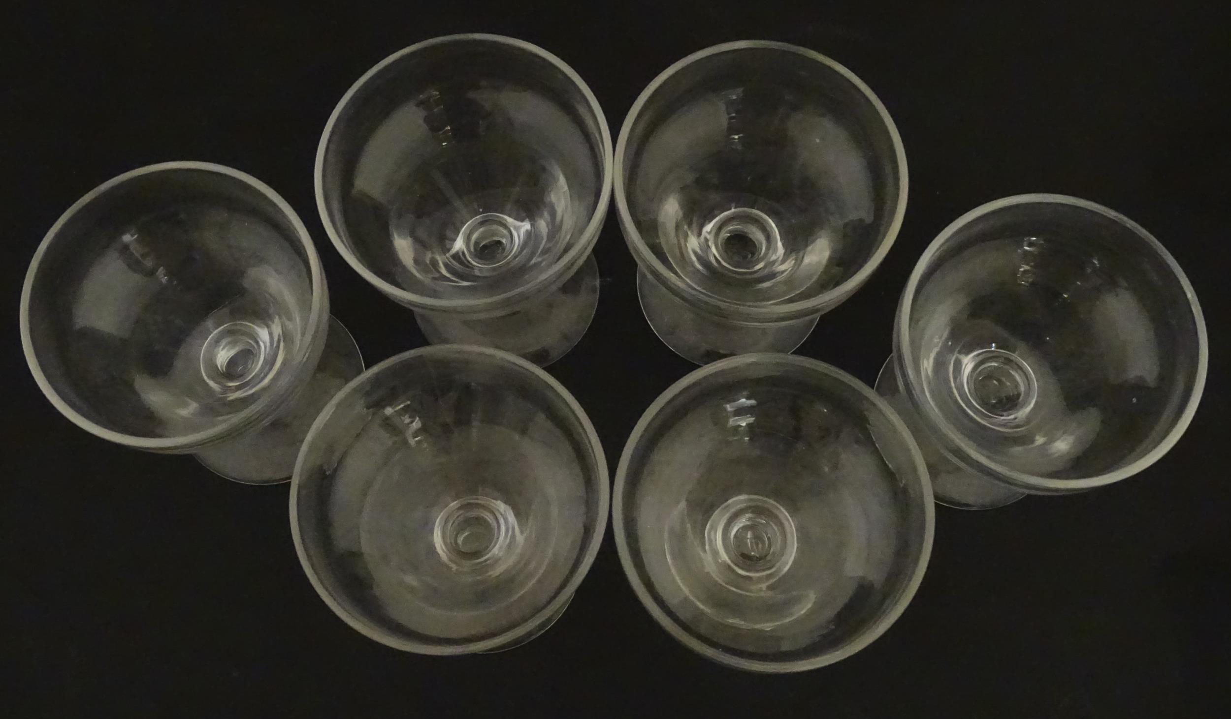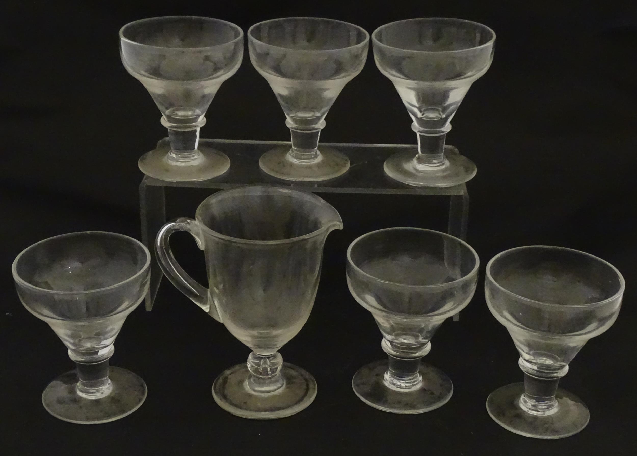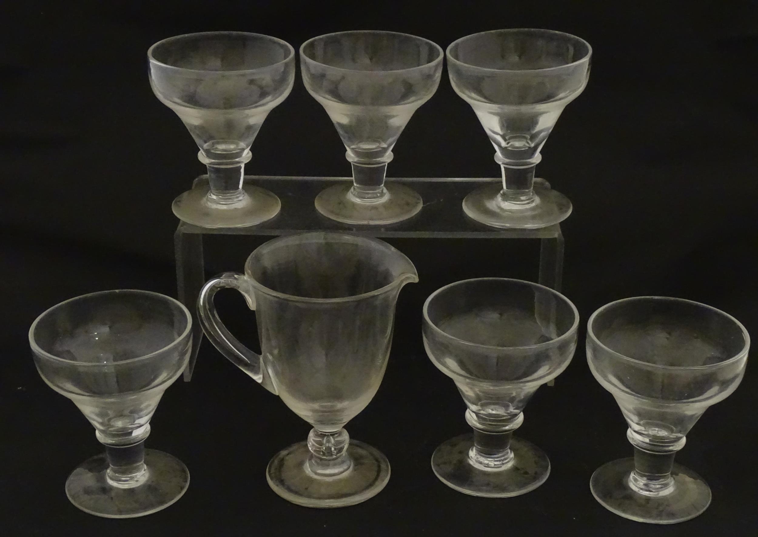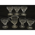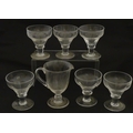 A set of six 19thC drinking glasses. Together with a pedestal jug. Glasses approx. 4 3/4" high (7)